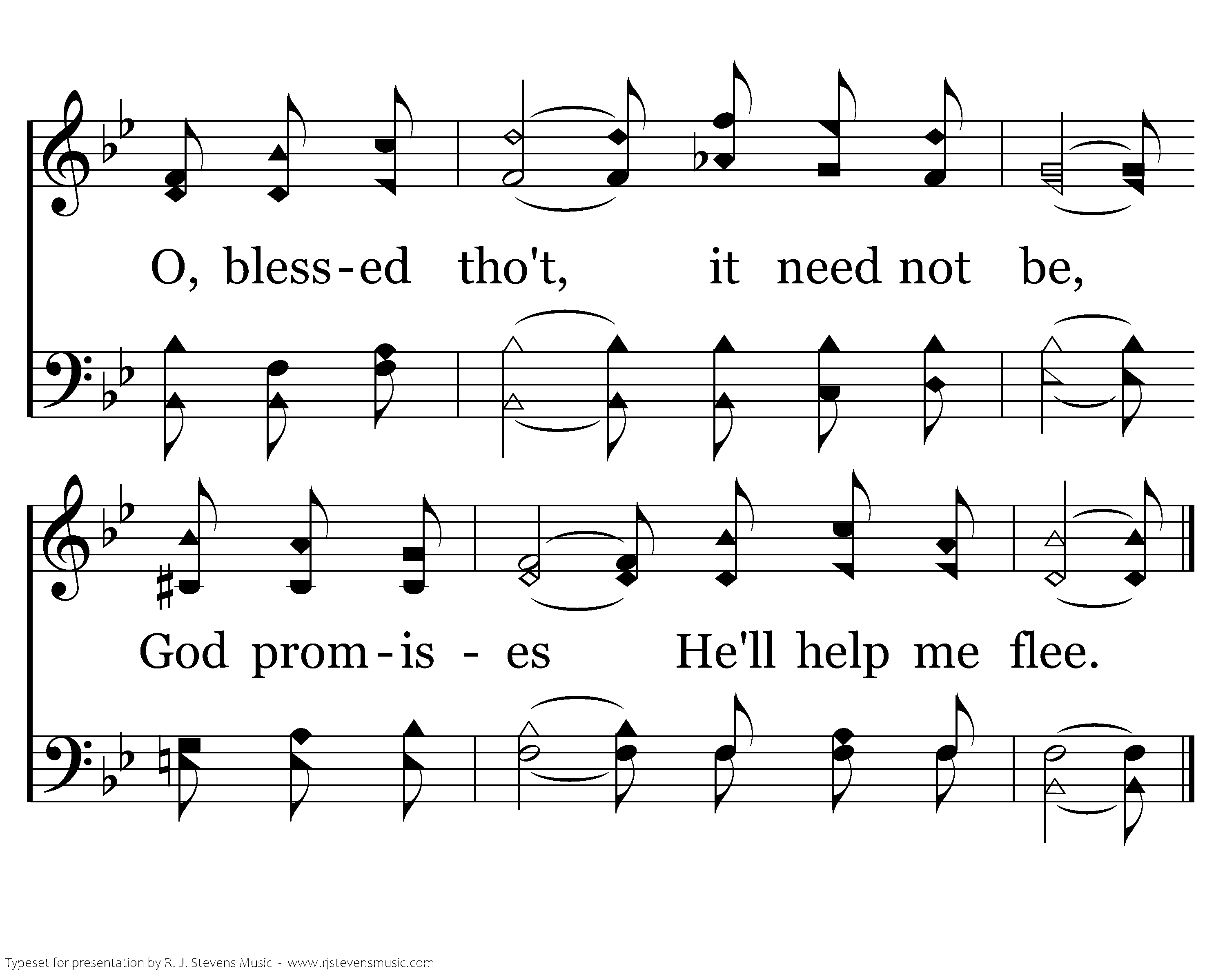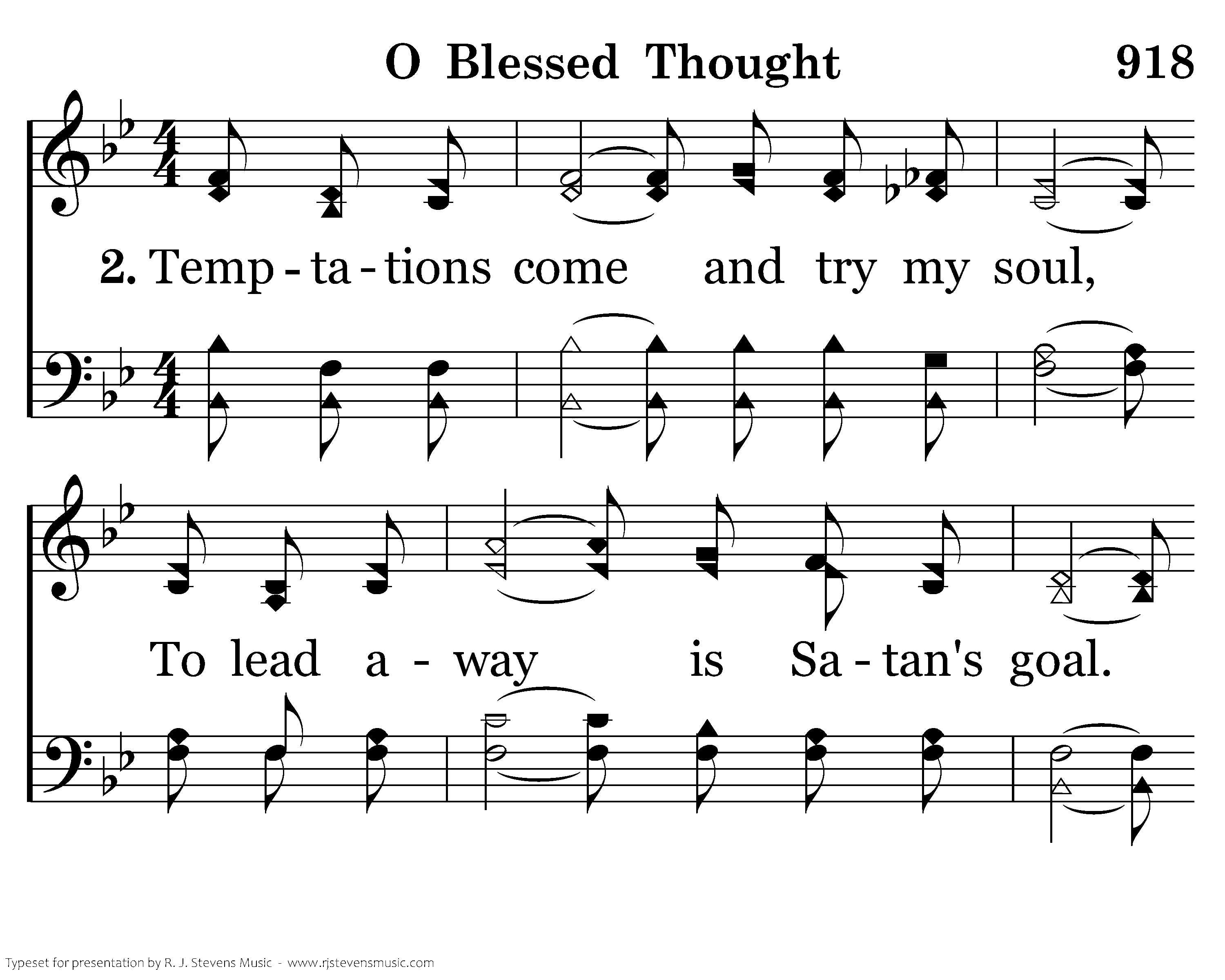 Temptations come and try my soul, To lead away is Satan's goal. O, blessed tho't, it need not be, God promises He'll help me flee.