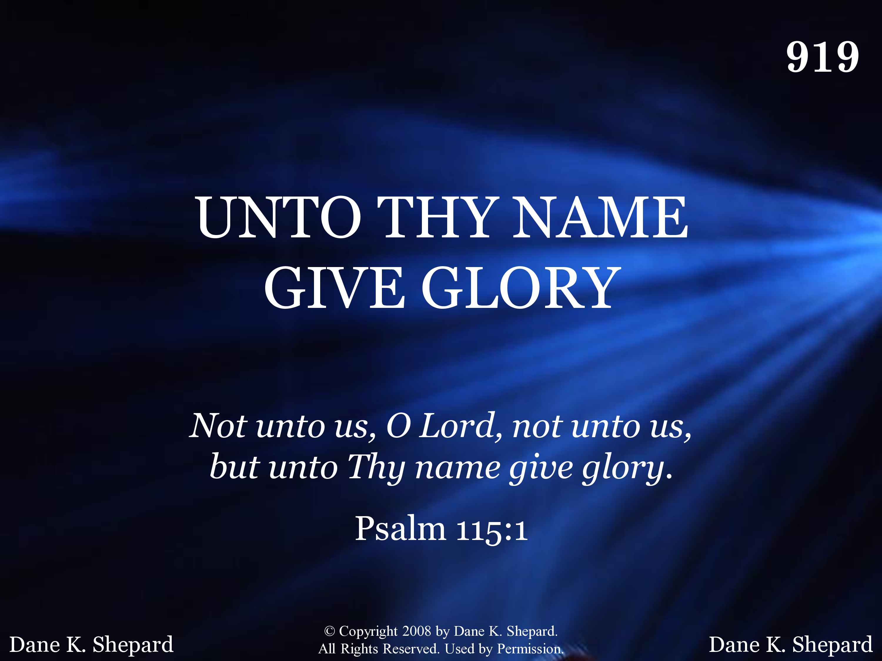 | Title | UNTO THY NAME GIVE GLORY |