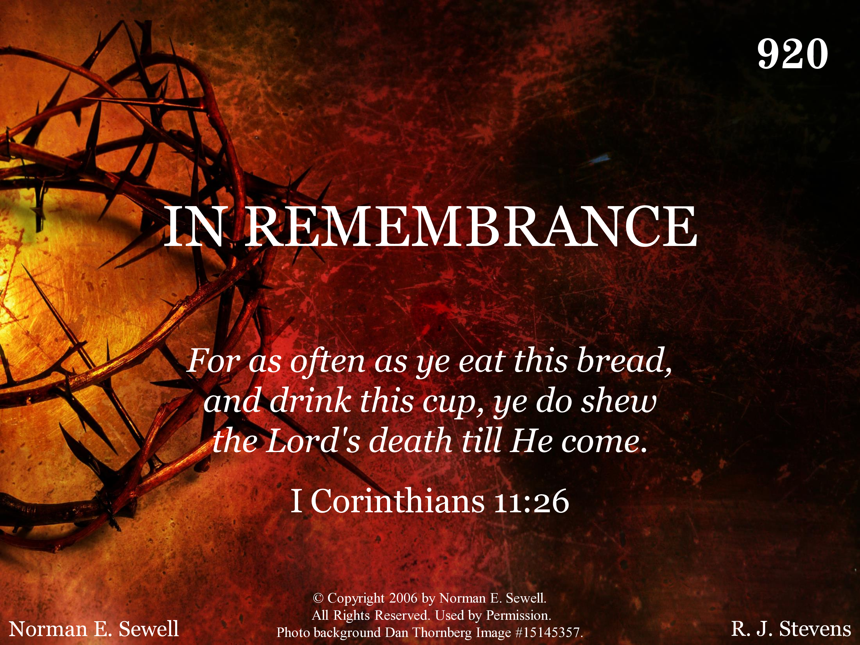- © Copyright 2006 by Norman E. Sewell. All Rights Reserved. Used by Permission.