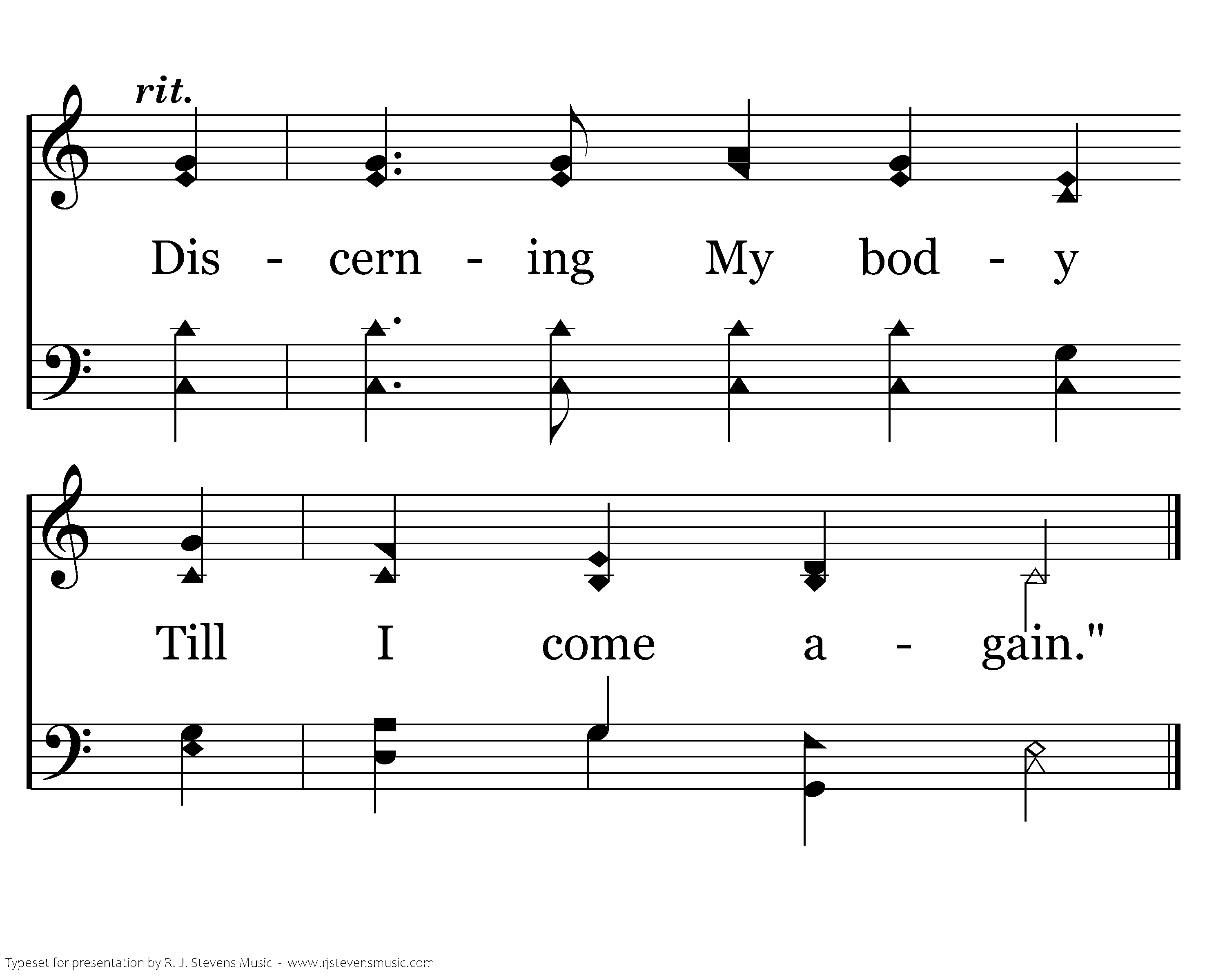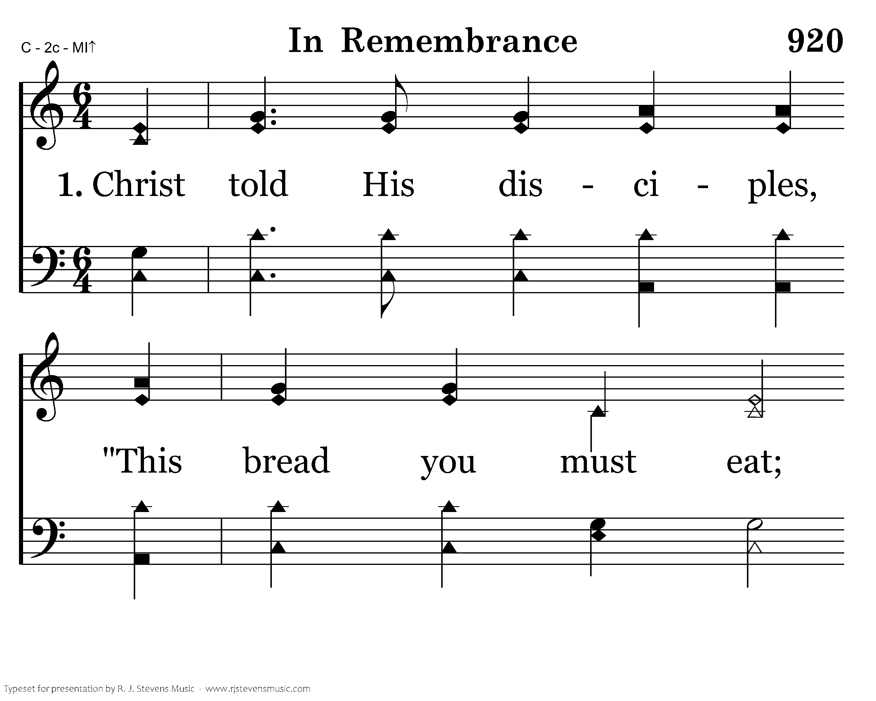 Christ told His disciples, "This bread you must eat; And drink of this cup, too, in mem'ry of Me. As oft as you do this My death you proclaim. Discerning My body Till I come again."