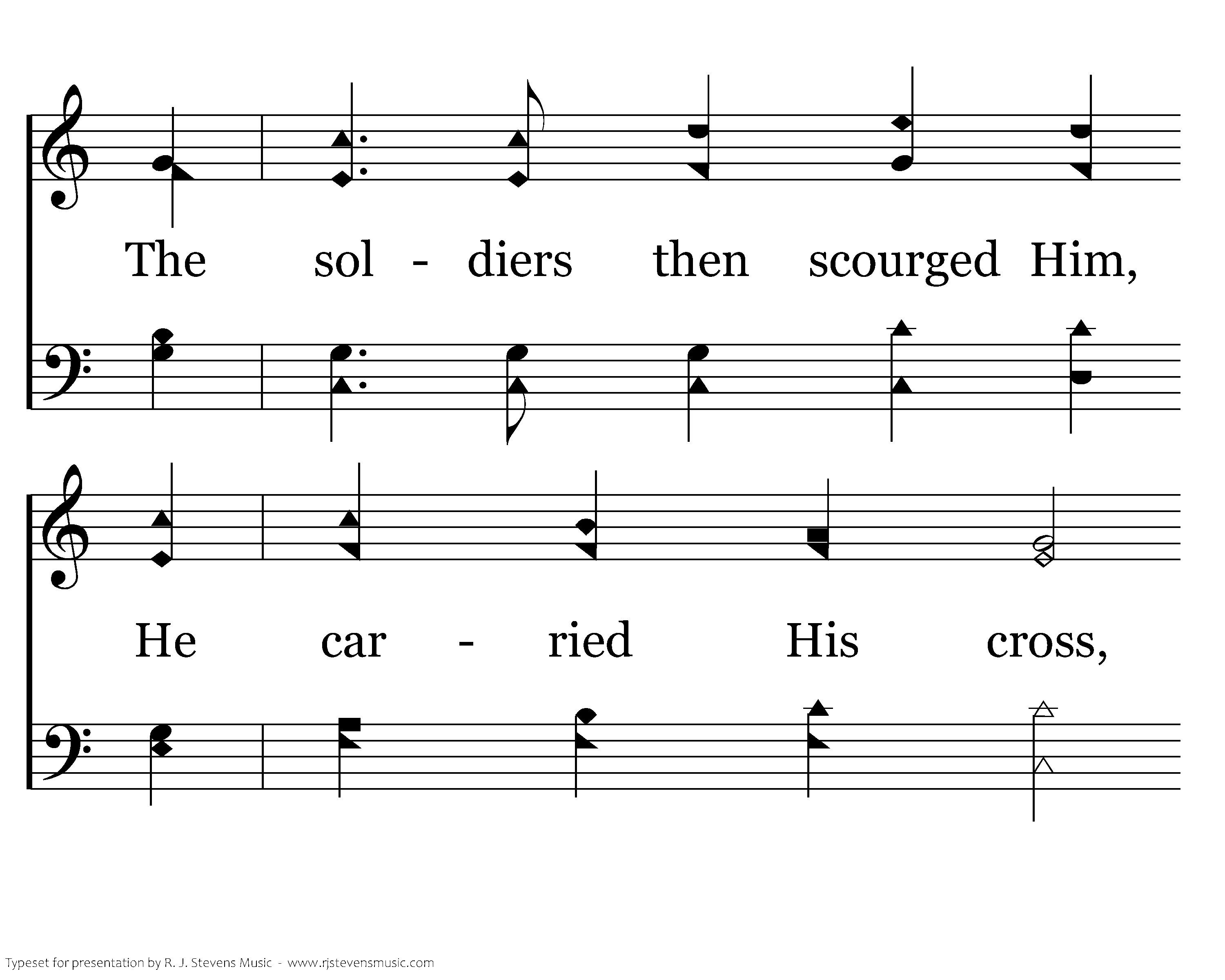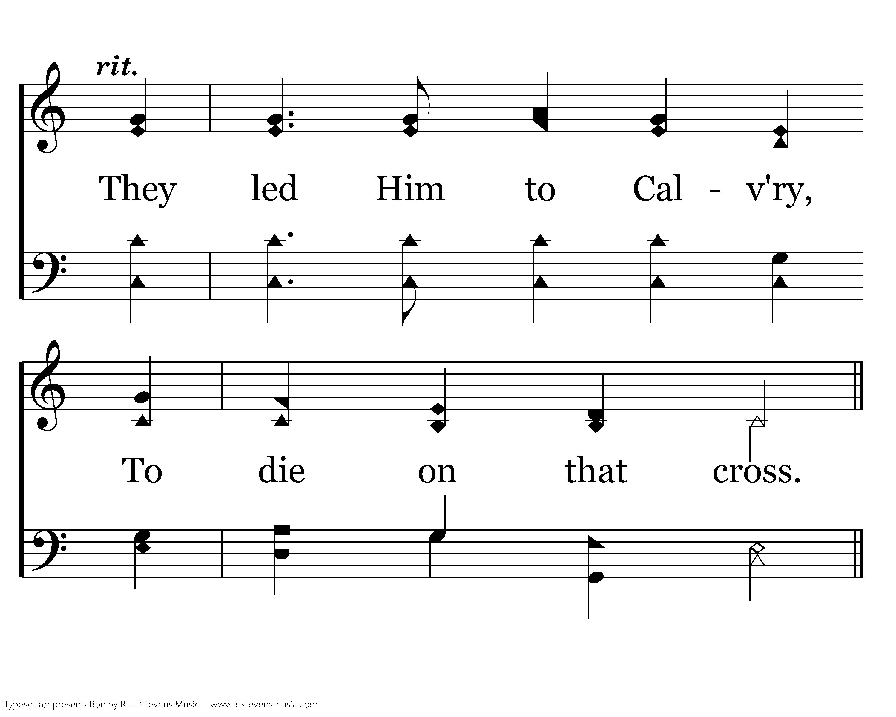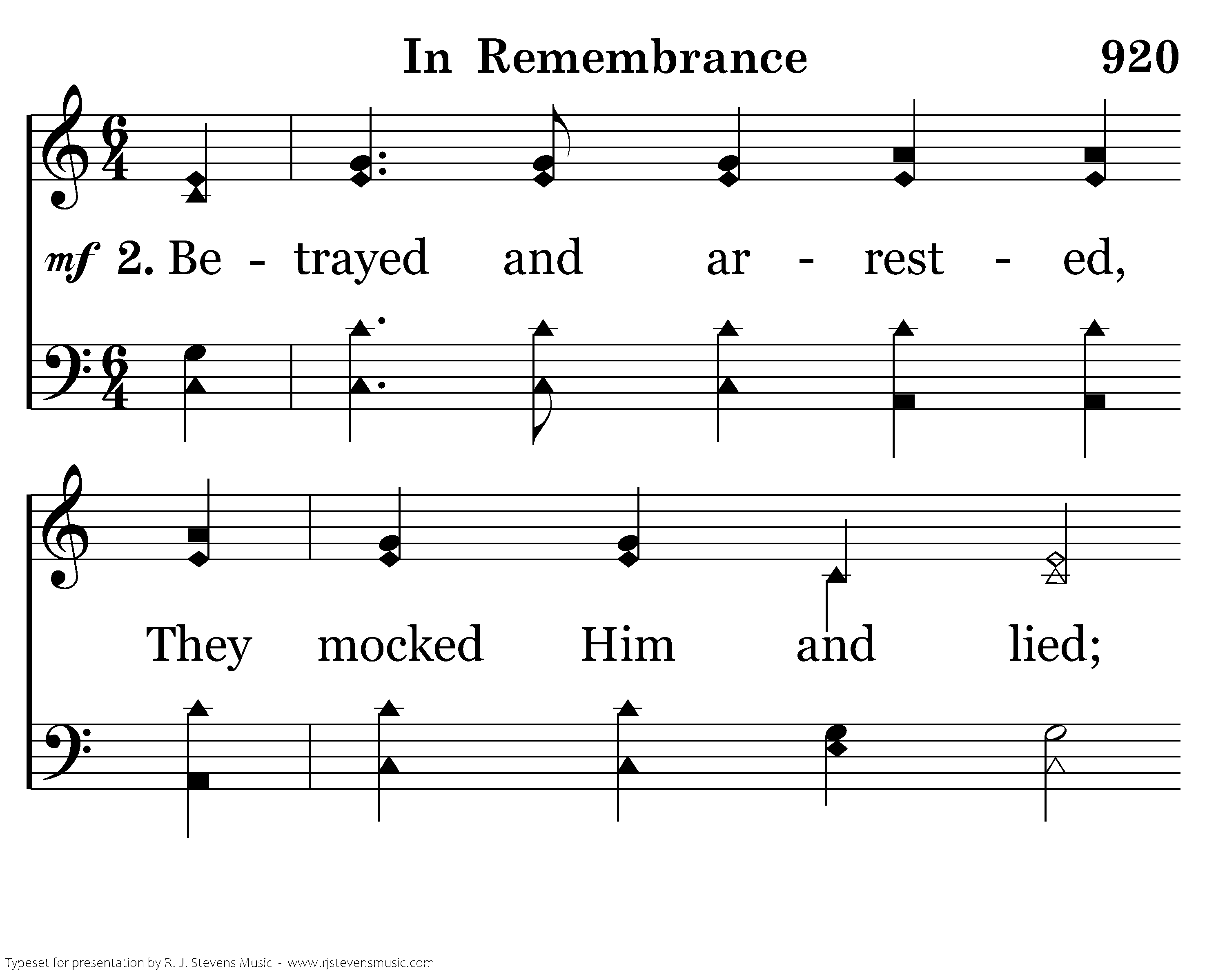 Betrayed and arrested, They mocked Him and lied; Took Jesus to Pilate, and cried, "Cru cify." The soldiers then scourged Him, He carried His cross, They led Him to Calv'ry, To die on that cross.
