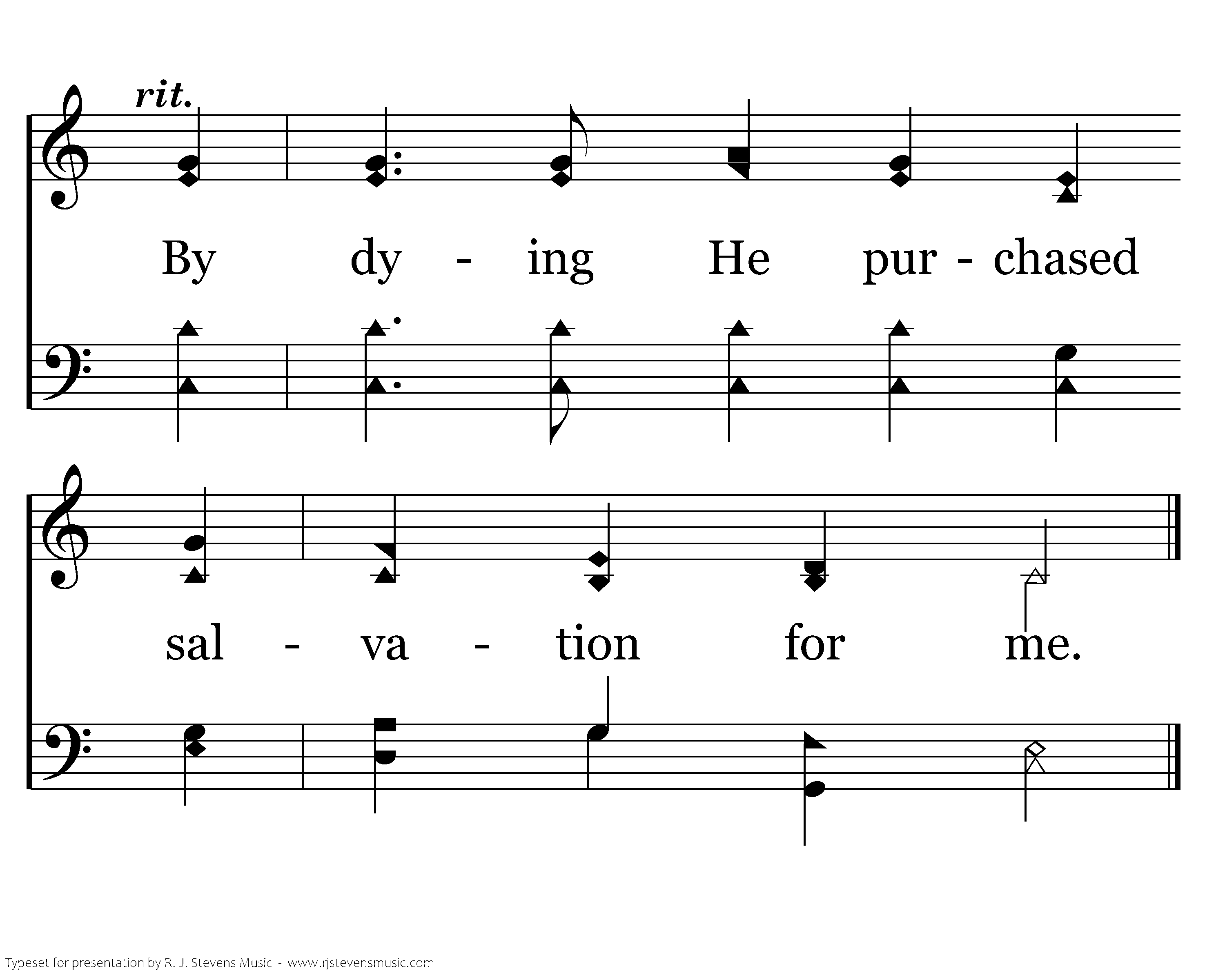 I try to imagine, I try hard to see, The day they nailed Jesus To that cruel tree. The curse that He bore there, He suffered for me. By dying He purchased salvation for me.
