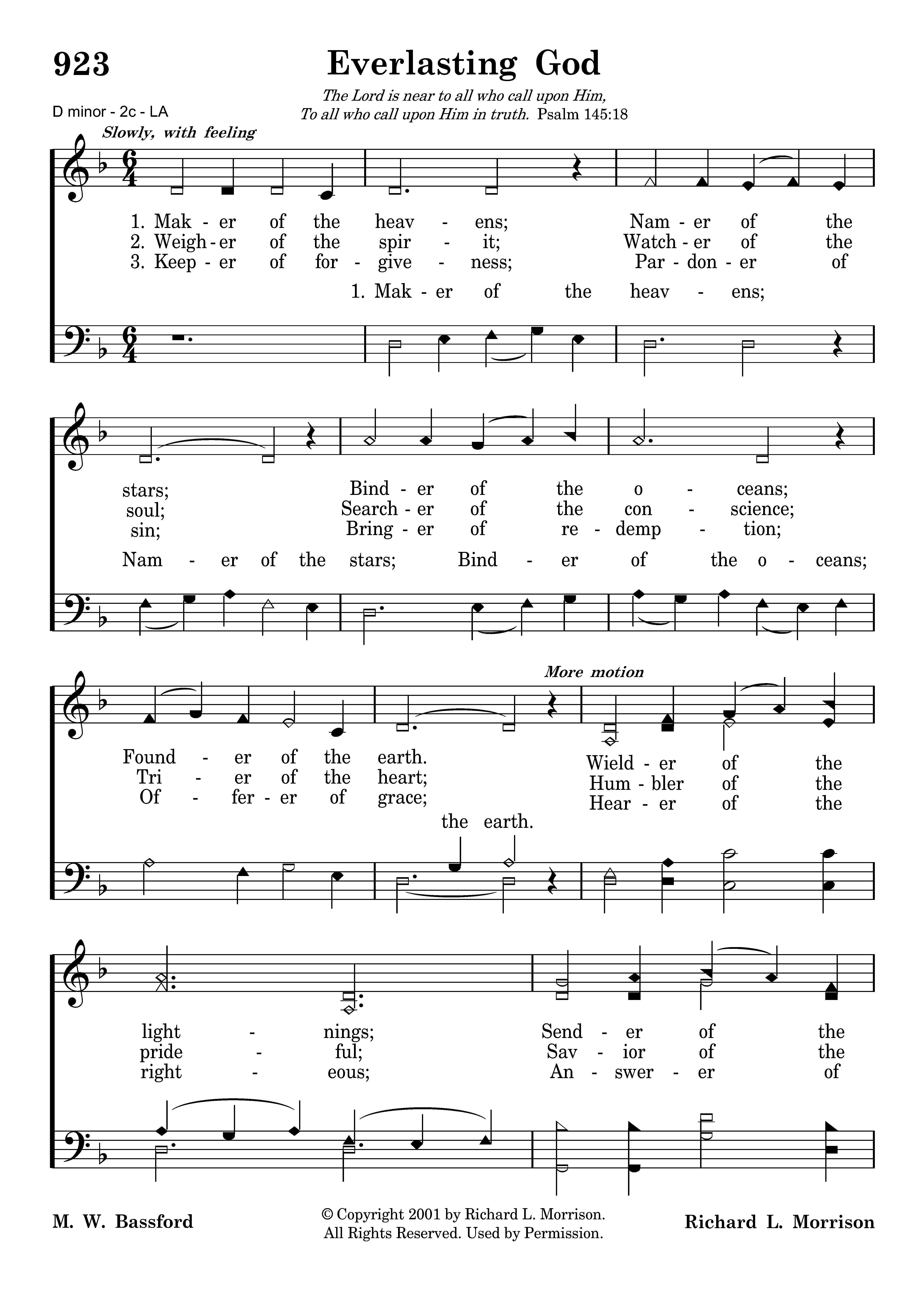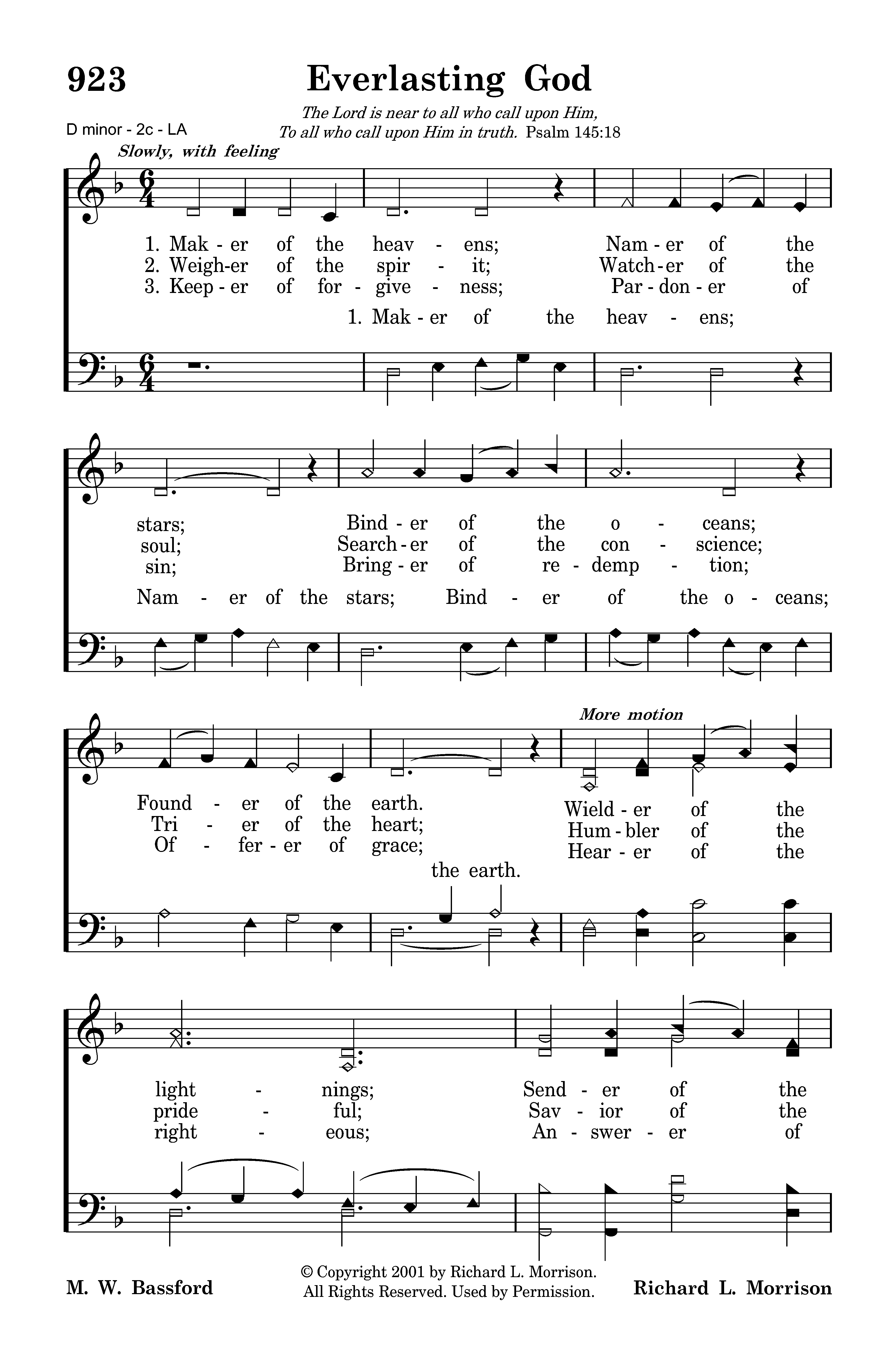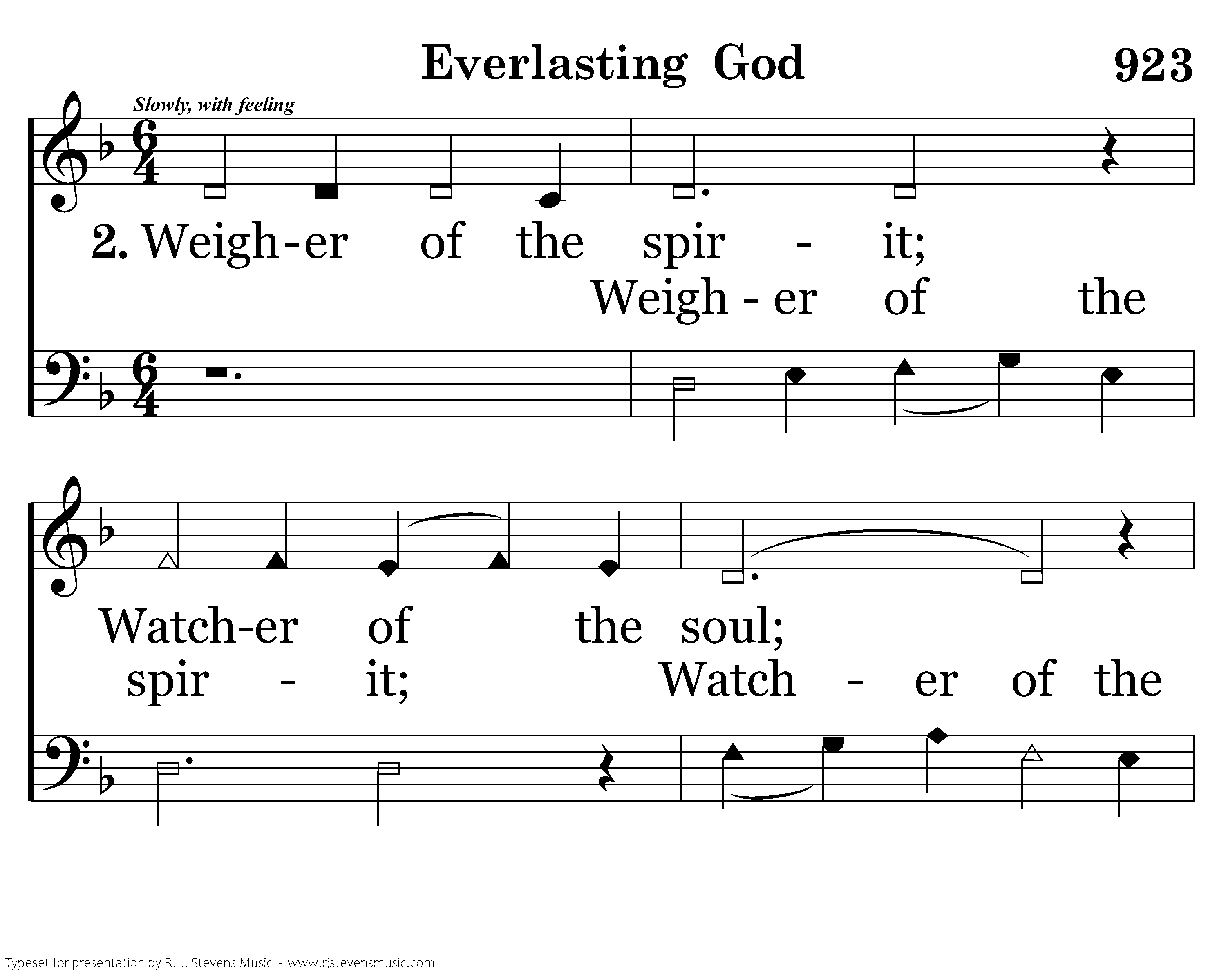 Weigher of the spirit; Watcher of the soul; Searcher of the conscience; Trier of the heart; Humbler of the prideful; Savior of the meek; Arbiter of justice; Everlasting God. Everlasting God!
