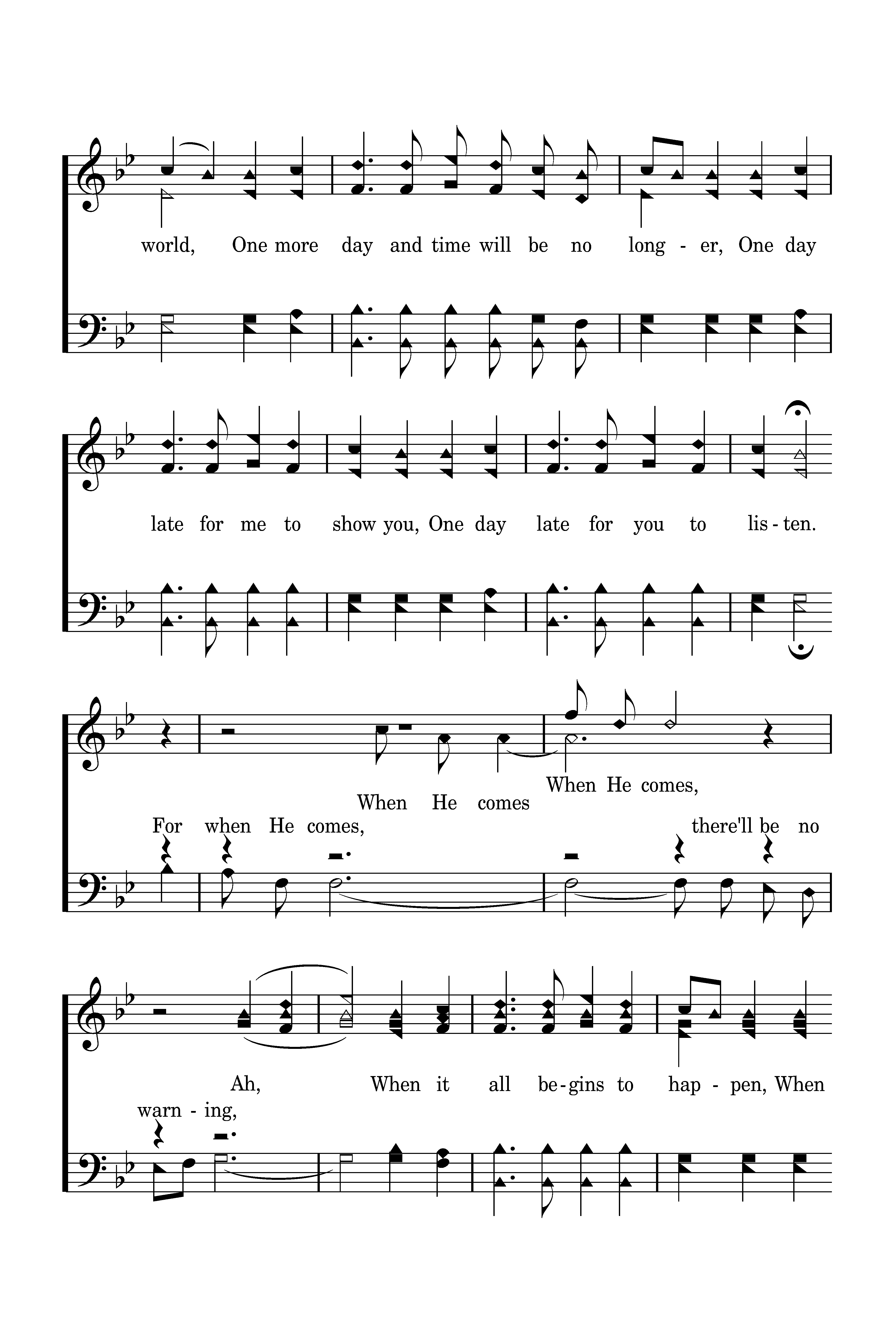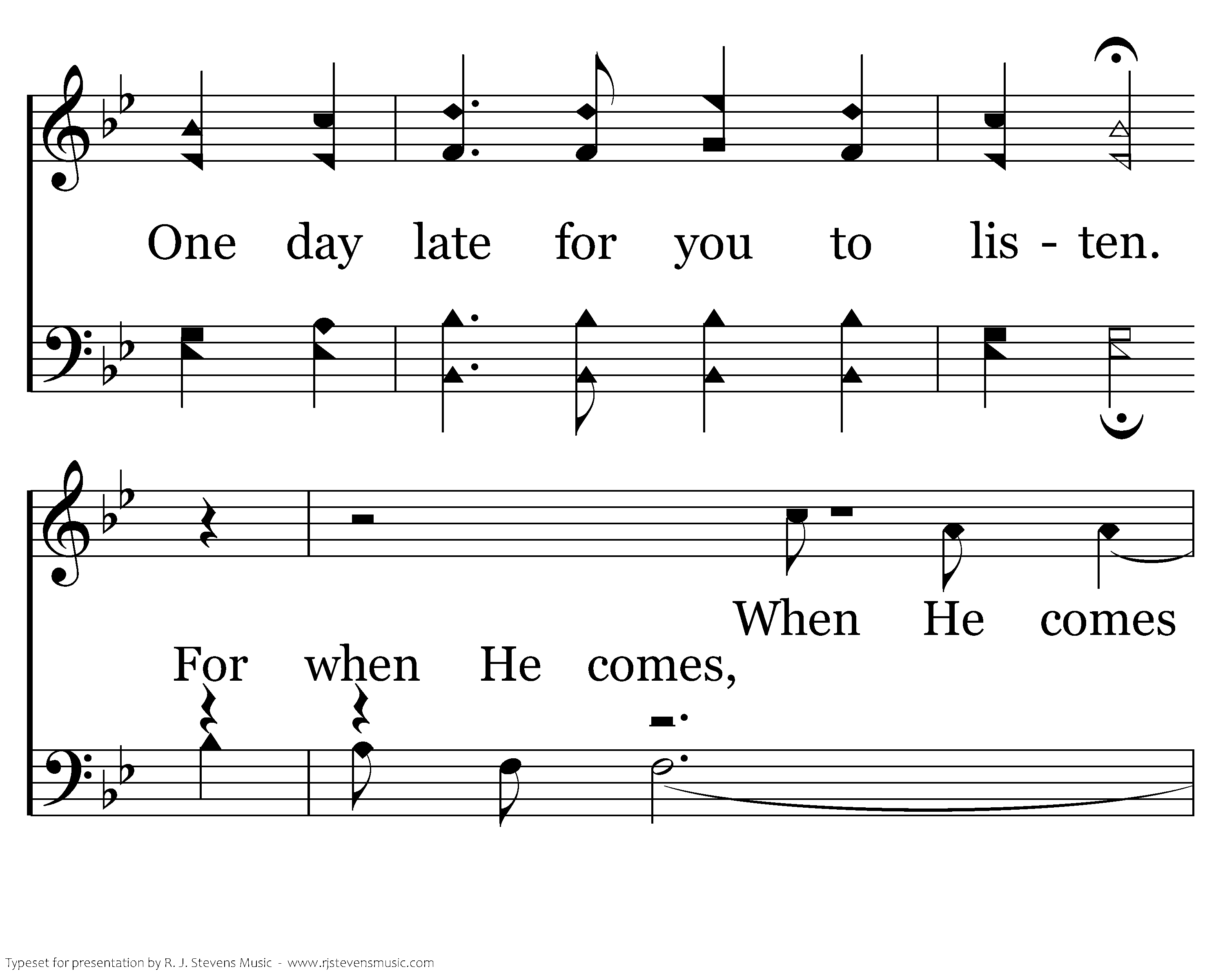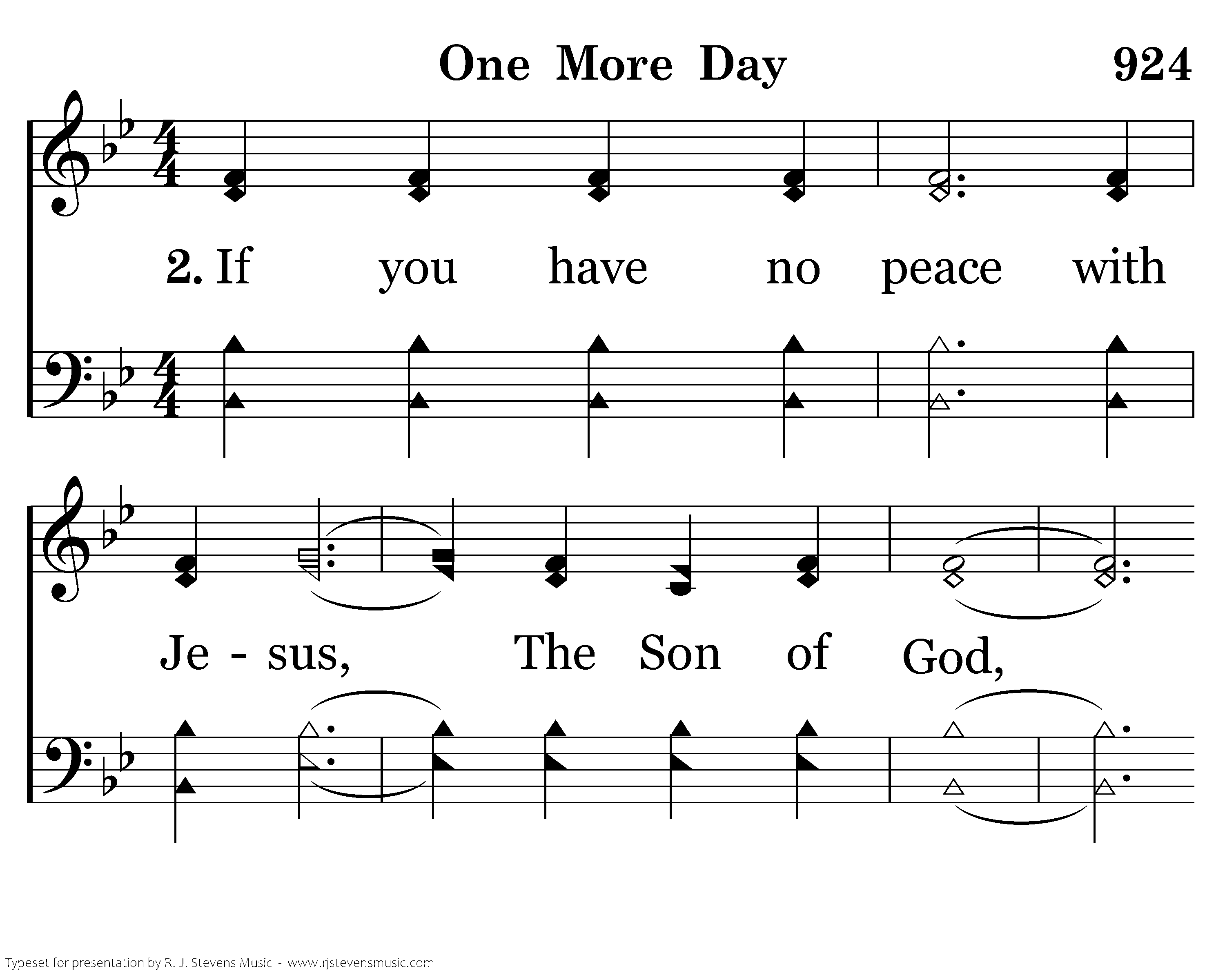 If you have no peace with Jesus, The Son of God, The angels must be crying, His heart is broken. For if Jesus comes tomorrow I'll have just one more day. One more day and time will be no longer, One day late for me to show you, One day late for you to listen. For when He comes, there'll be no warning, We would not know,