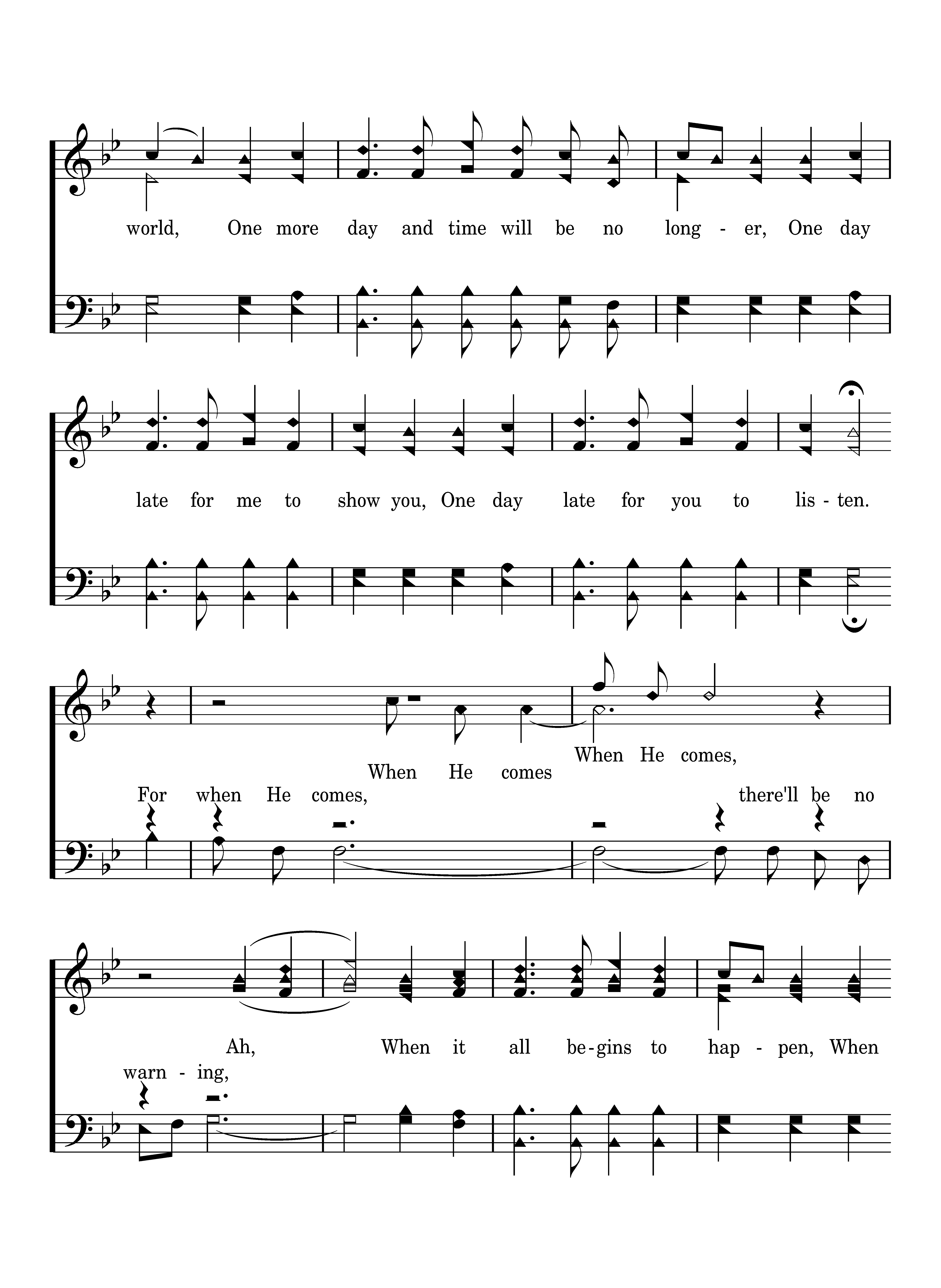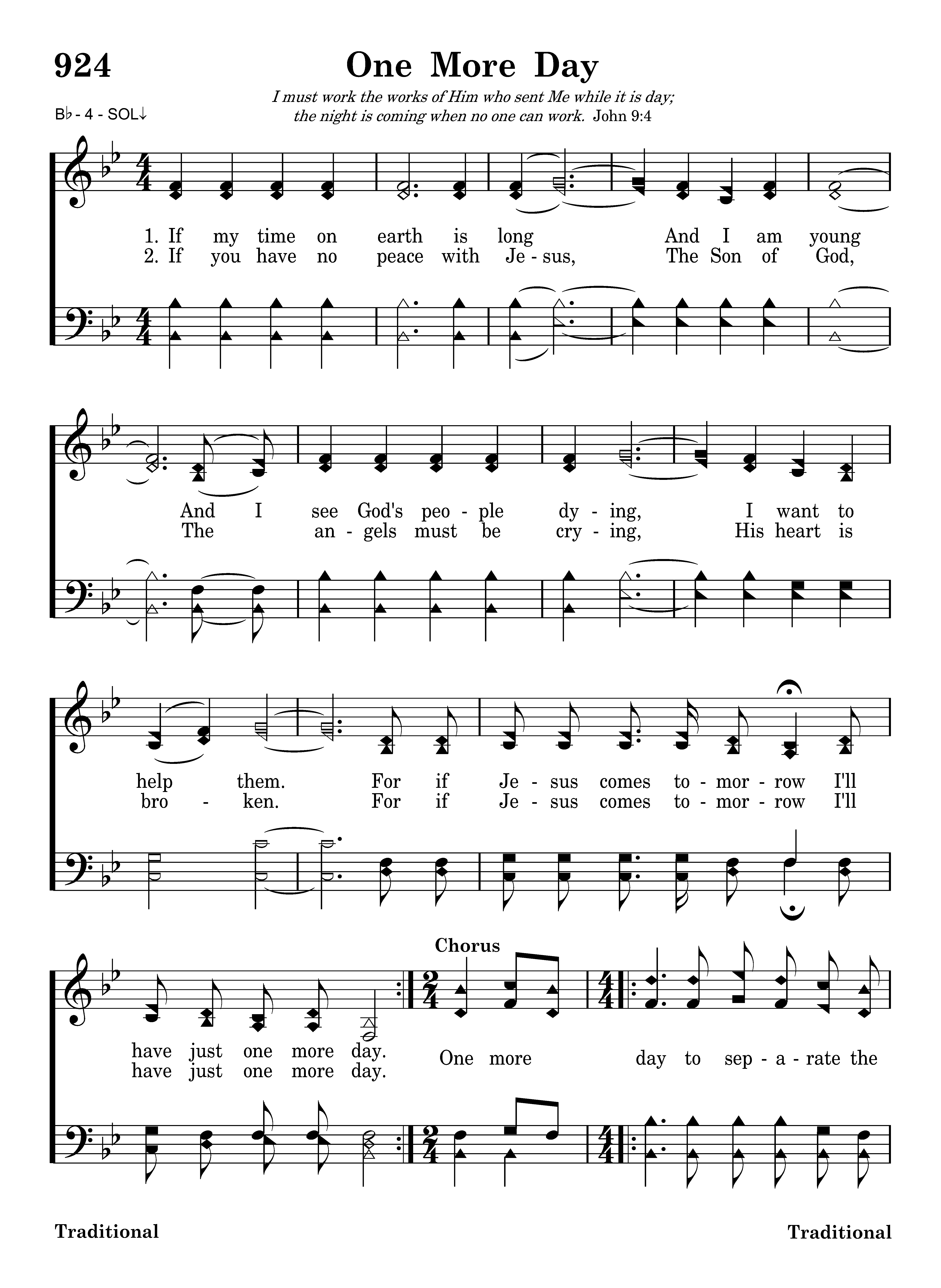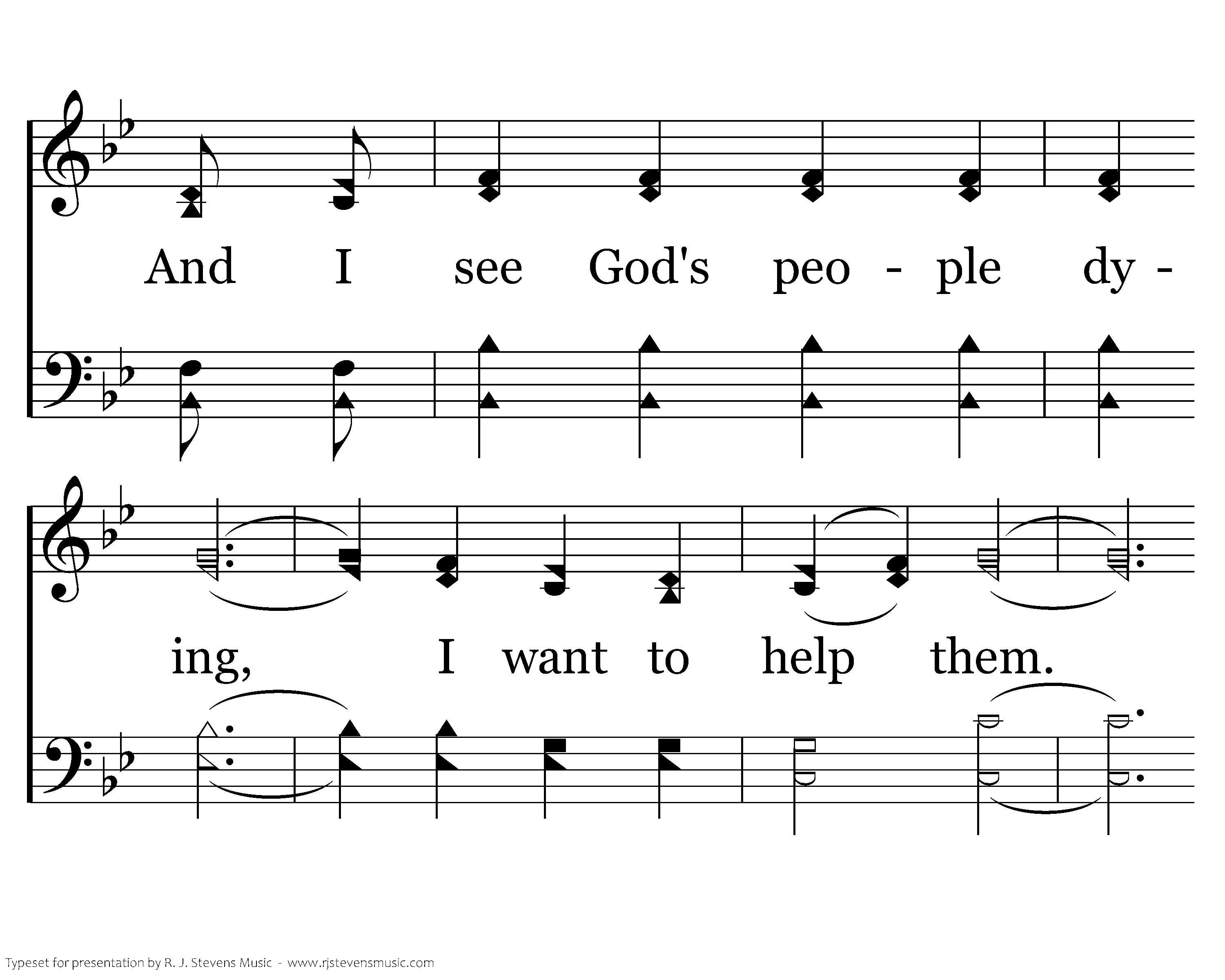 If my time on earth is long And I am young And I see God's people dying, I want to help them. For if Jesus comes tomorrow I'll have just one more day.