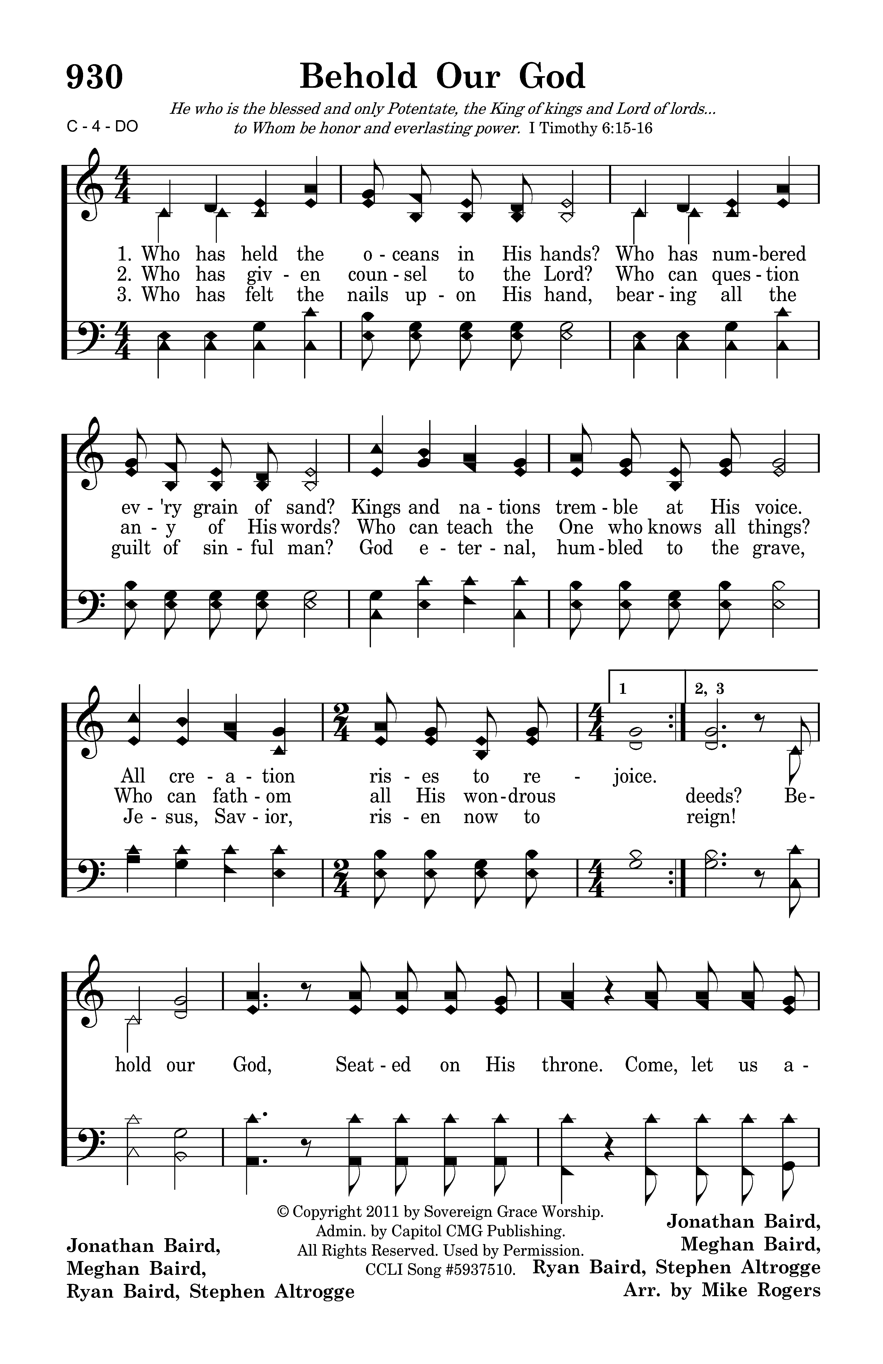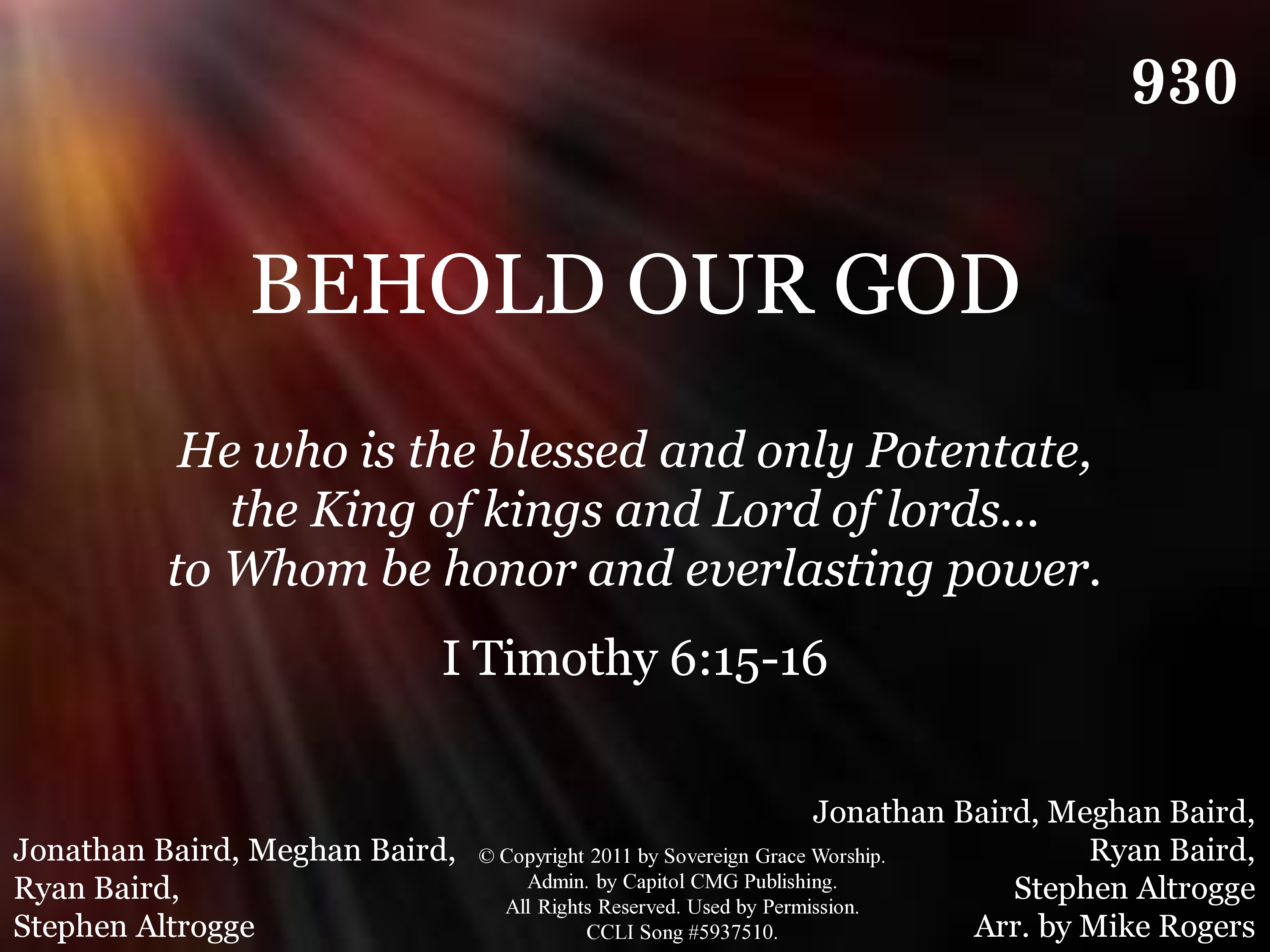 - Copyright © 2011 by Sovereign Grace Worship. (Admin. by Capitol CMG Publishing.) All Rights Reserved. Used by Permission.