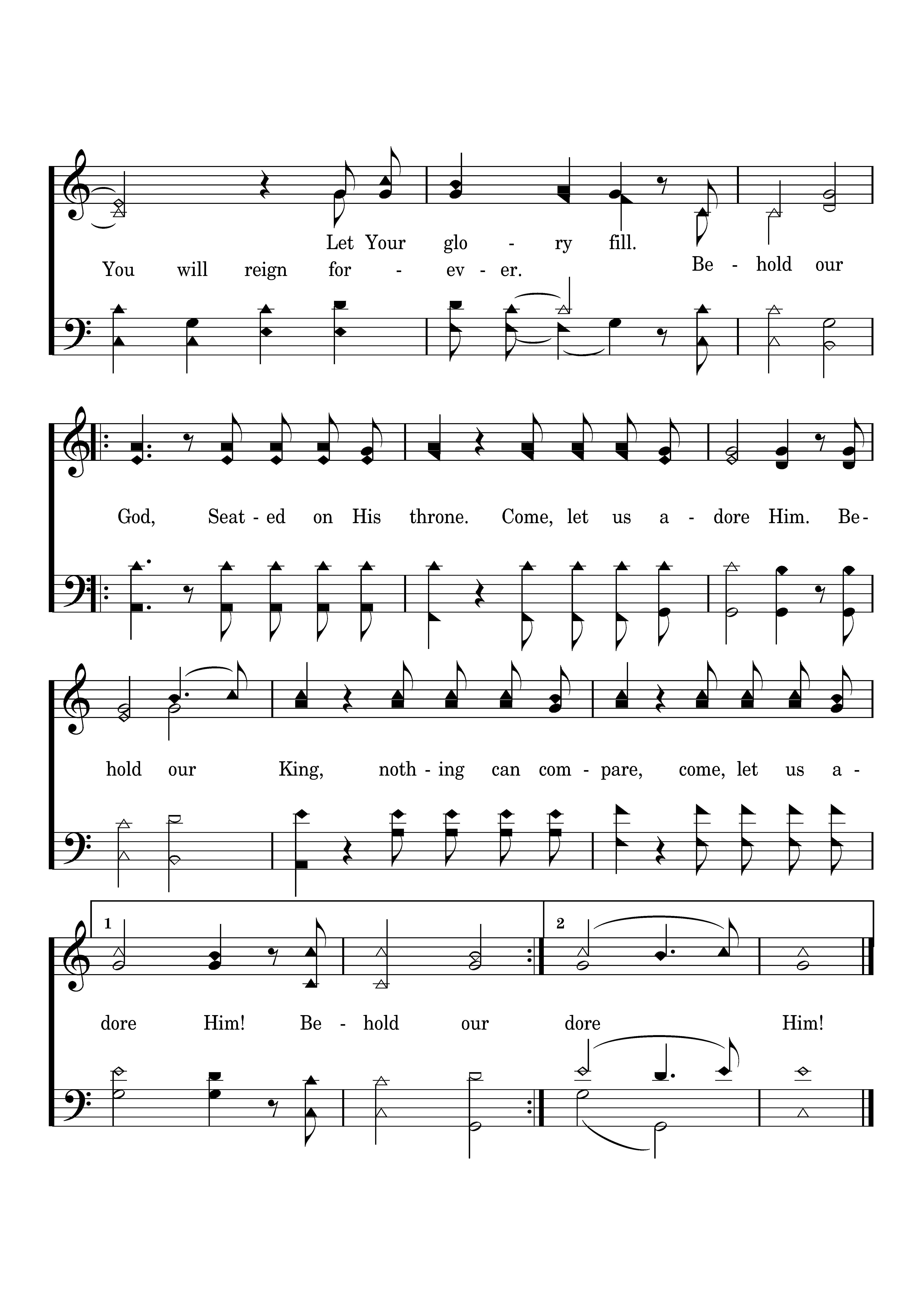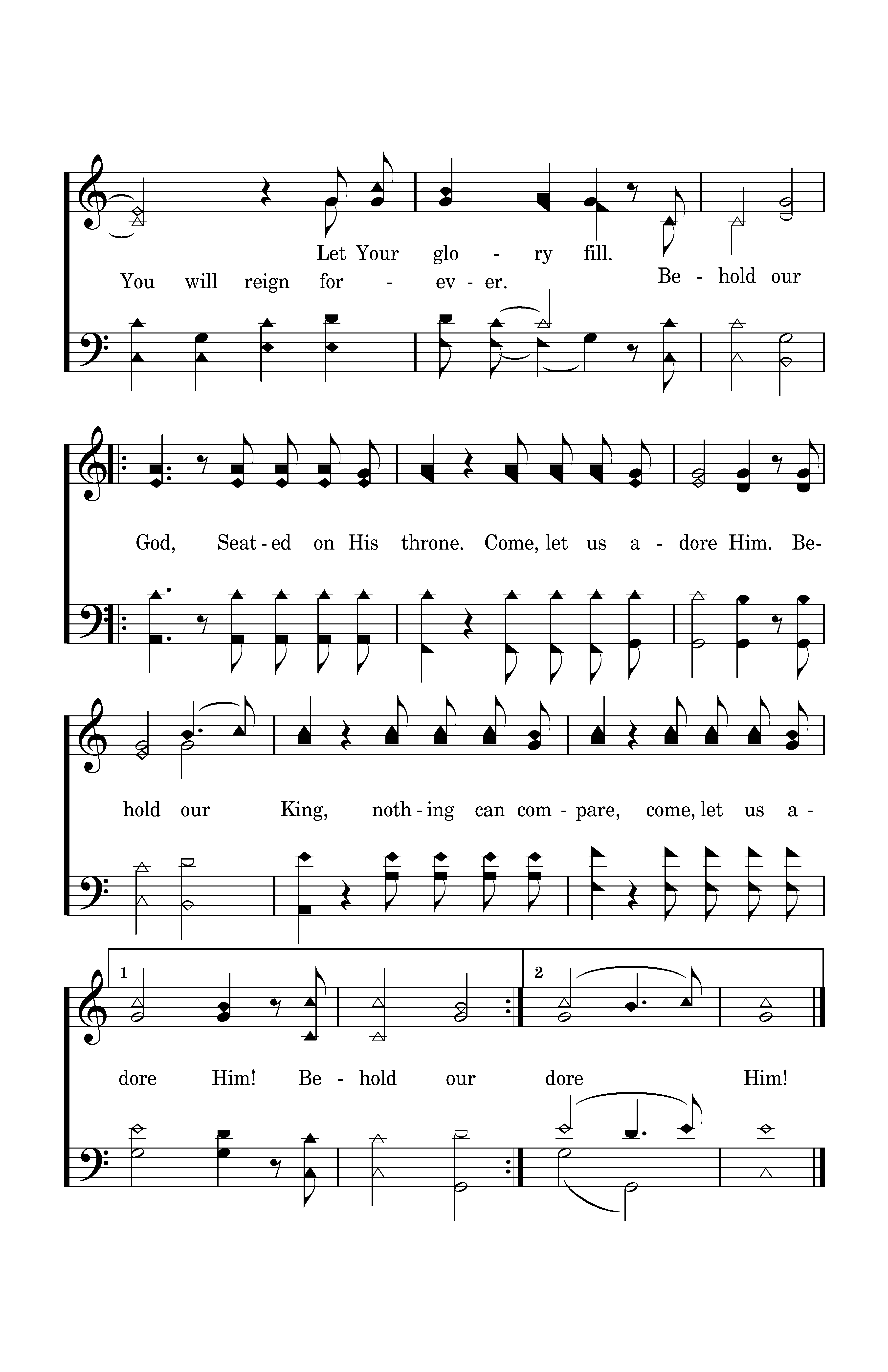 Who has felt the nails upon His hand, bearing all the guilt of sinful man? God eternal, humbled to the grave, Jesus, Savior, risen now to reign! Behold our God, Seated on His throne. Come, let us adore Him. Behold our King, nothing can compare, come, let us adore Him! Let Your glory fill the earth. You will reign forever.