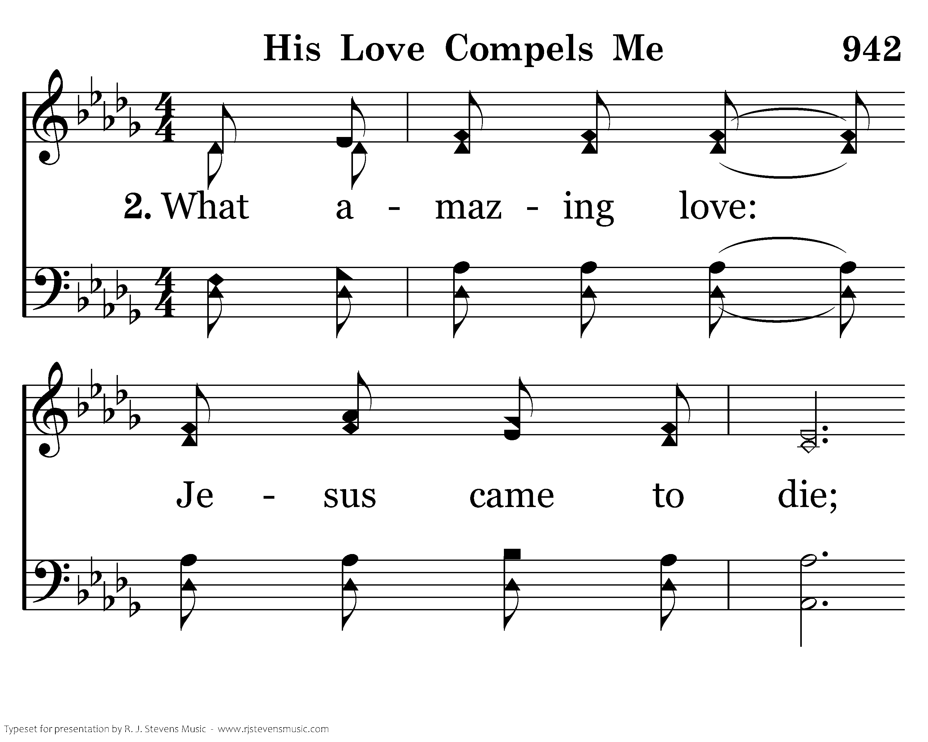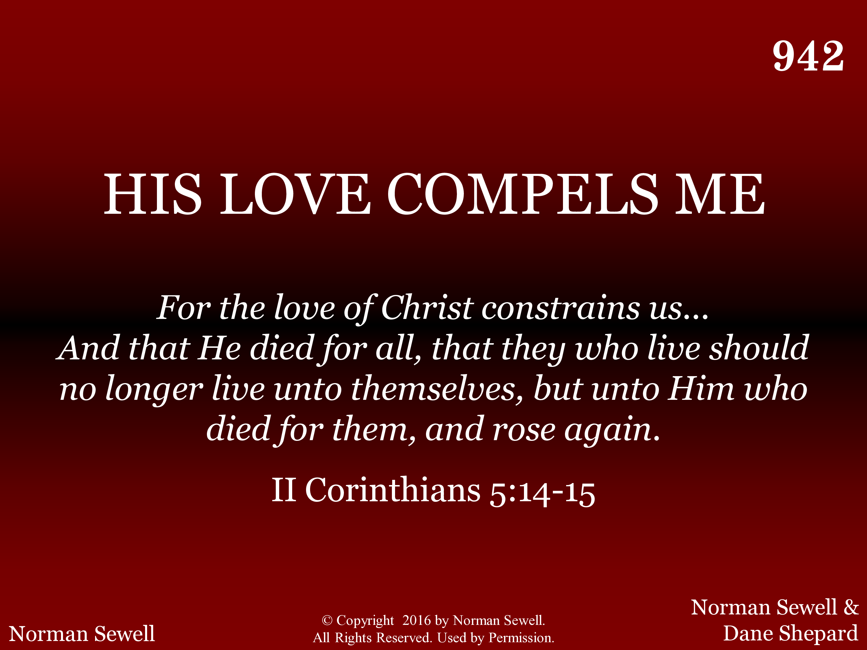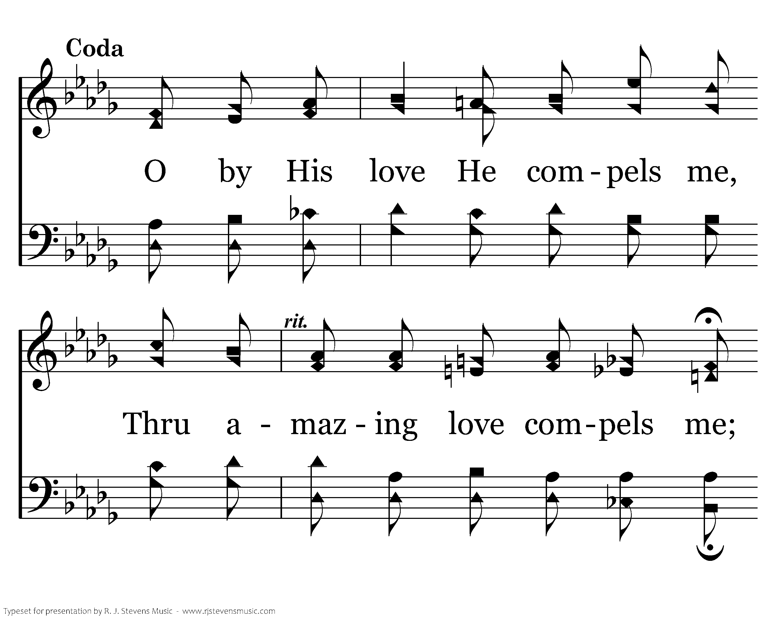O by His love He compels me, Thru amazing love compels me; I must live for Him who died and rose for me.