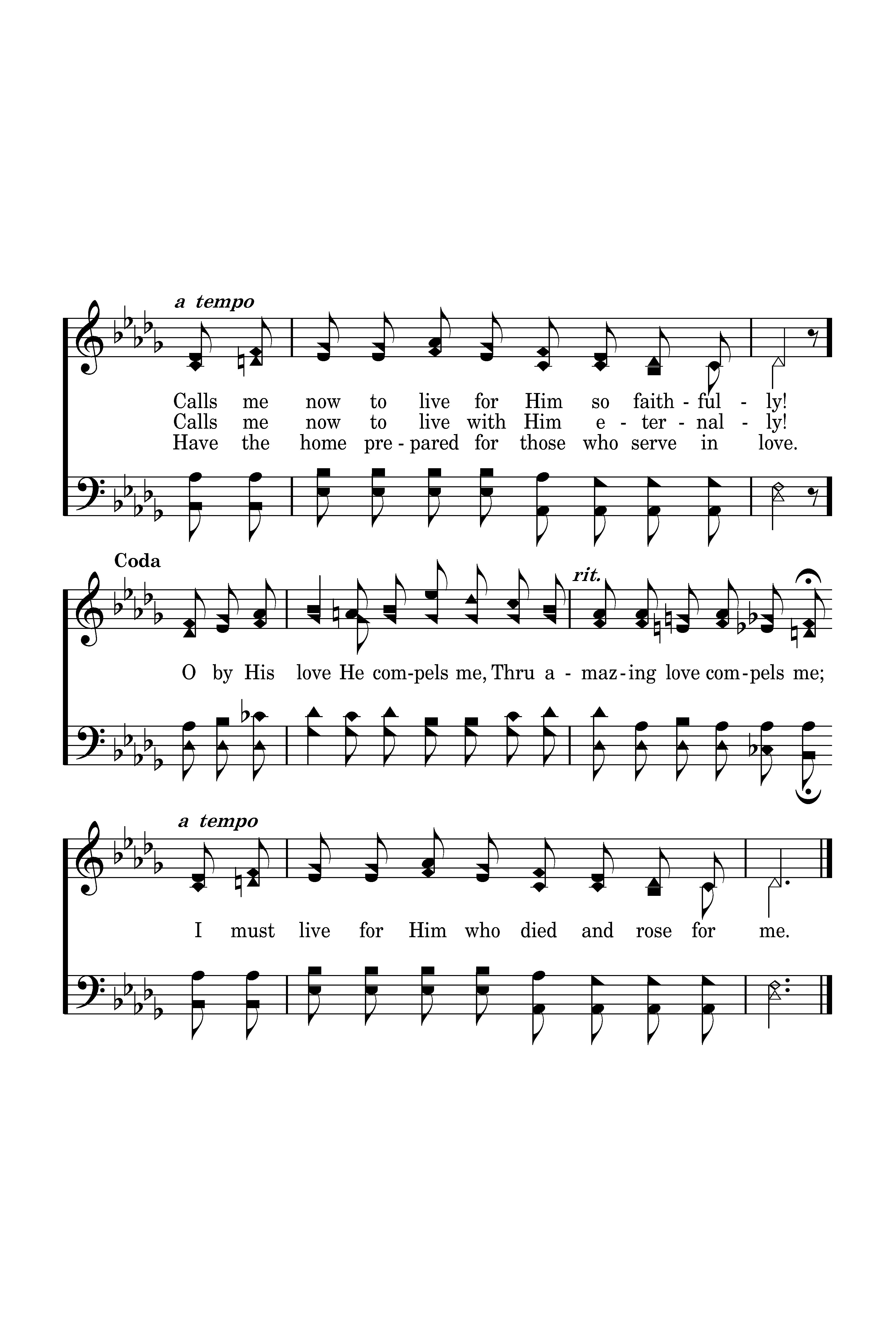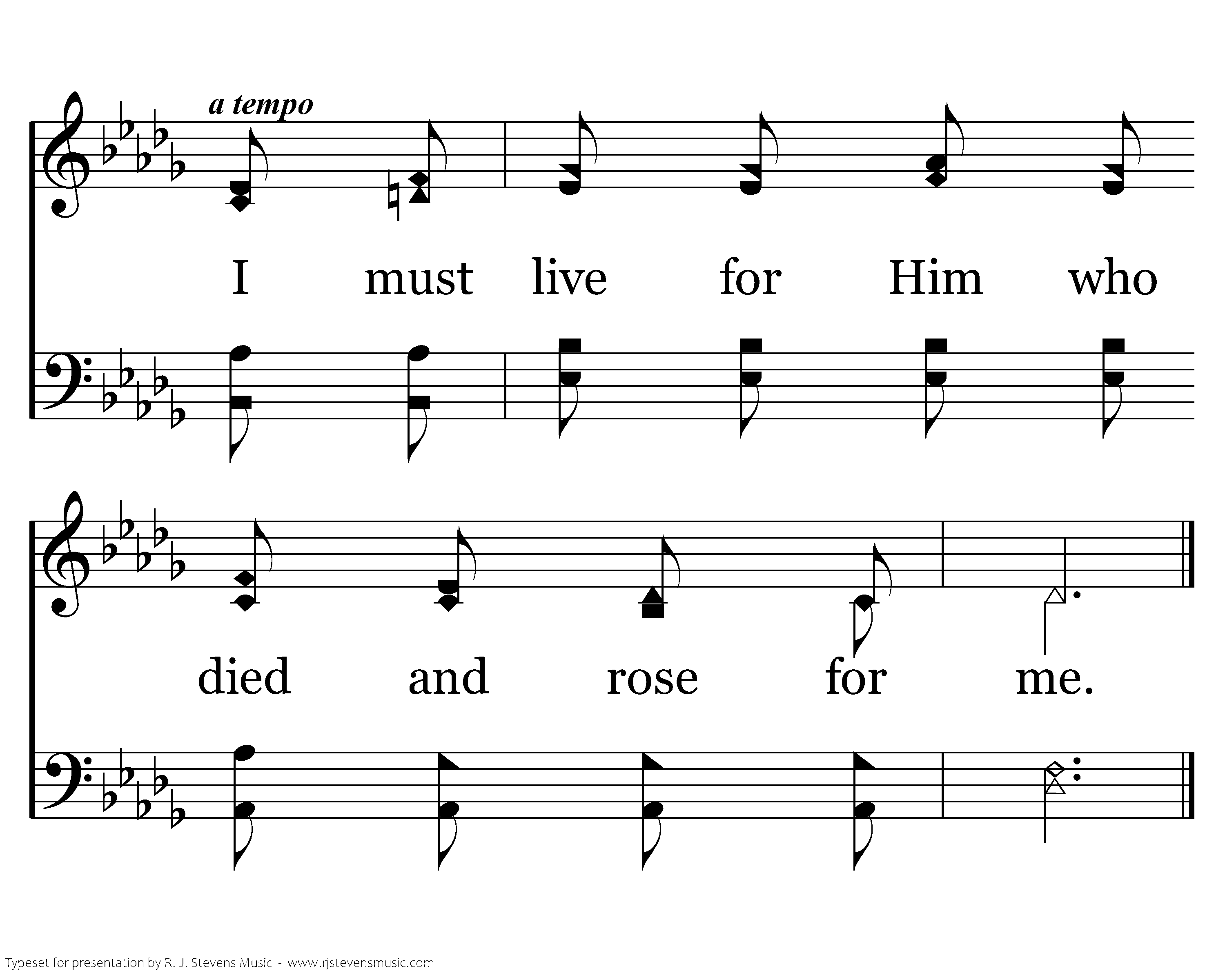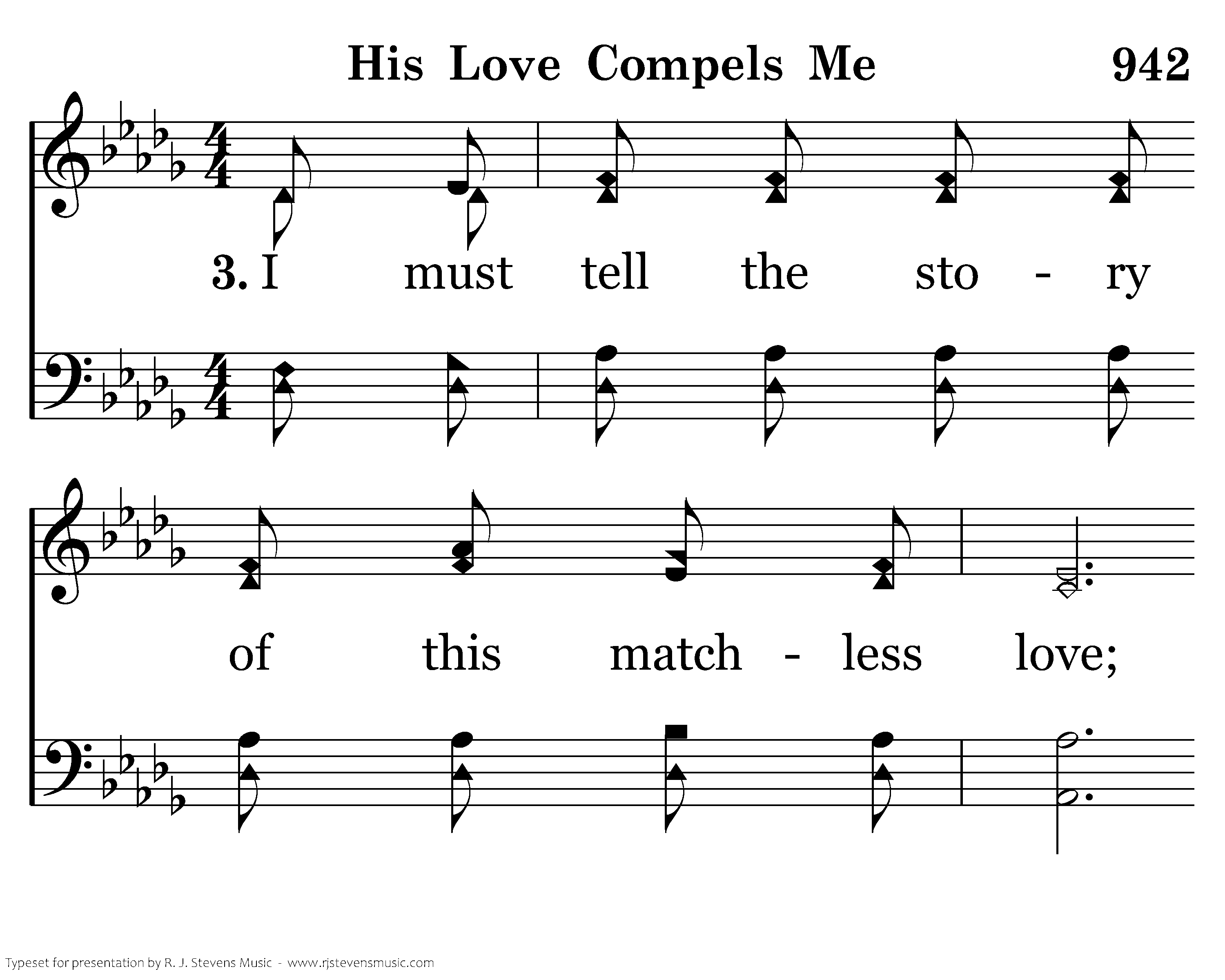 O by His love He compels me, Thru amazing love compels me; I must live for Him who died and rose for me.