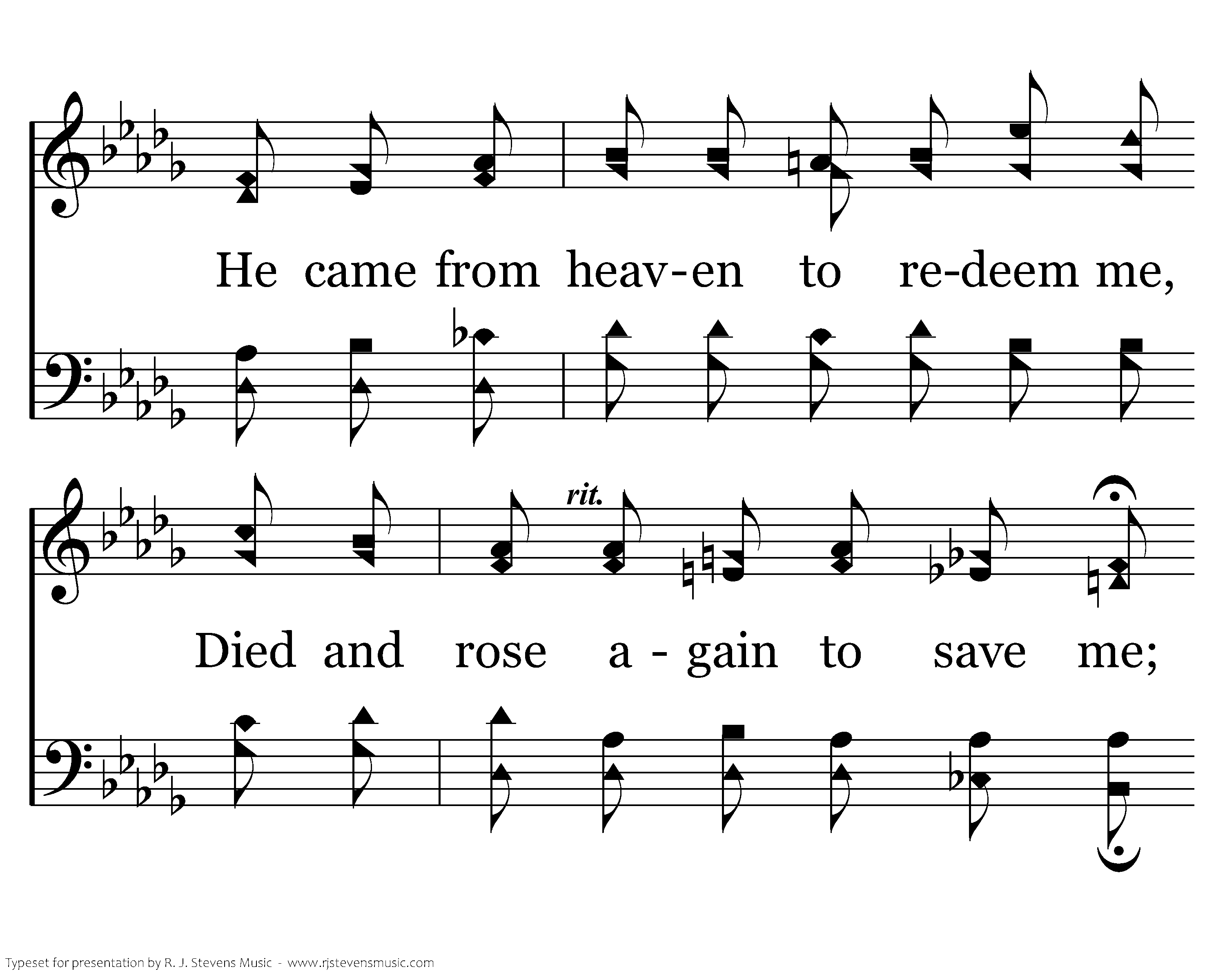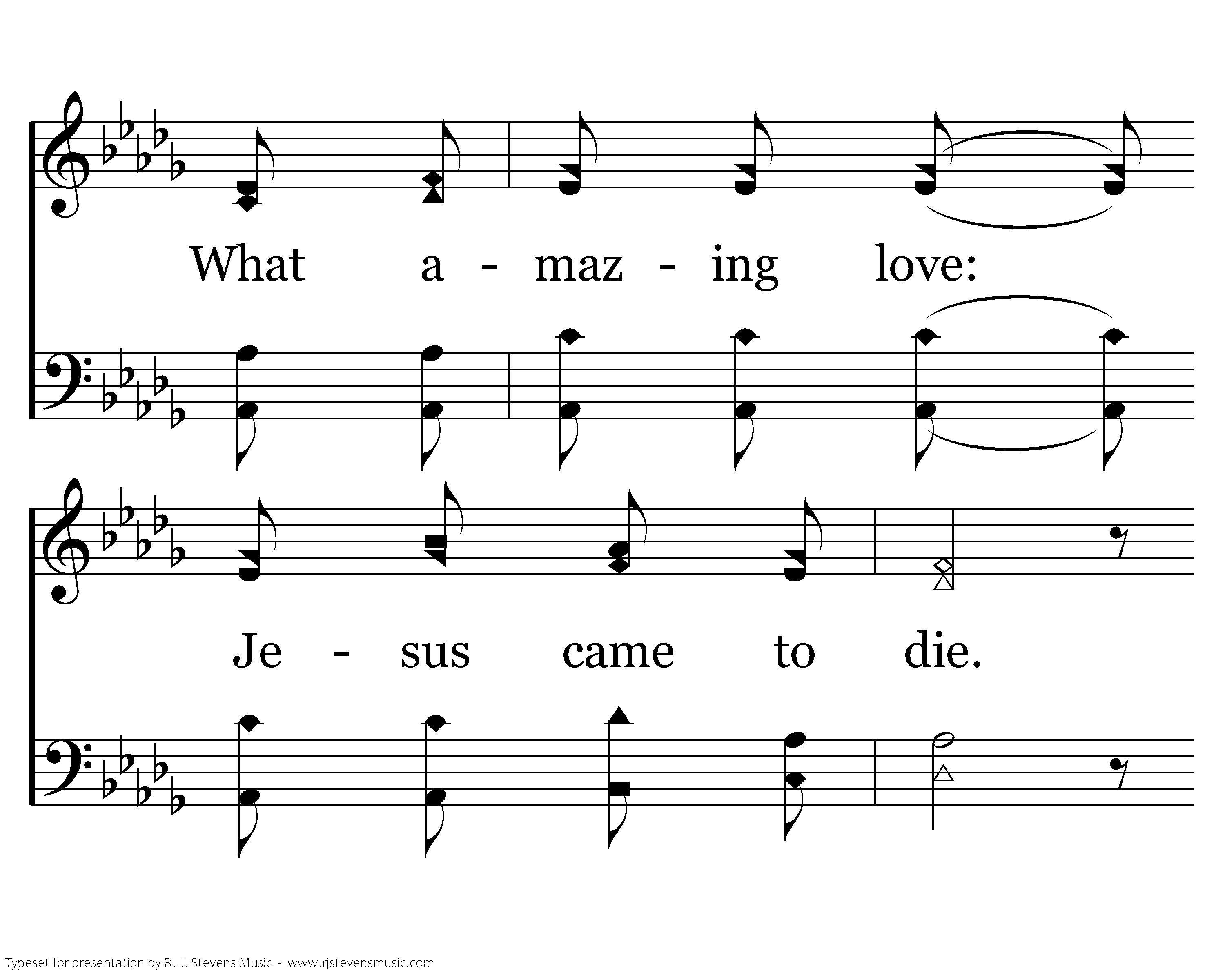 What amazing love: Jesus came to die; What amazing love: Jesus came to die. He came from heaven to redeem me, Died and rose aagain to save me; Calls me now to live with Him eternally!