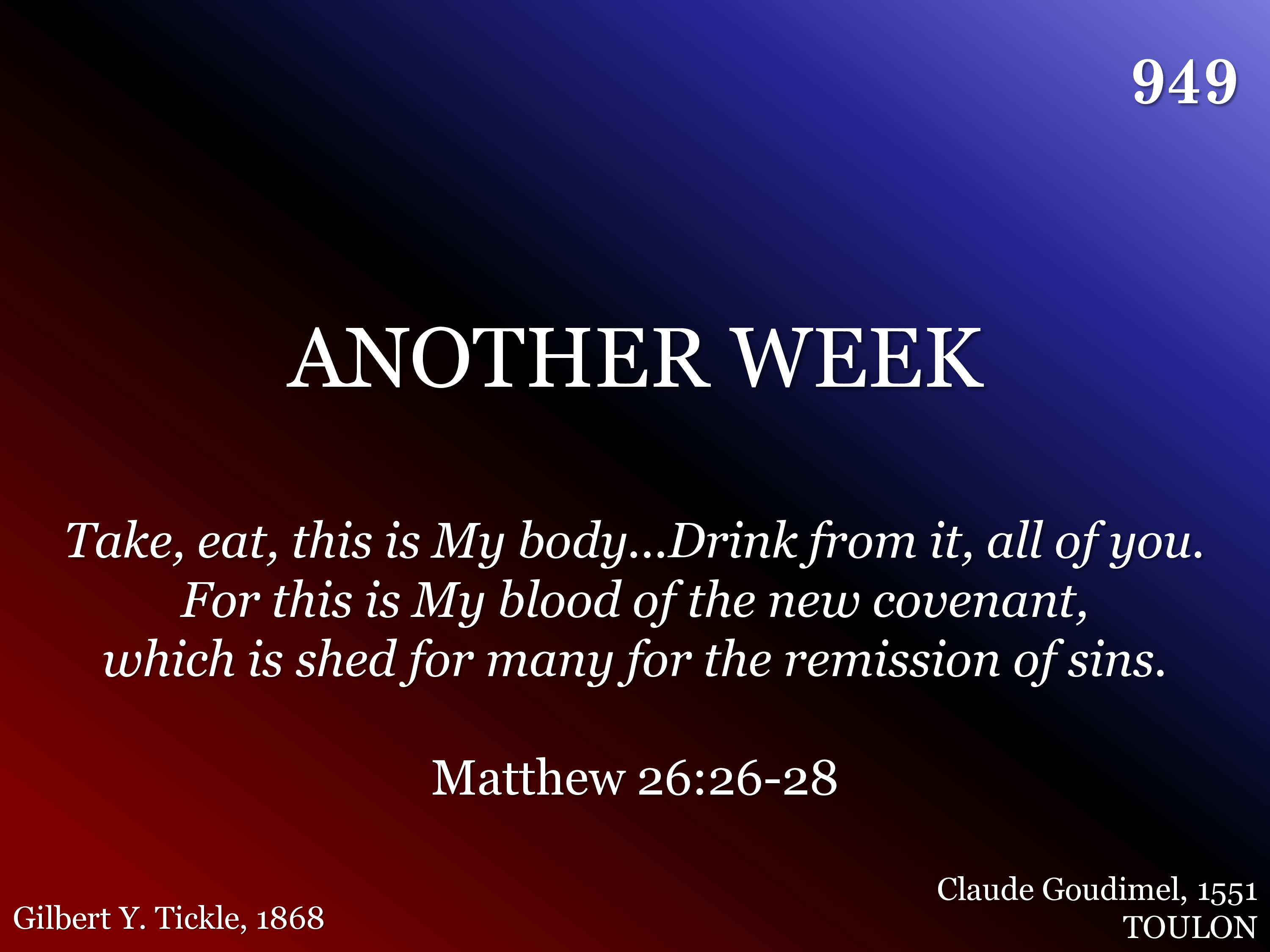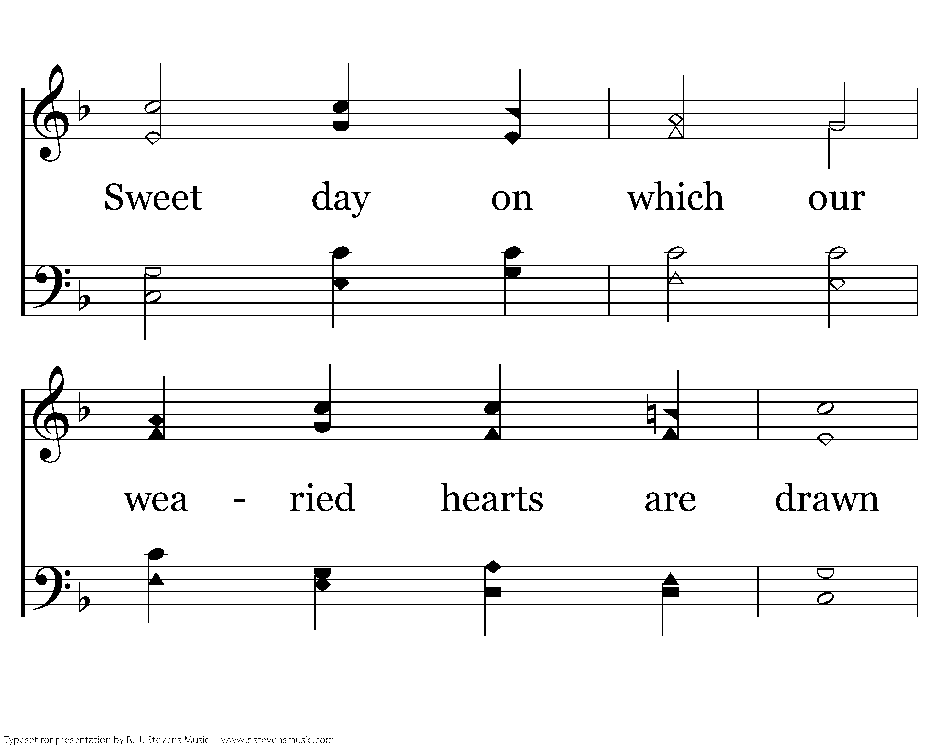 Another week with all its cares hath flown, Another day of rest and peace is here; Sweet day on which our wearied hearts are drawn In holy fellowship to Jesus near.