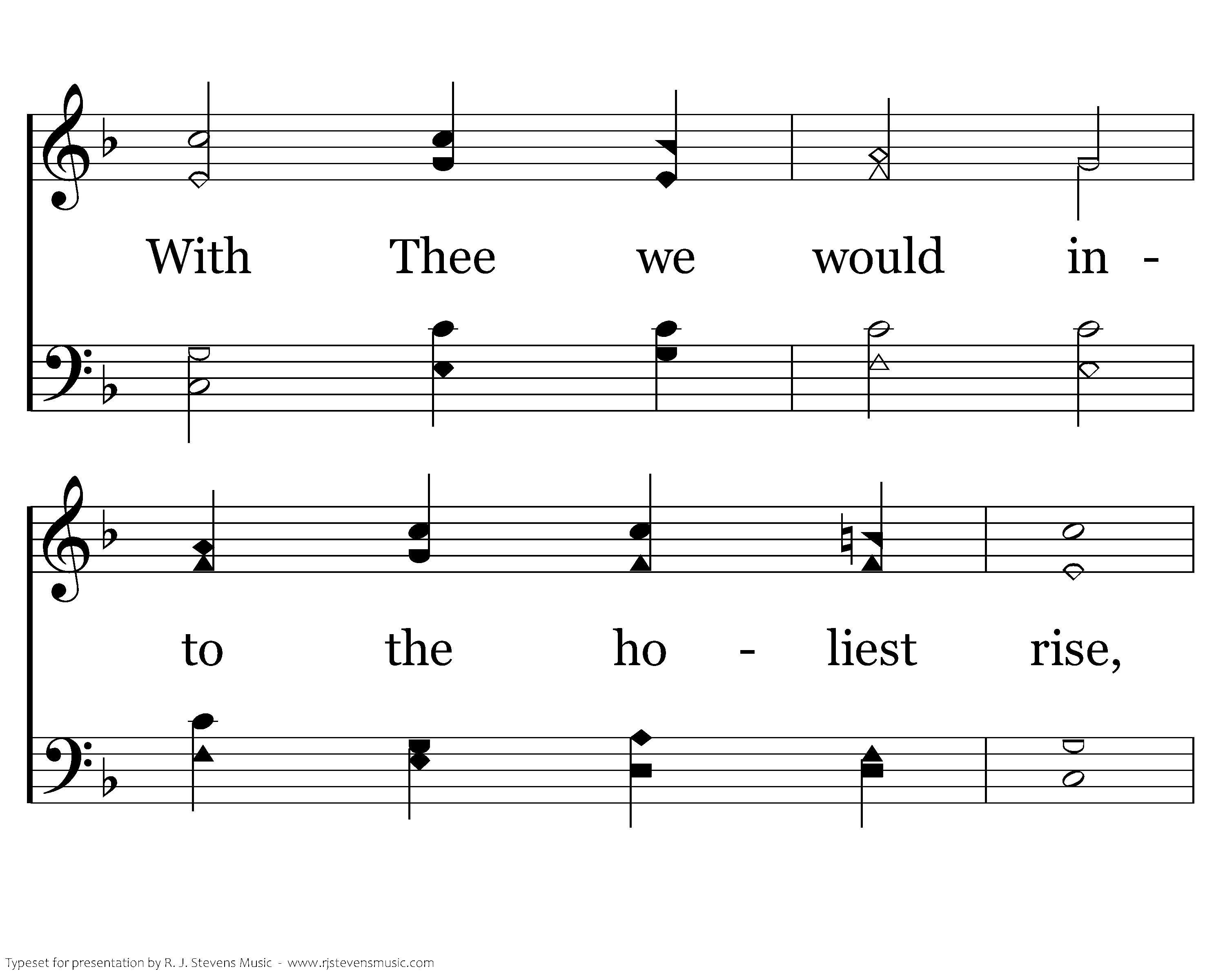 Jesus, our great High Priest, our Sacrifice, Our Passover, rich gift of love divine, With Thee we would into the holiest rise, Communing with Thee in the bread and wine.