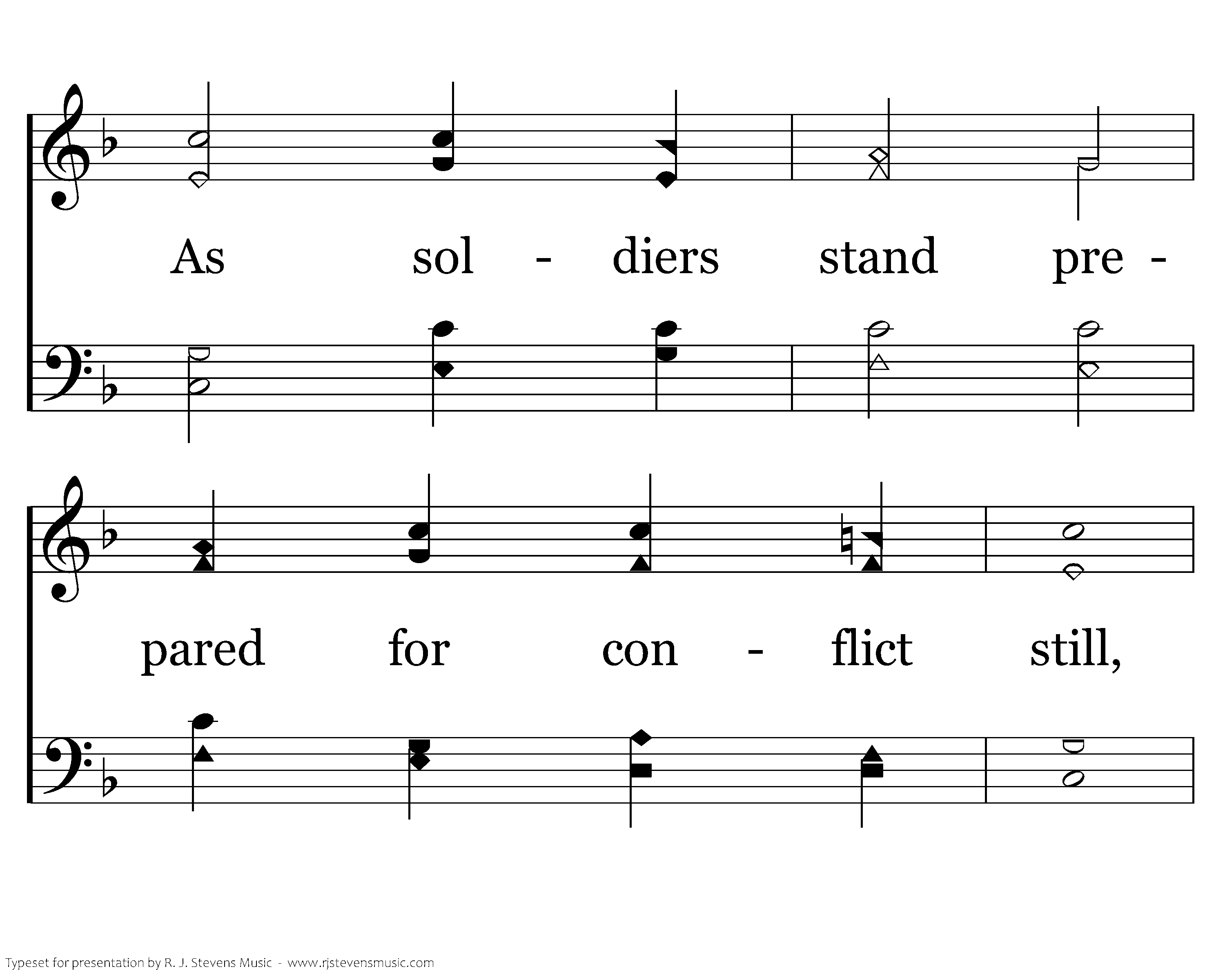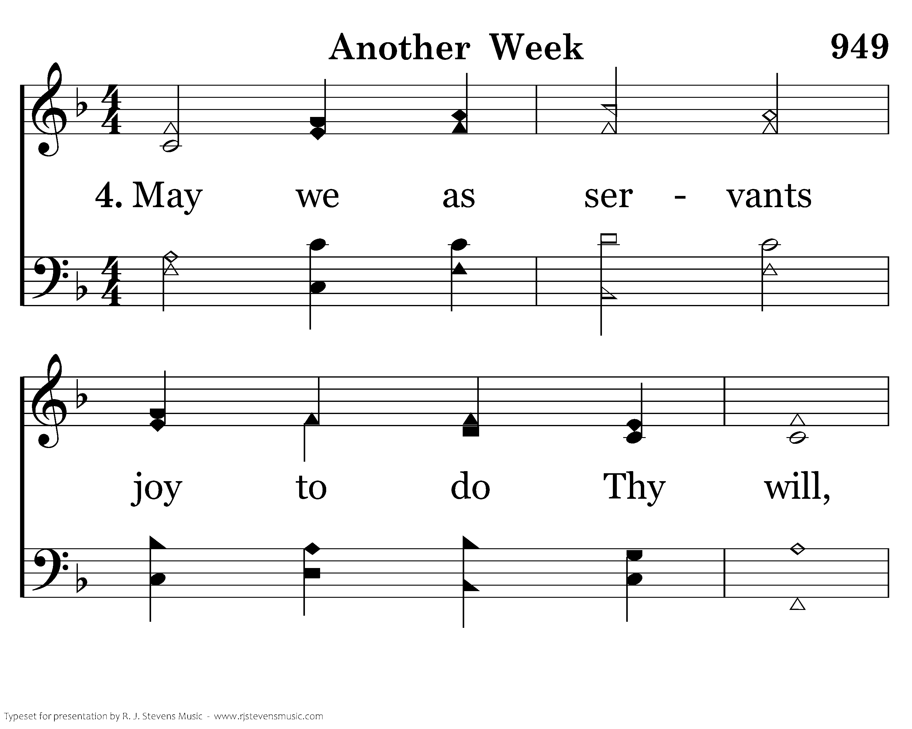 May we as servants joy to do Thy will, As sons the honor of Thy house maintain, As soldiers stand prepared for conflict still, And count all suff'ring borne for Thee as gain.