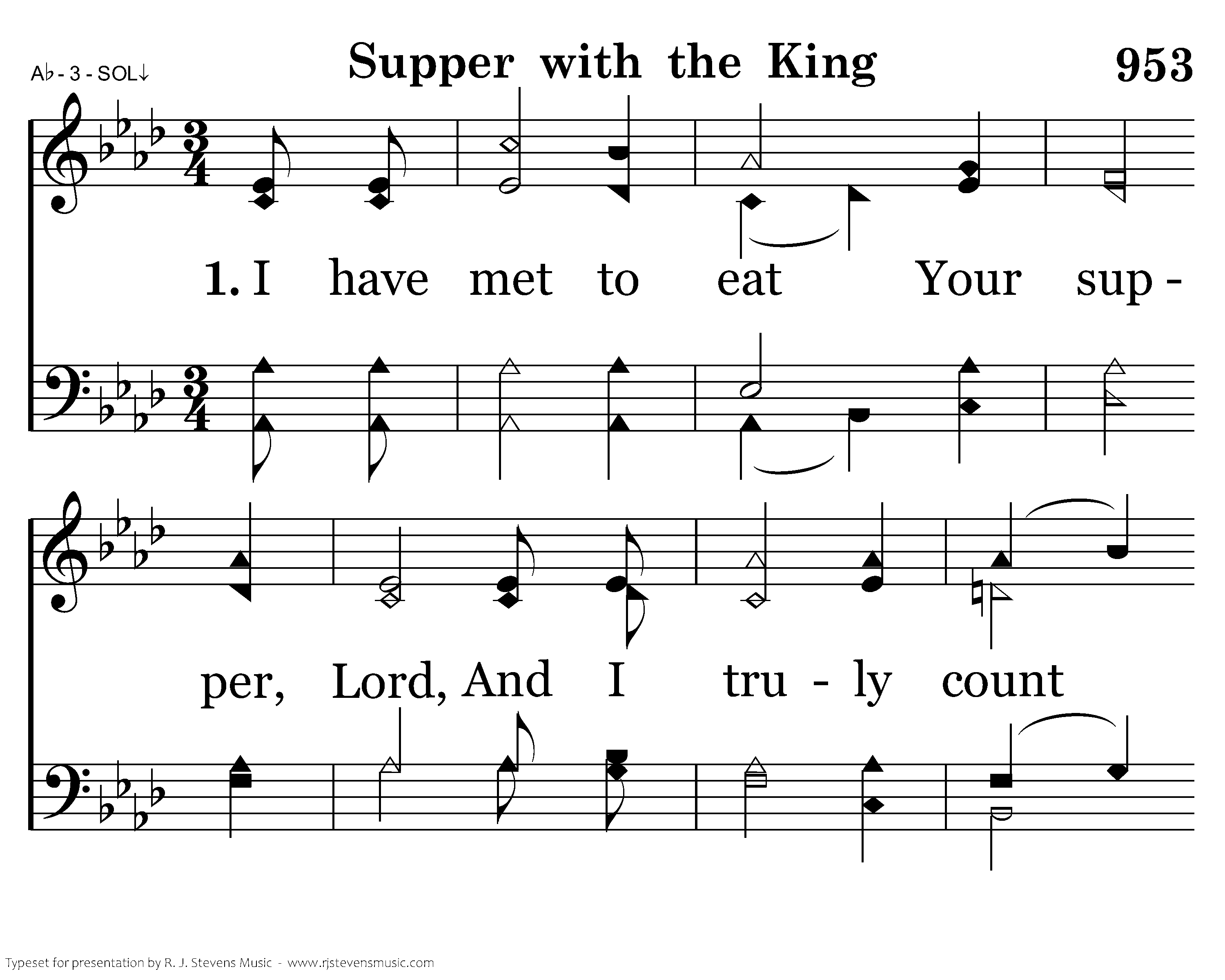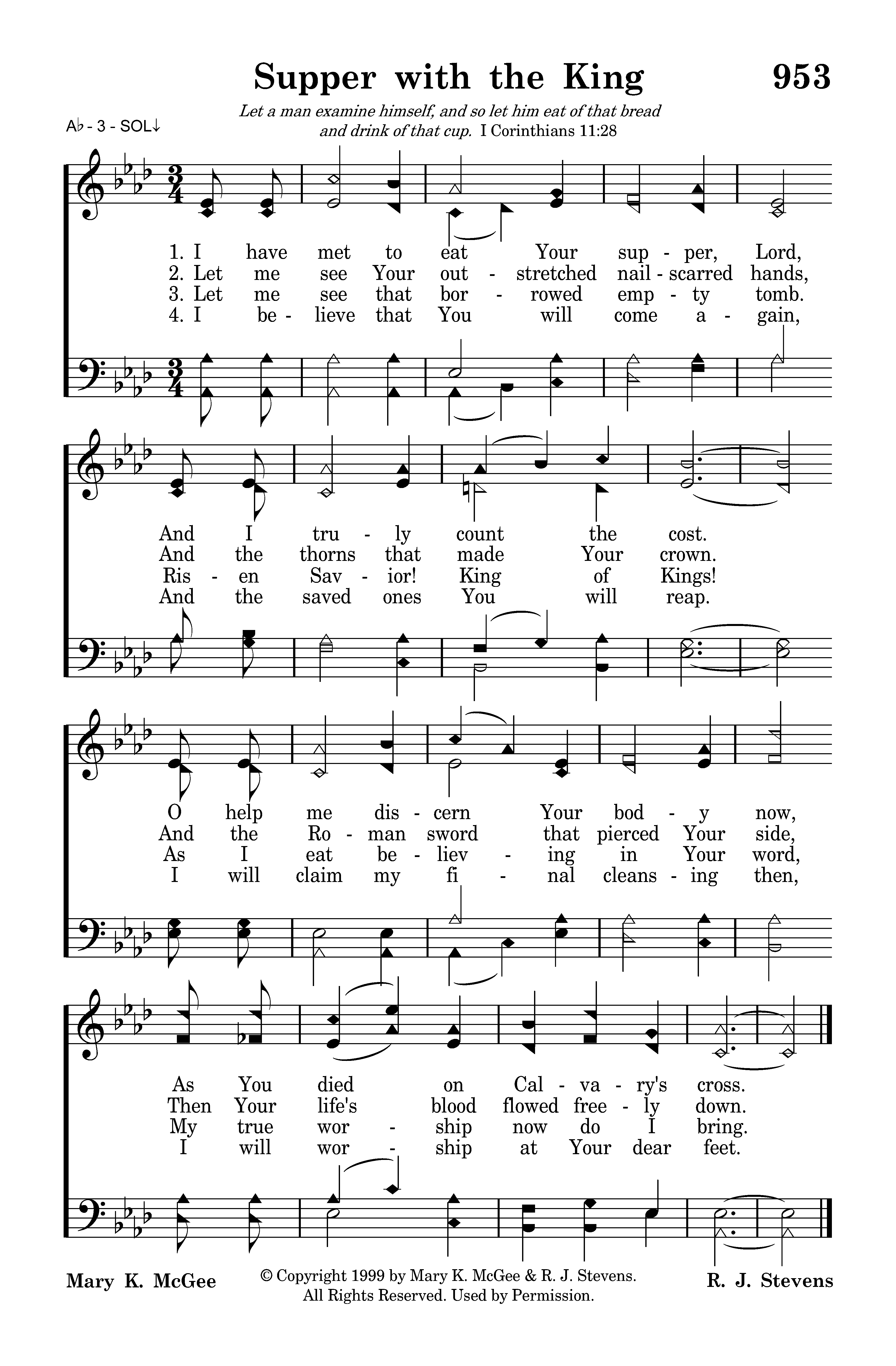 I have met to eat Your supper, Lord, And I truly count the cost. O help me discern Your body now, As You died on Calvary's cross.