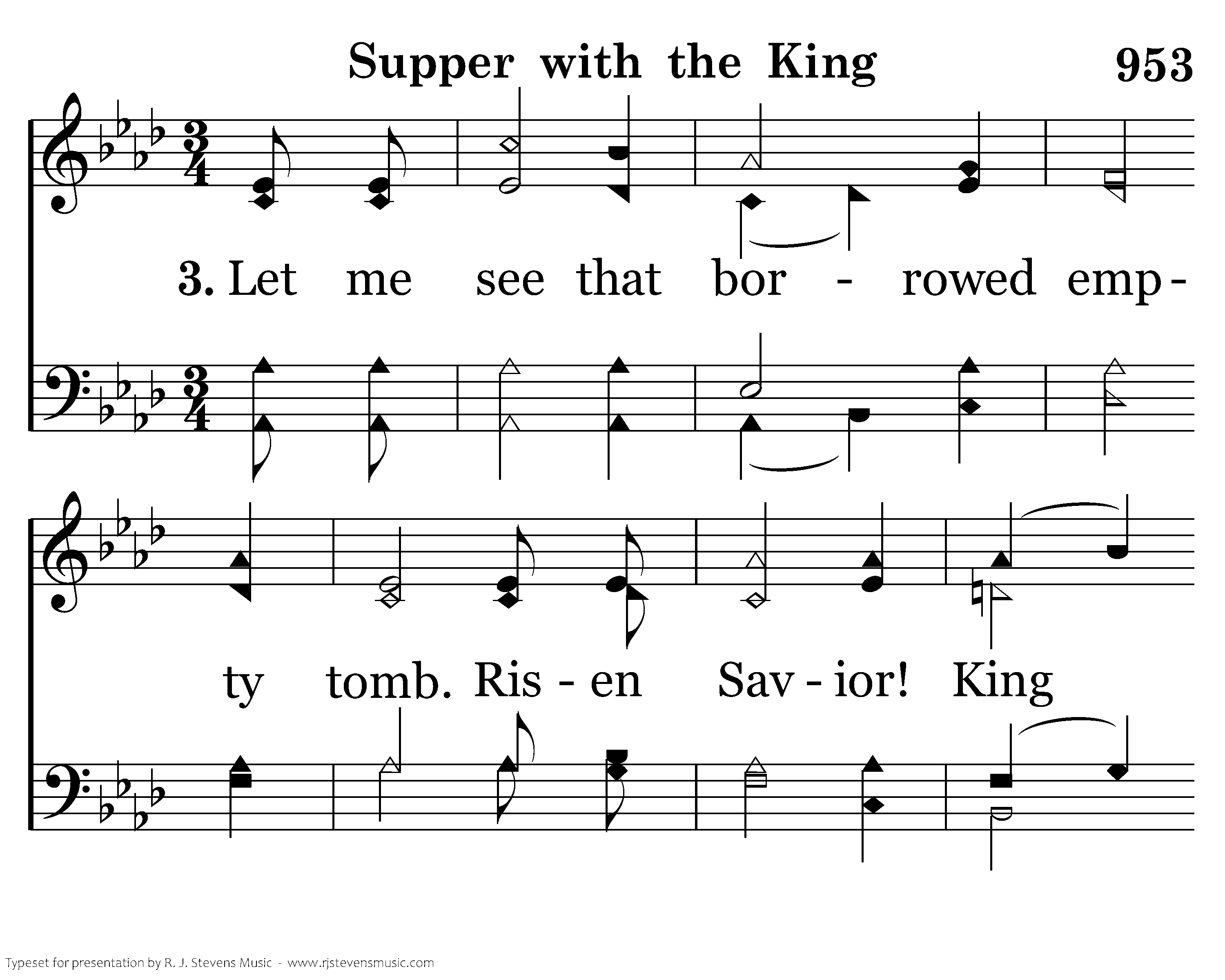 Let me see that borrowed empty tomb. Risen Savior! King of Kings! As I eat believing in Your word, My true worship now do I bring.