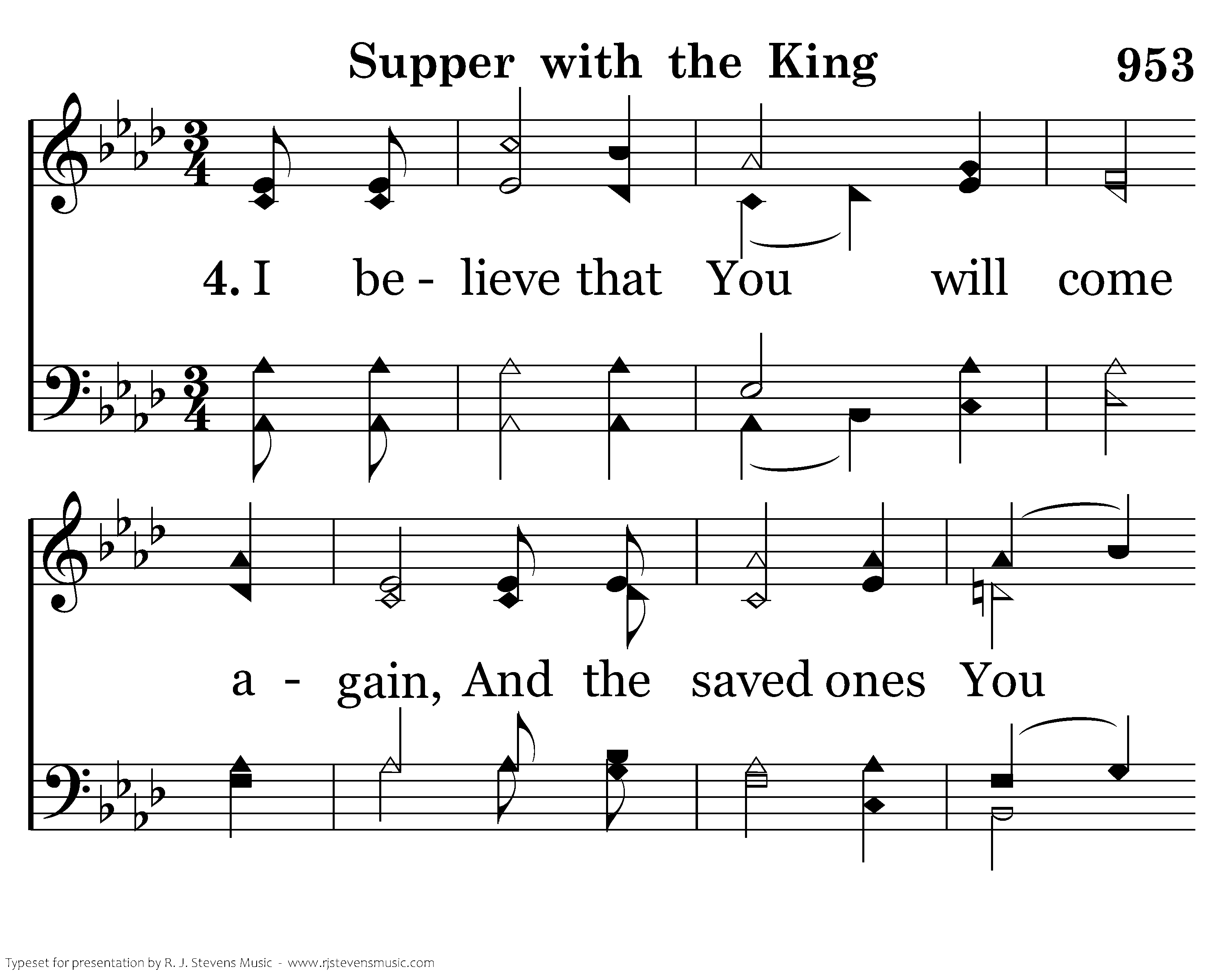 I believe thatYou will come again, And the saved ones You will reap. I will claim my final cleansing then, I will worship at Your dear feet.