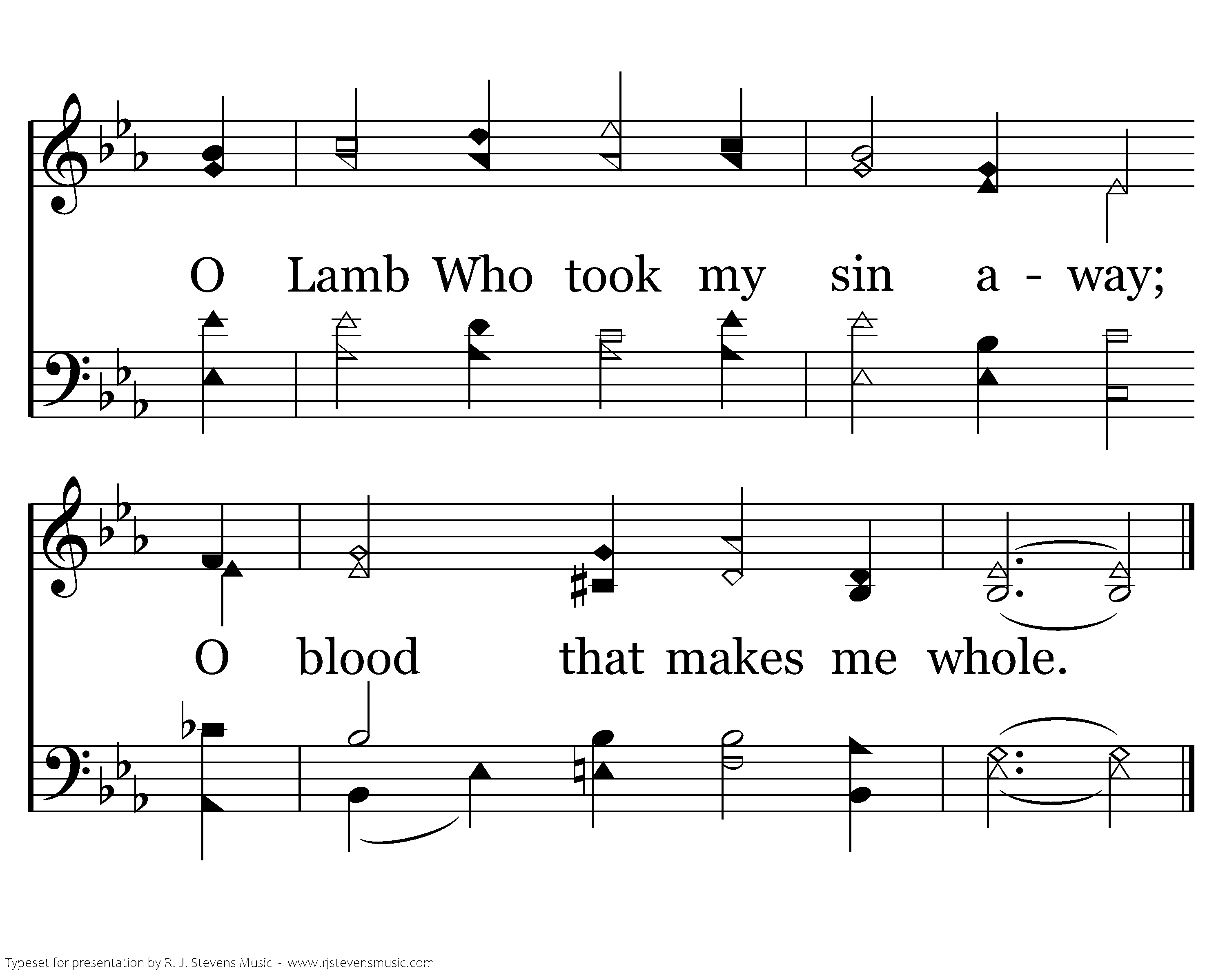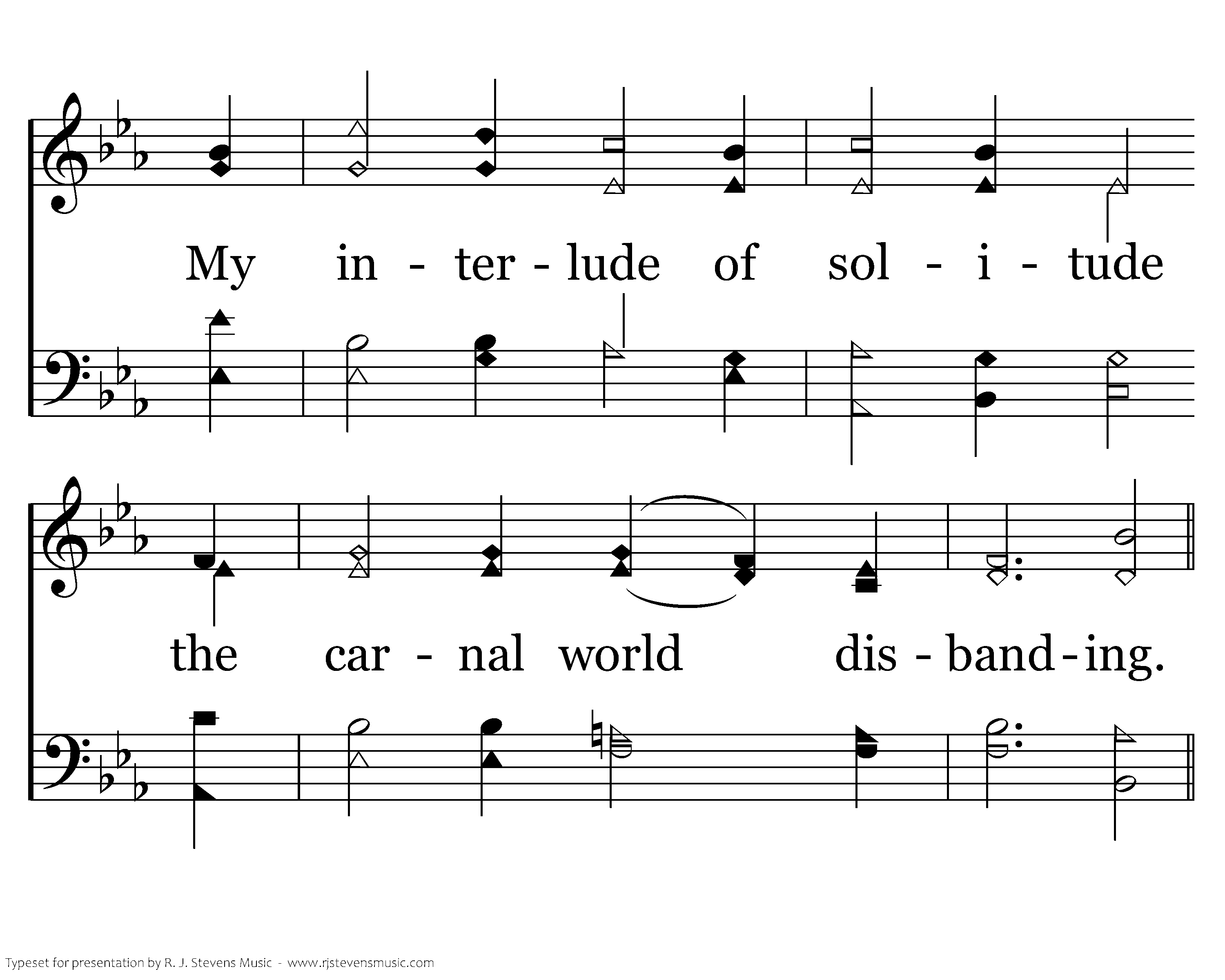 O, Lamb of God, You bought my peace; It passeth understanding. My interlude of solitude the carnal world disbanding.