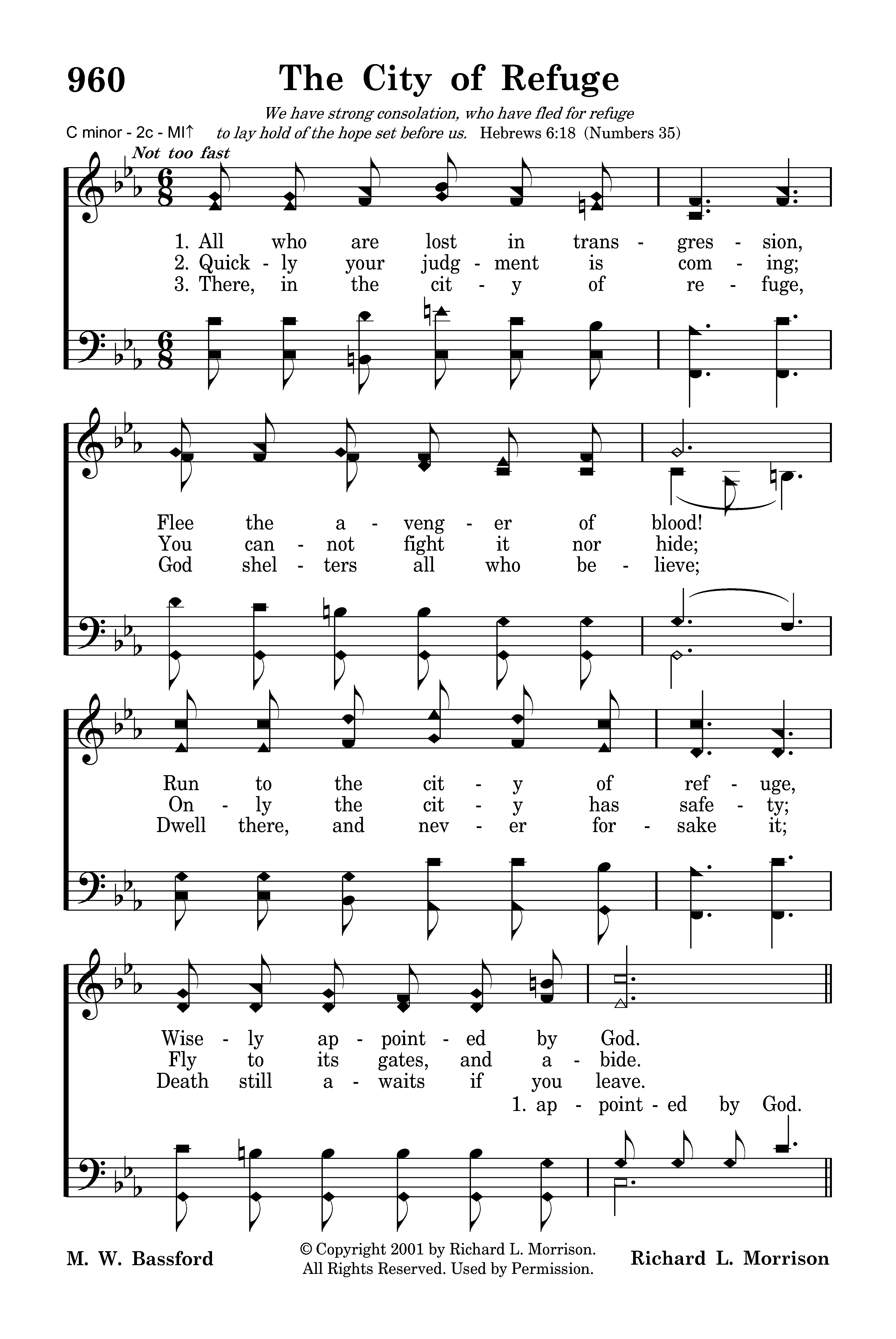 All who are lost in transgression, Flee the avenger of blood! Run to the city of refuge, Wisely appointed by God.