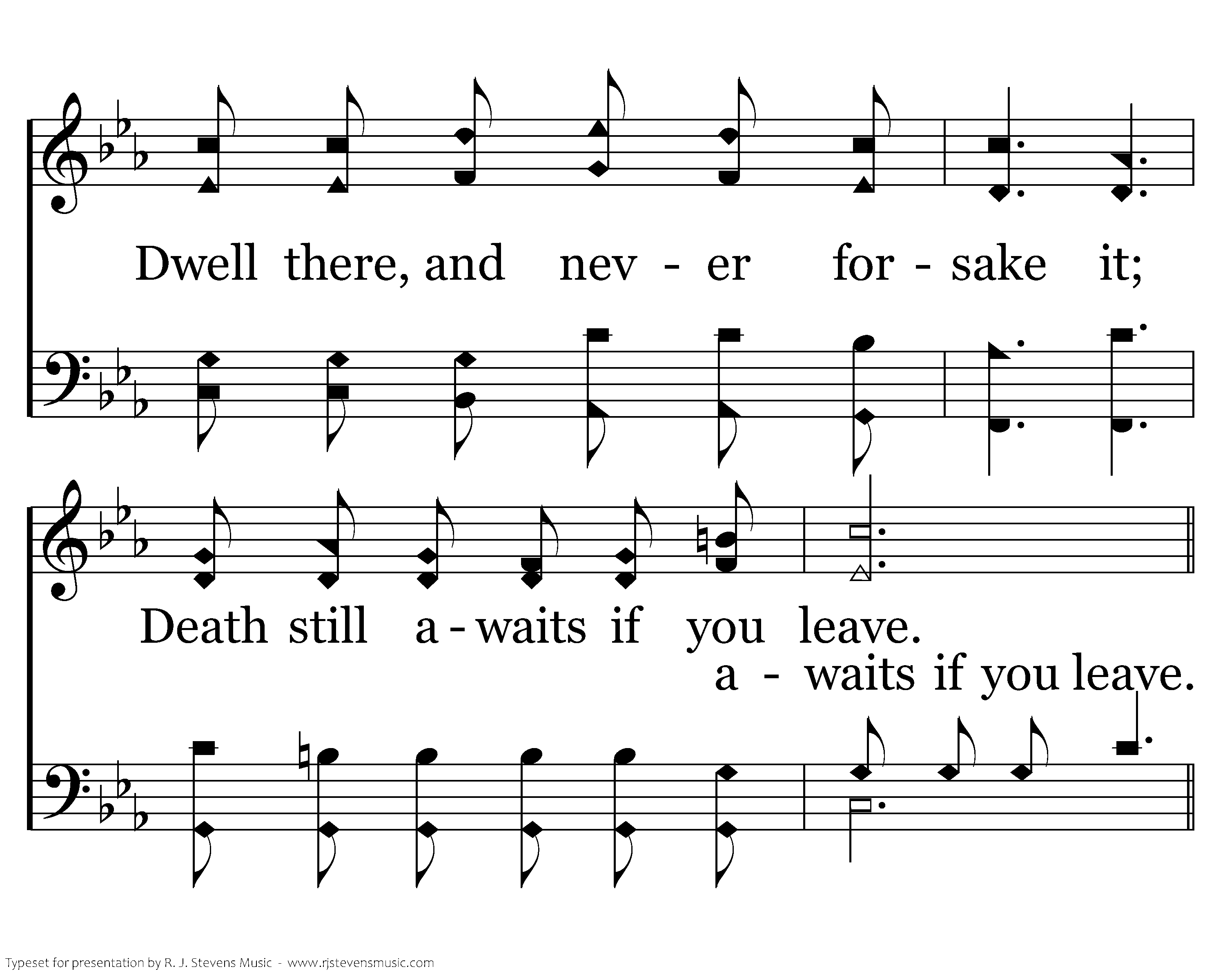 There, in the city of refuge, God shelters all who believe; Dwell there, and never forsake it; Death still awaits if you leave.