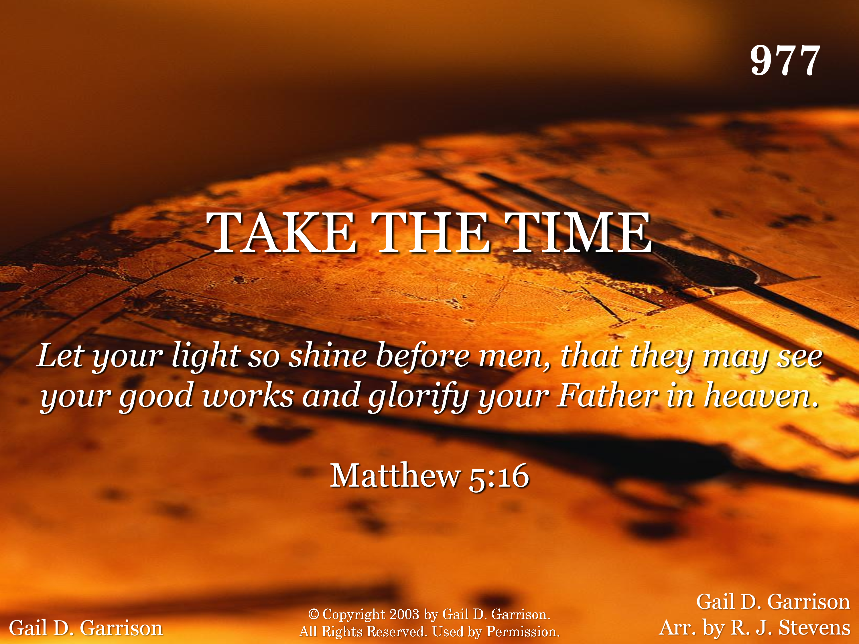 Take the time to teach; Take the time to reach out to those who are lost in sin. Take the time to care; Take the time to share Good news Jesus is their Royal Friend.