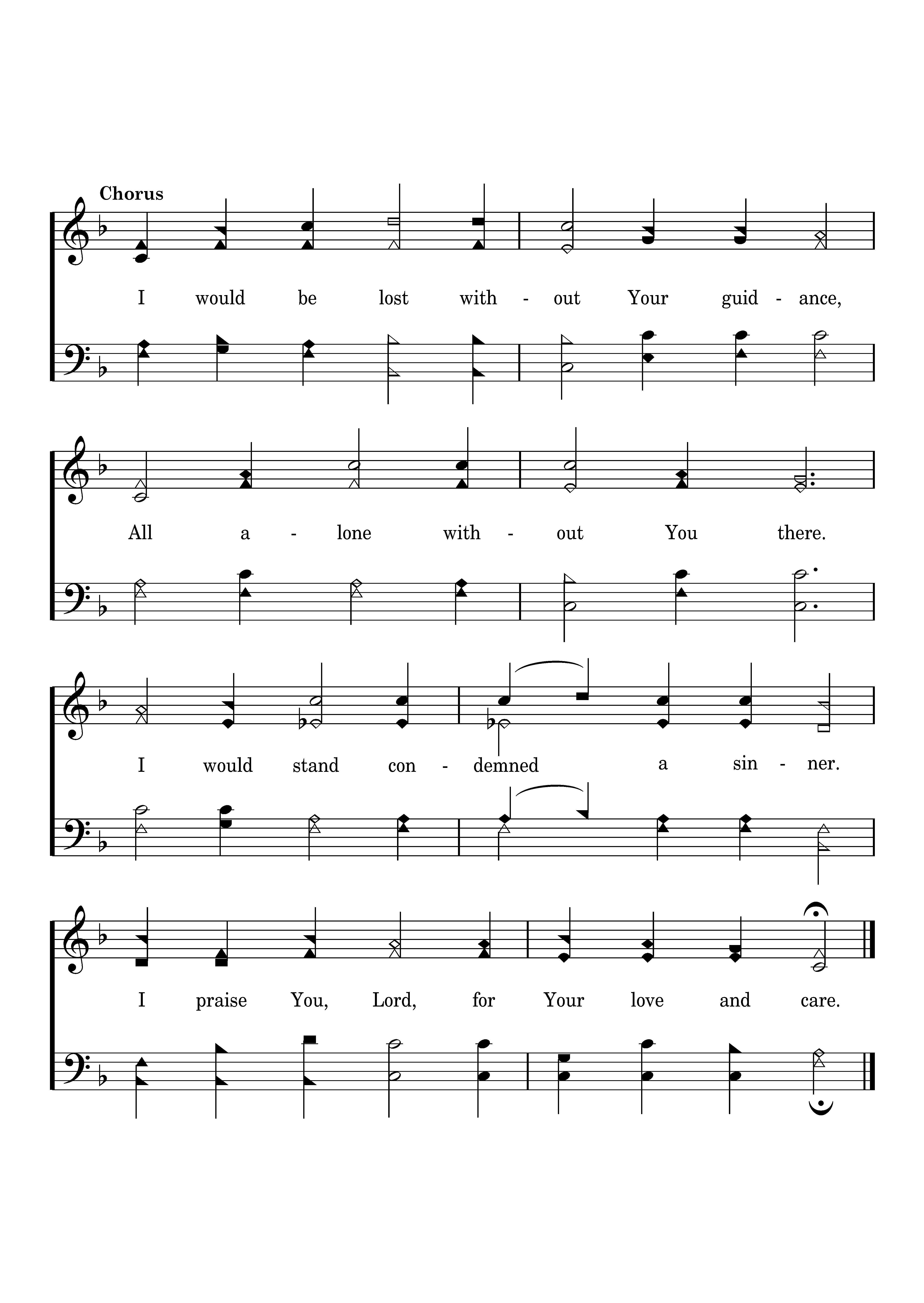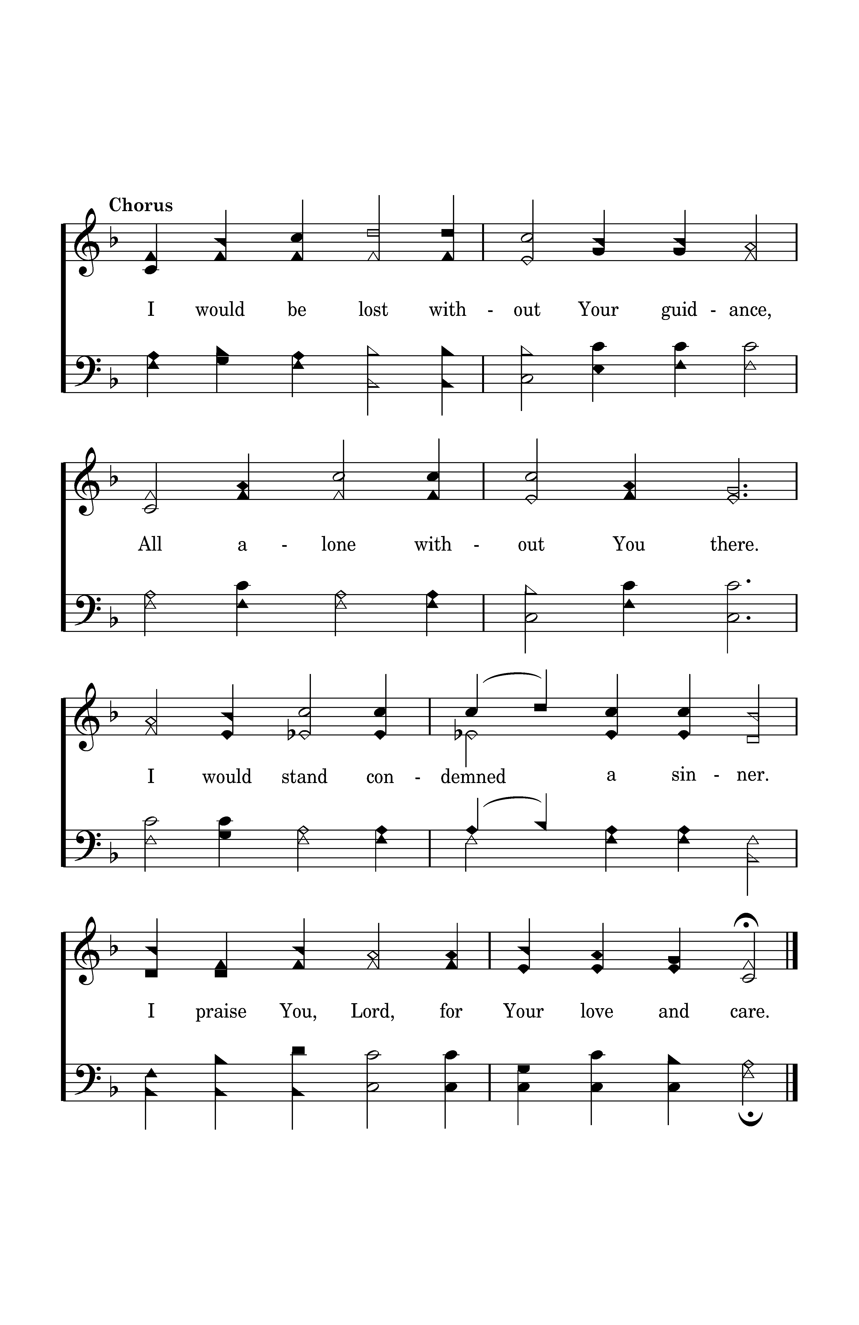 I would be lost without Your Your guidance, All alone without You there. I would stand condemned a sinner. I praise You, Lord, for Your love and care