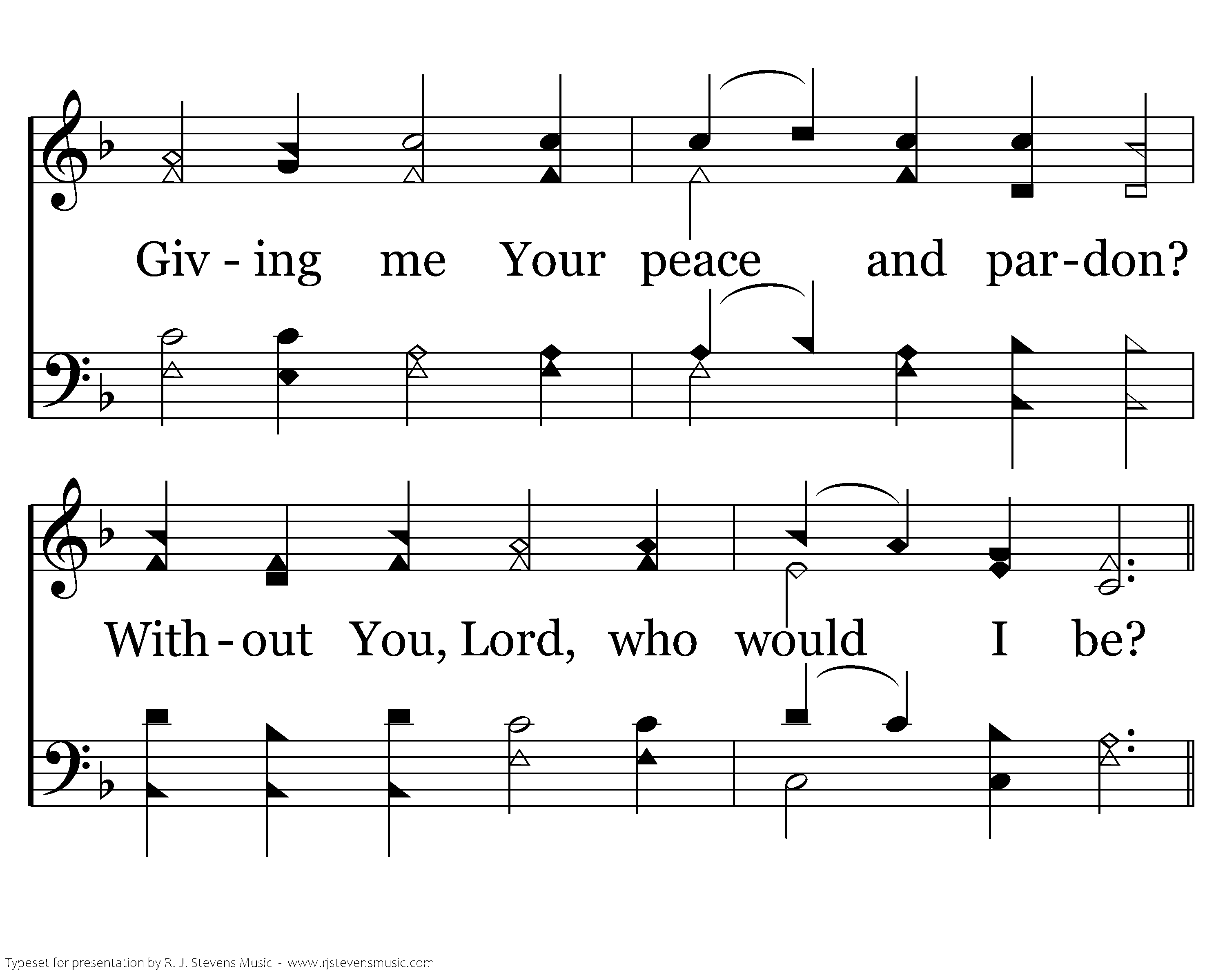 Who would I be withbe without Your goodness, When You came to to earth to die, Giving me Your peace and pardon? Without You, Lord, who would I be?