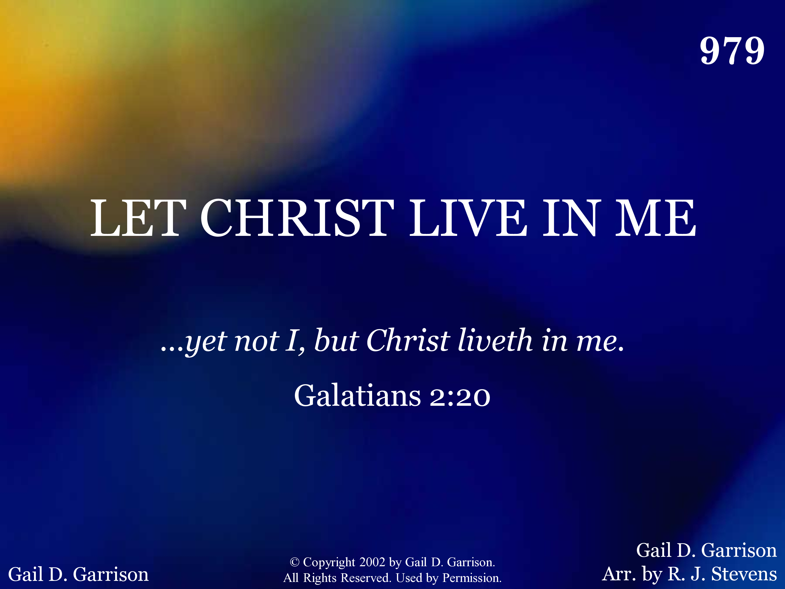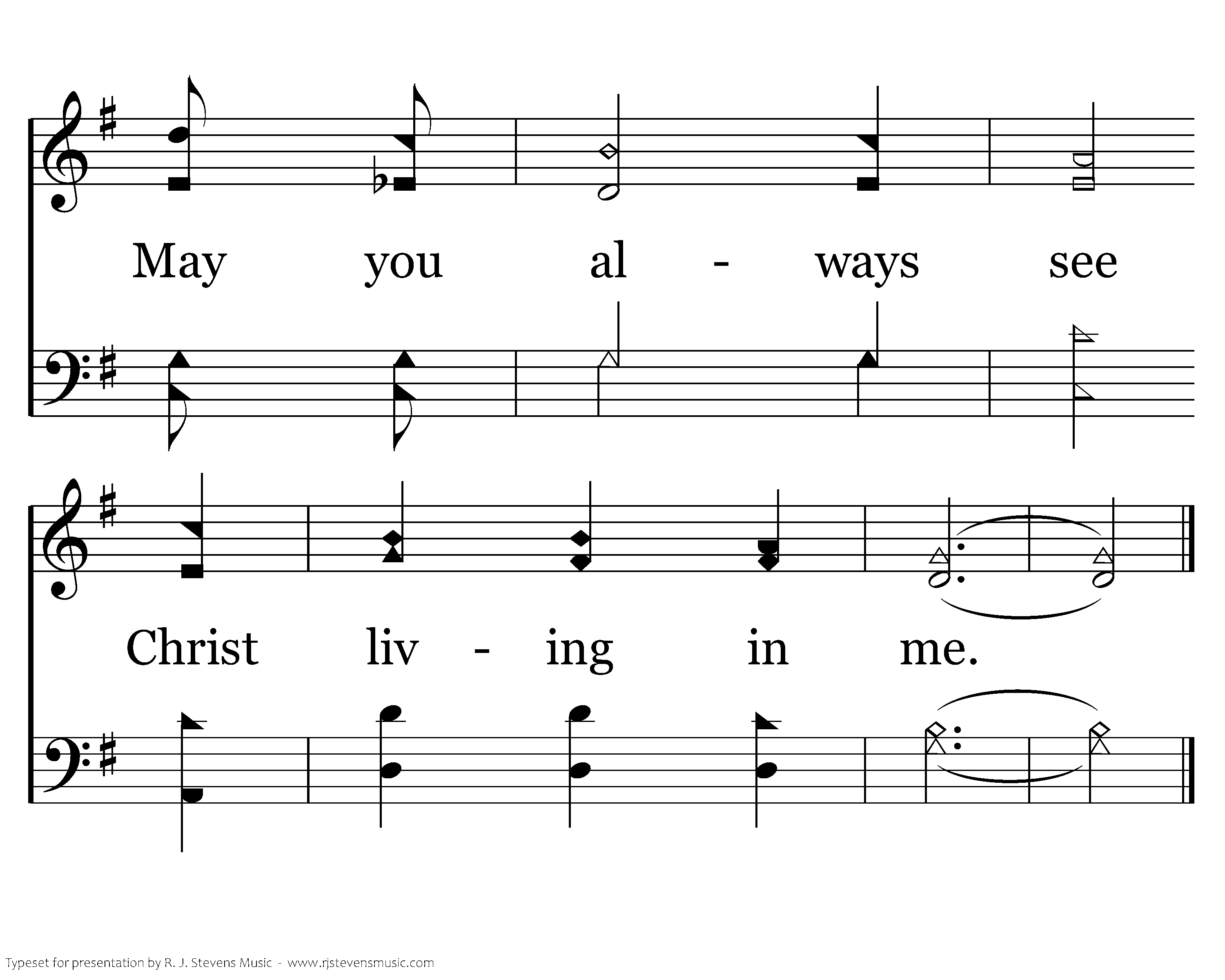 Let Christ live in you; Let Christ live in me. For all the world around to see, He lives in you and in me.