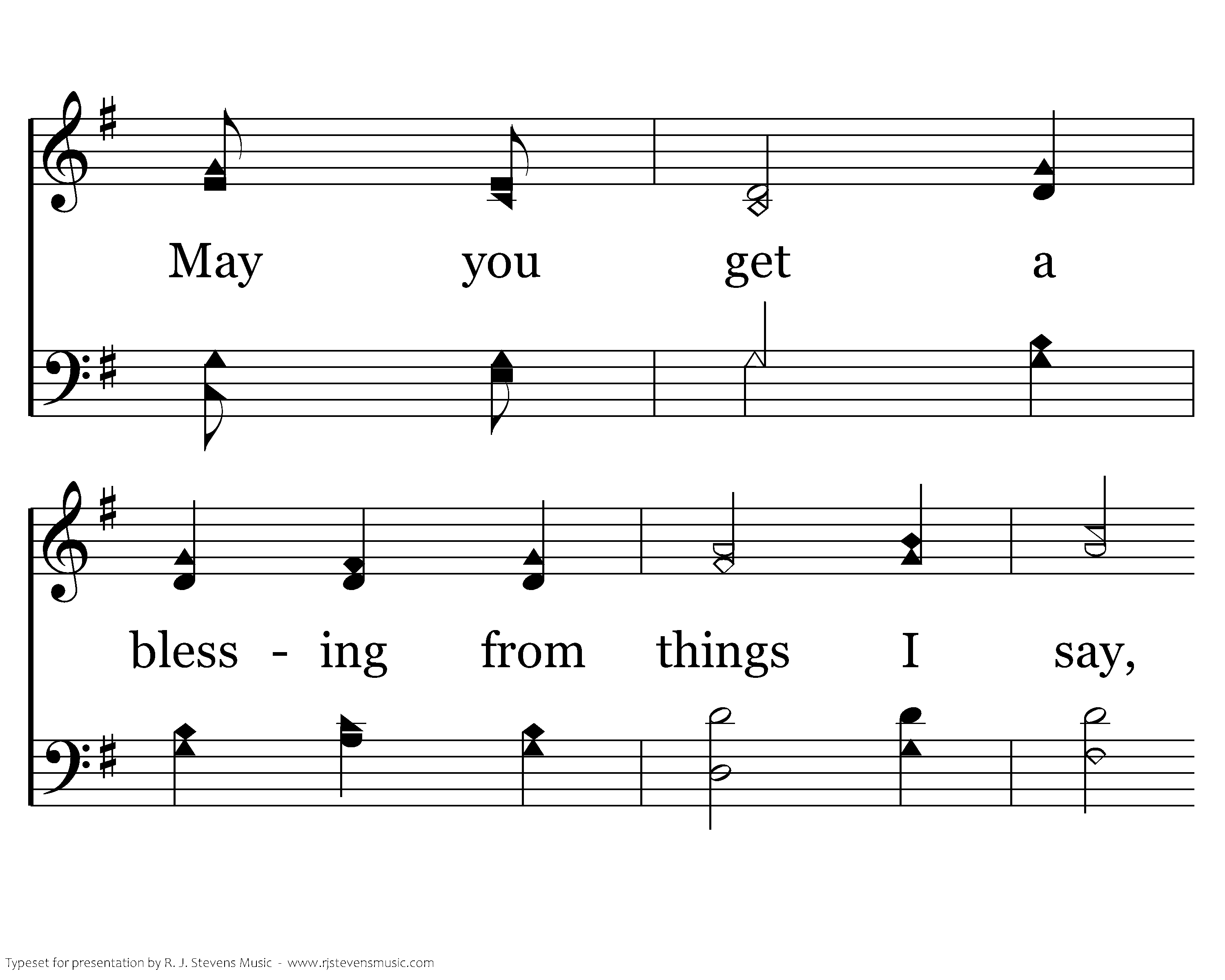 May my words be tender and kind to you; May you get a blessing from things I say, May no harsh angry words ever pass my lips; May you always hear Christ living in me.