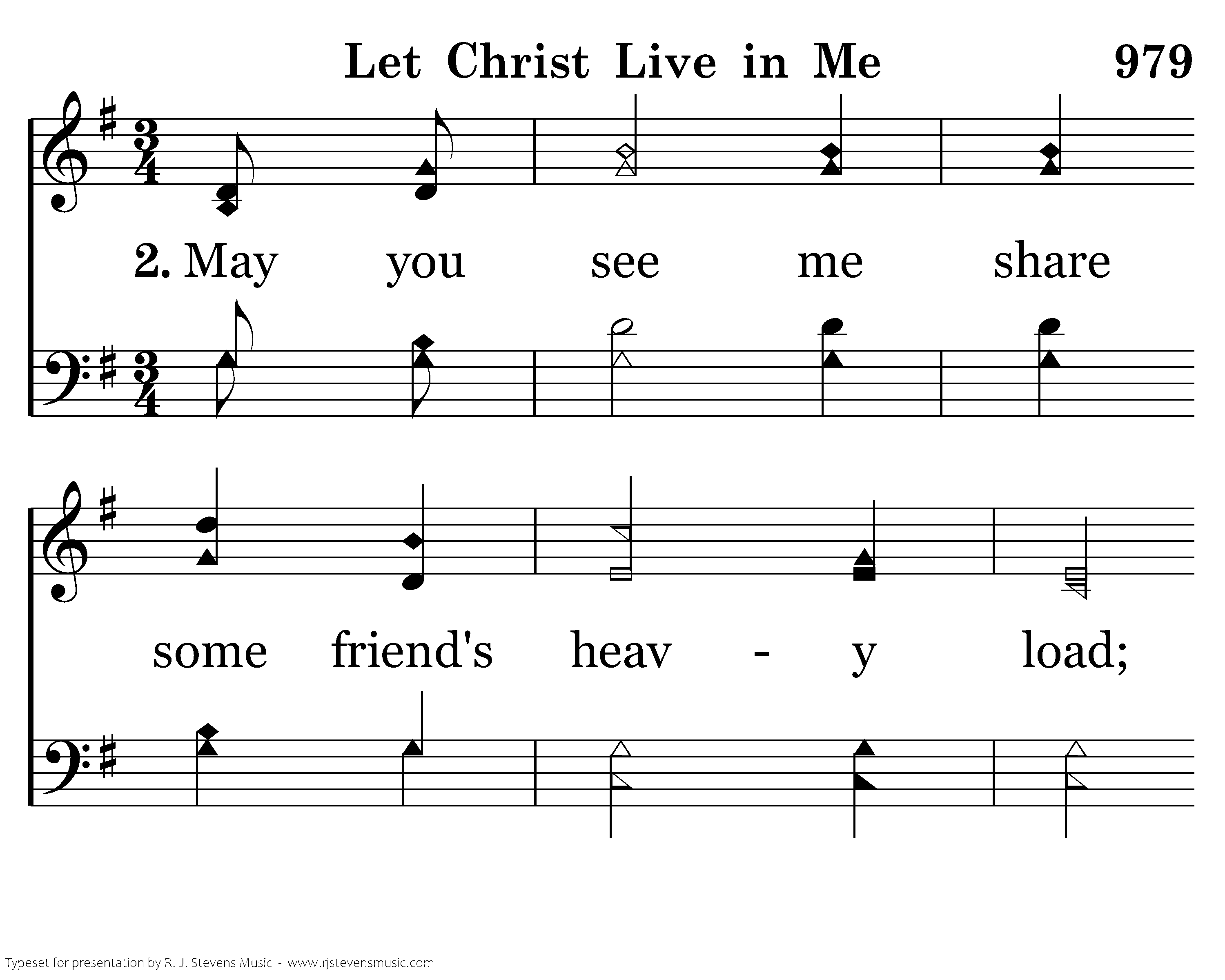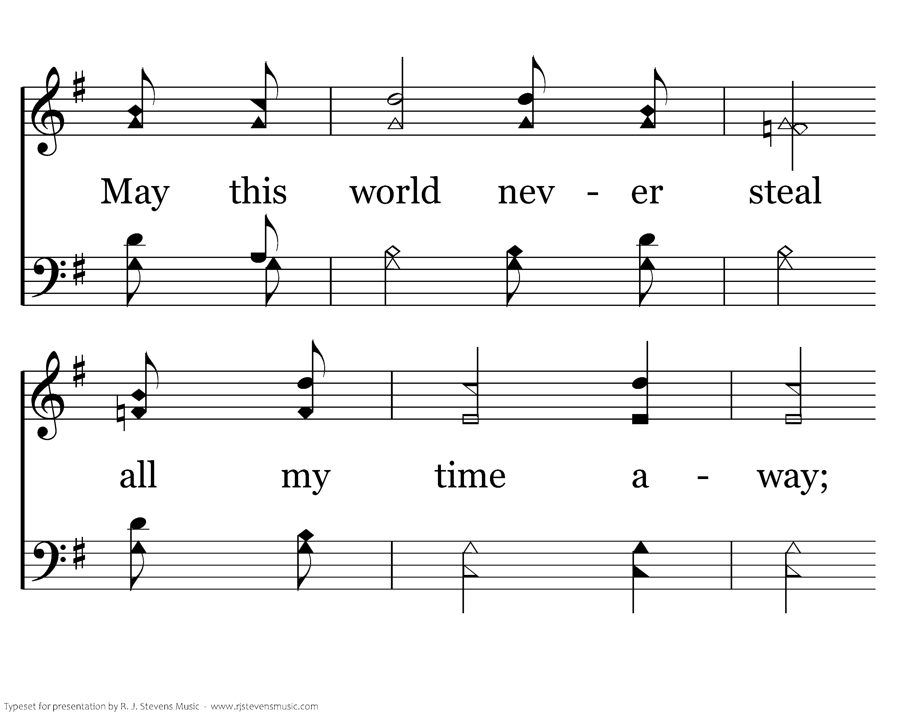 May you see me share some friend's heavy load; May someone reap service from things I do. May this world never steal all my time away; May you always see Christ living in me