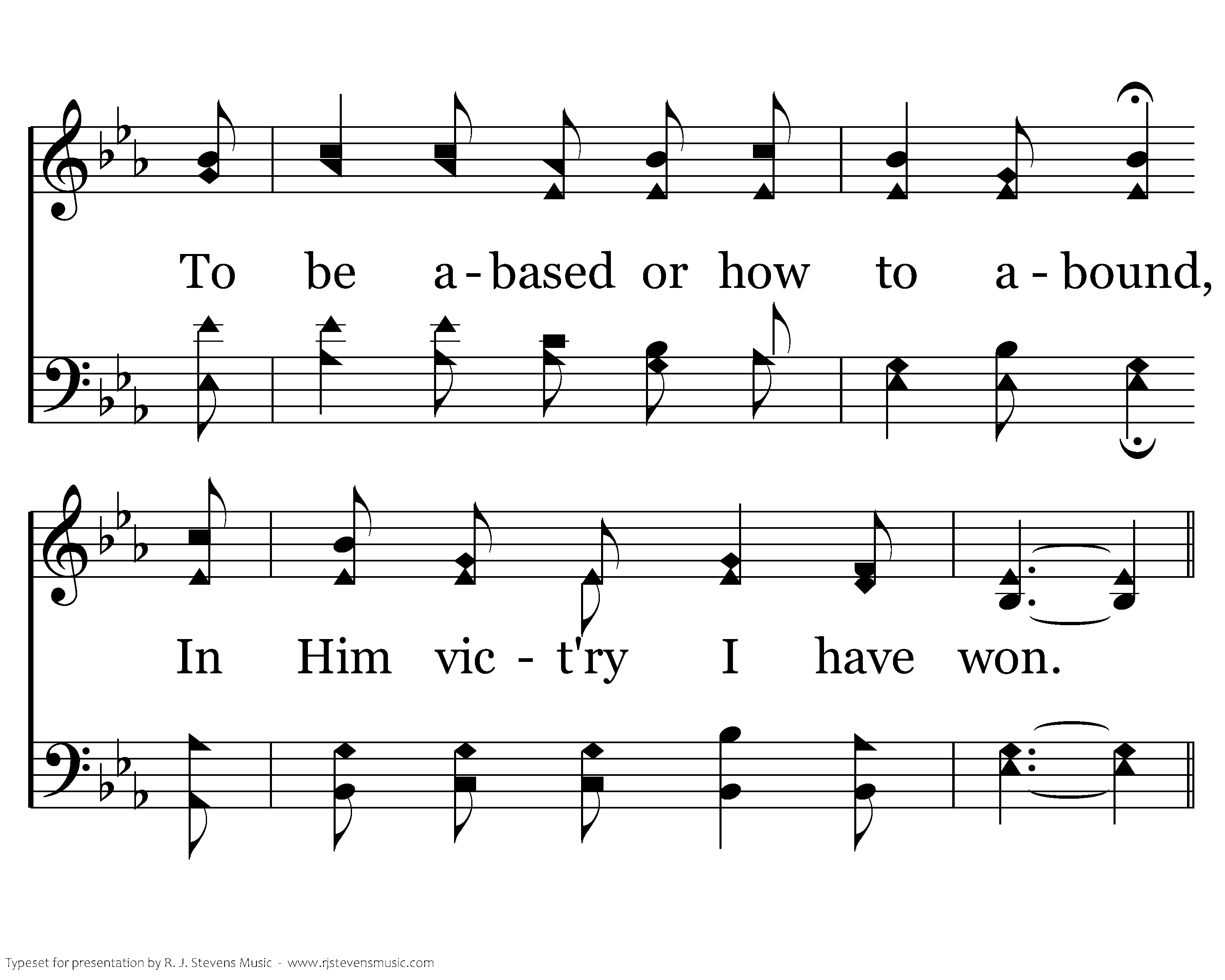 The Lord has made me a promise, "Thru Christ all things can be done." To be abased or how to abound, In Him vict'ry I have won.