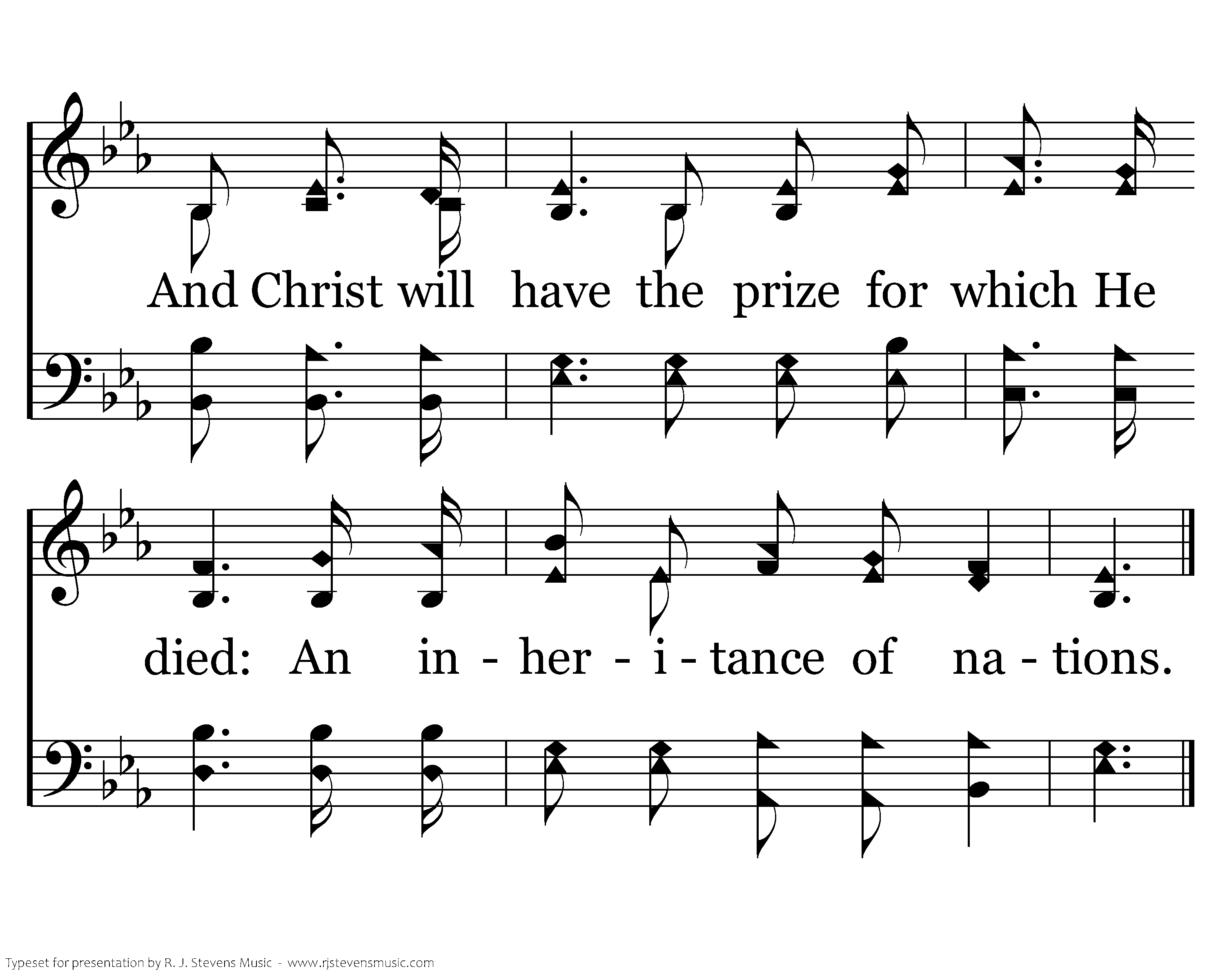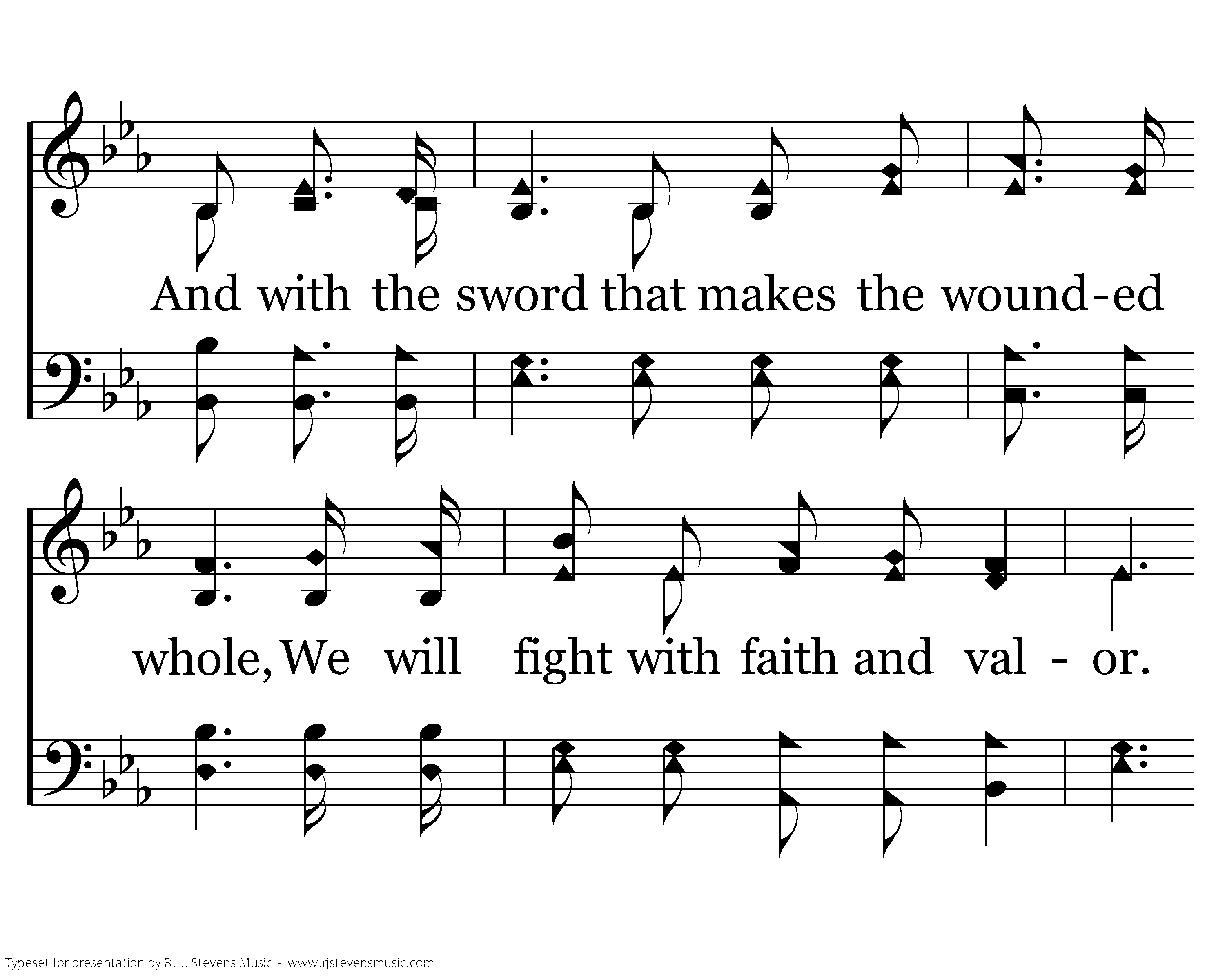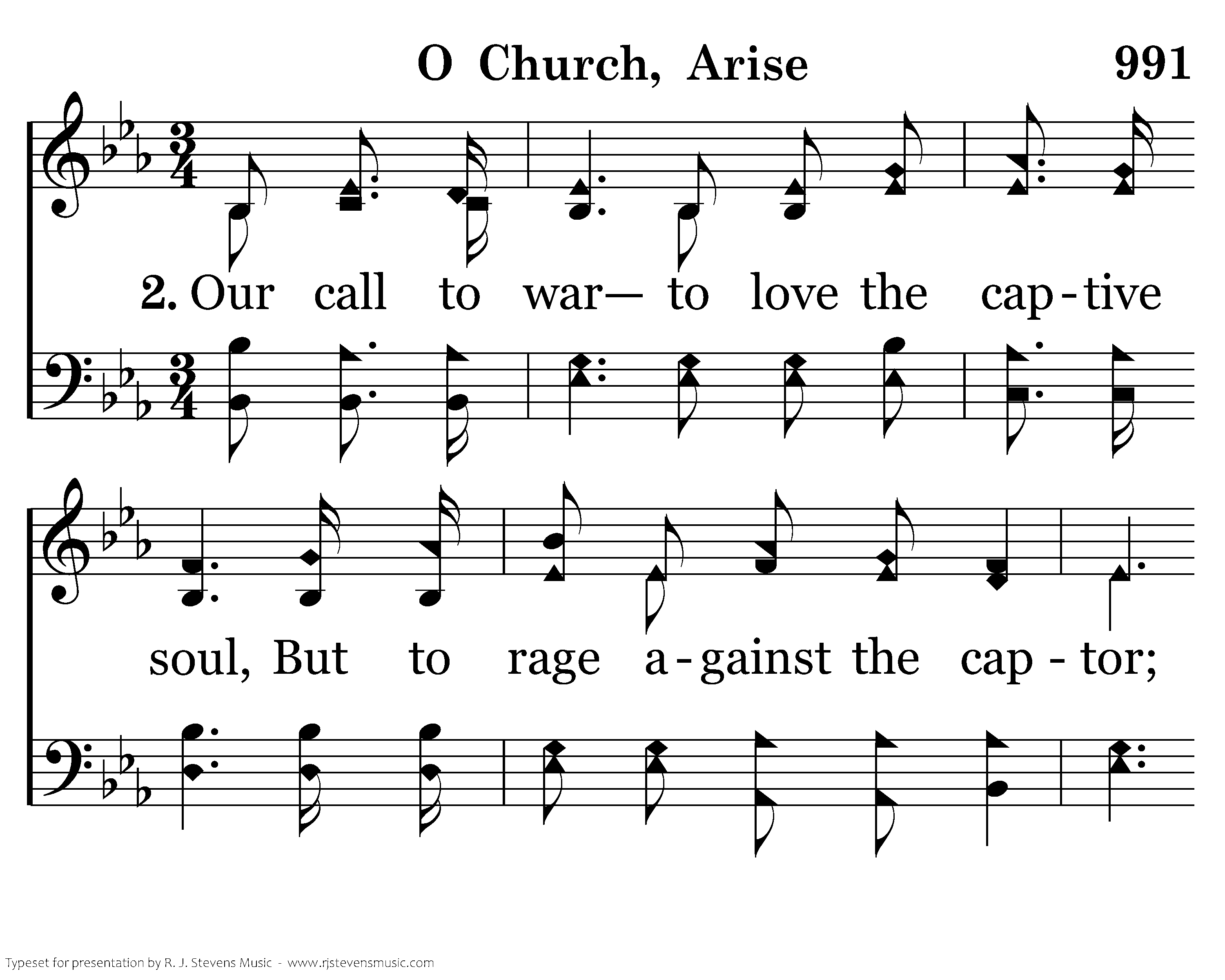 Our call to war to love the captive soul, But to rage against the captor; And with the sword that makes the wounded whole, We will fight with faith and valor. When faced with trials on ev'ry side, We know the outcome is secure, And Christ will have the prize for which He died: An inheritance of nations.