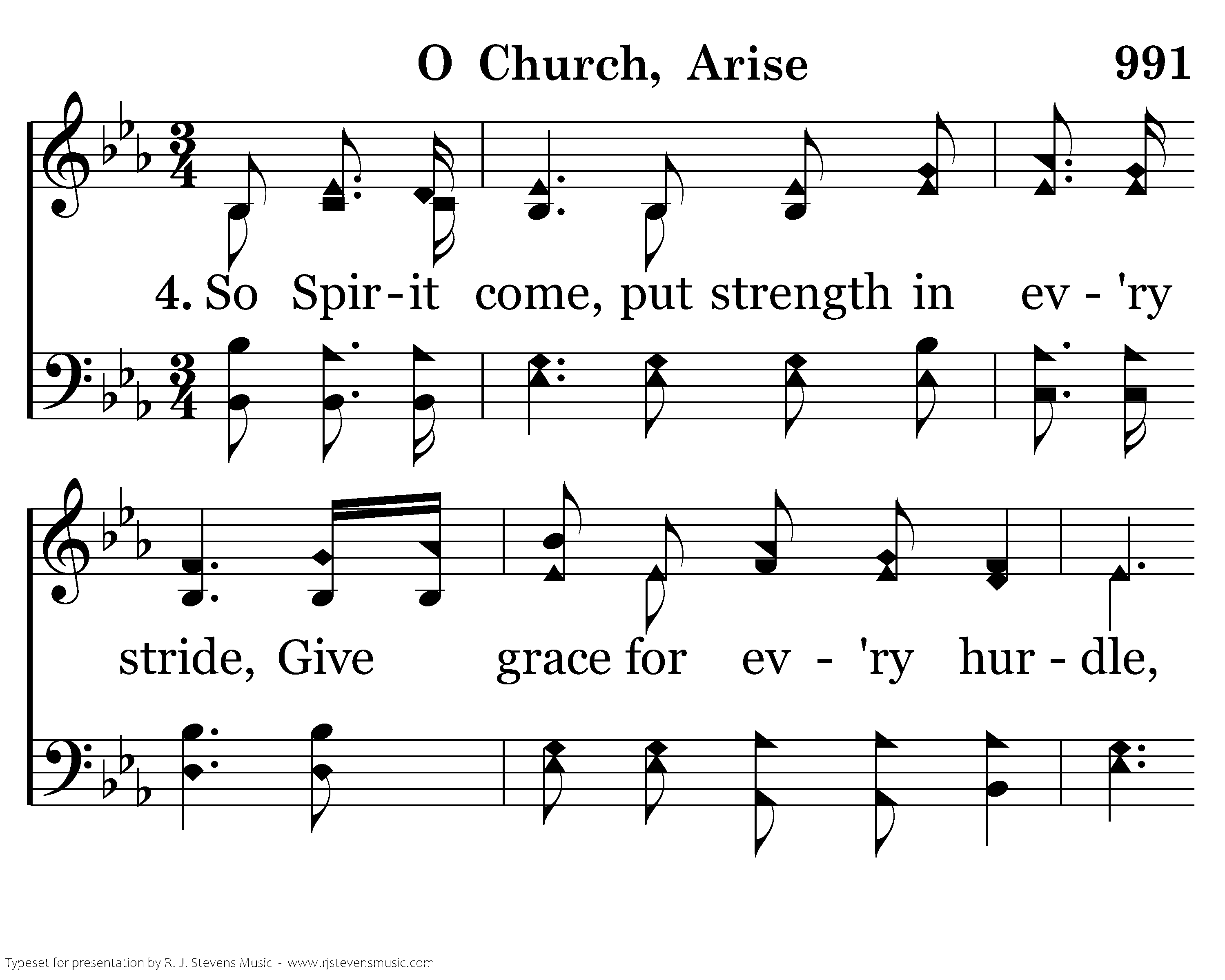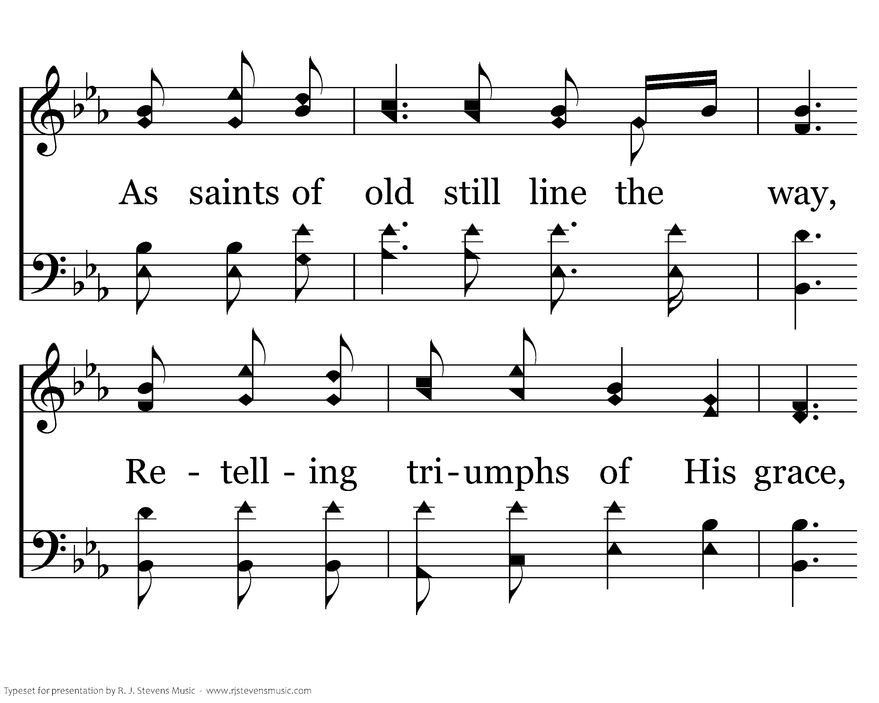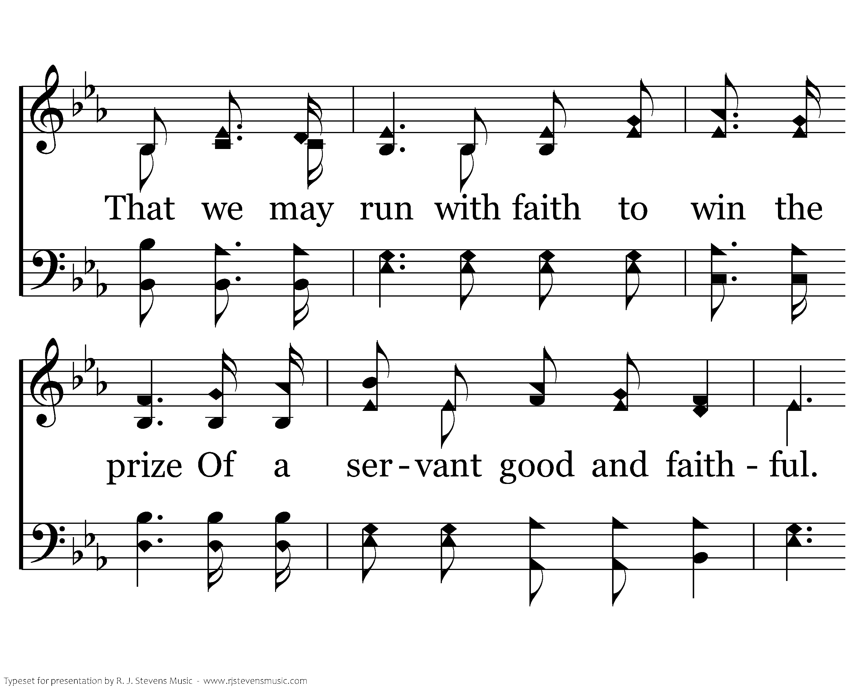 So Spirit come, put strength in ev'ry stride, Give grace for ev'ry hurdle, That we may run with faith to win the prize Of a servant good and faithful. As saints of old still line the way, Retelling triumphs of His grace, We hear their calls and hunger for the day When with Christ we stand in glory.