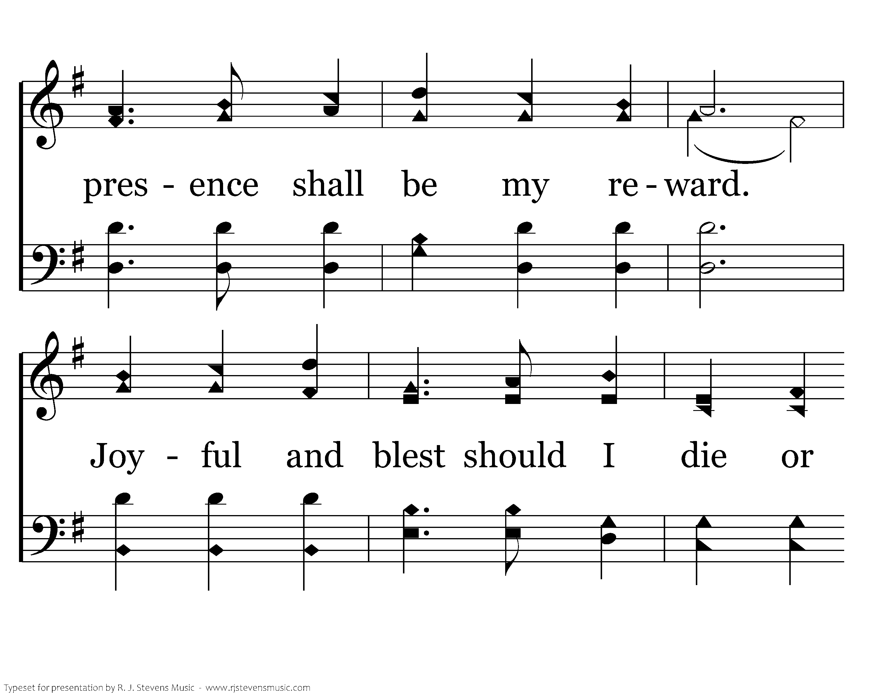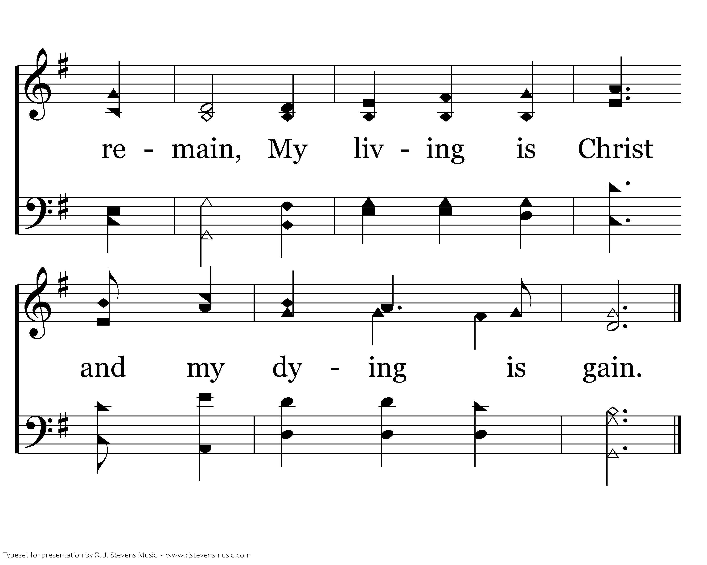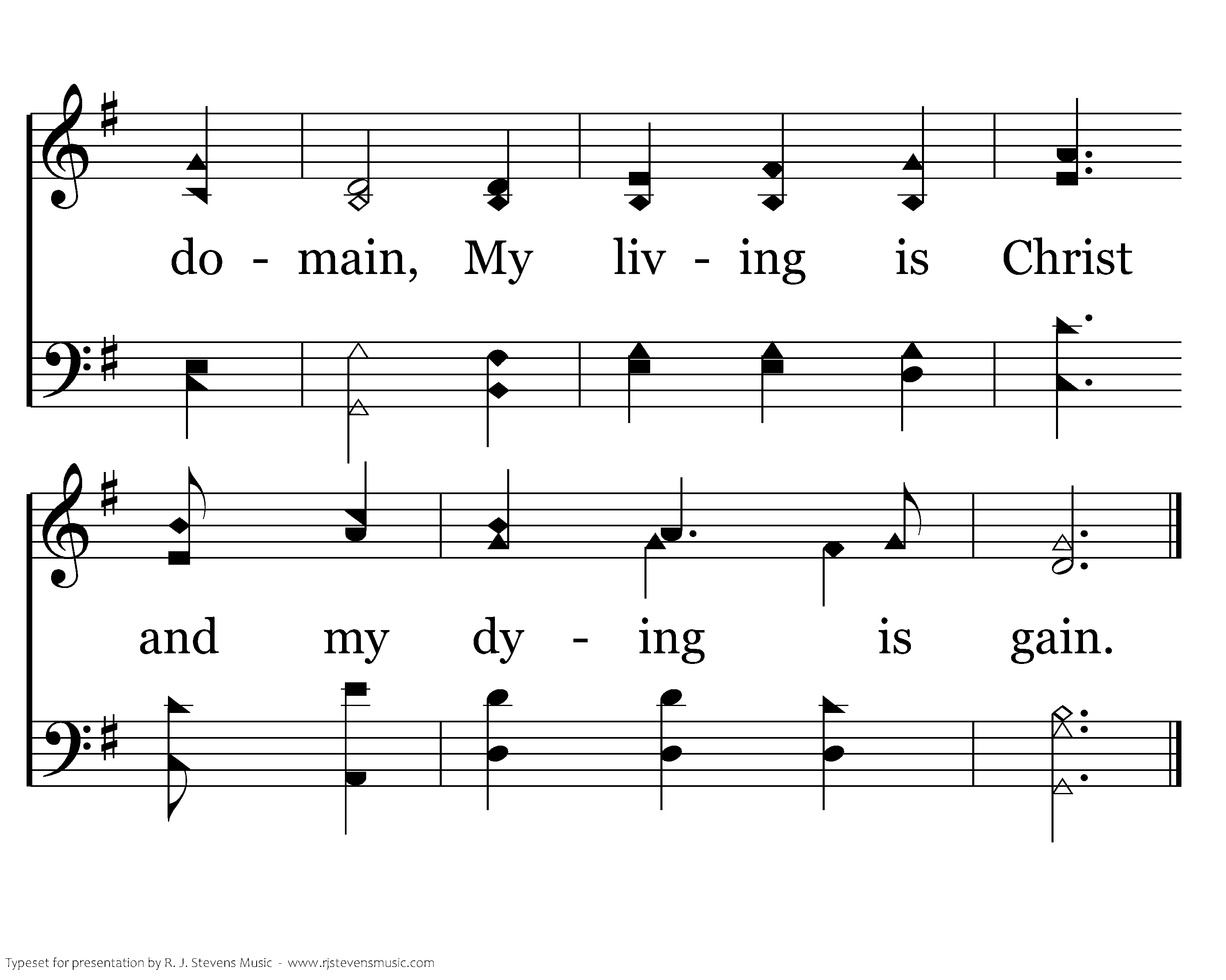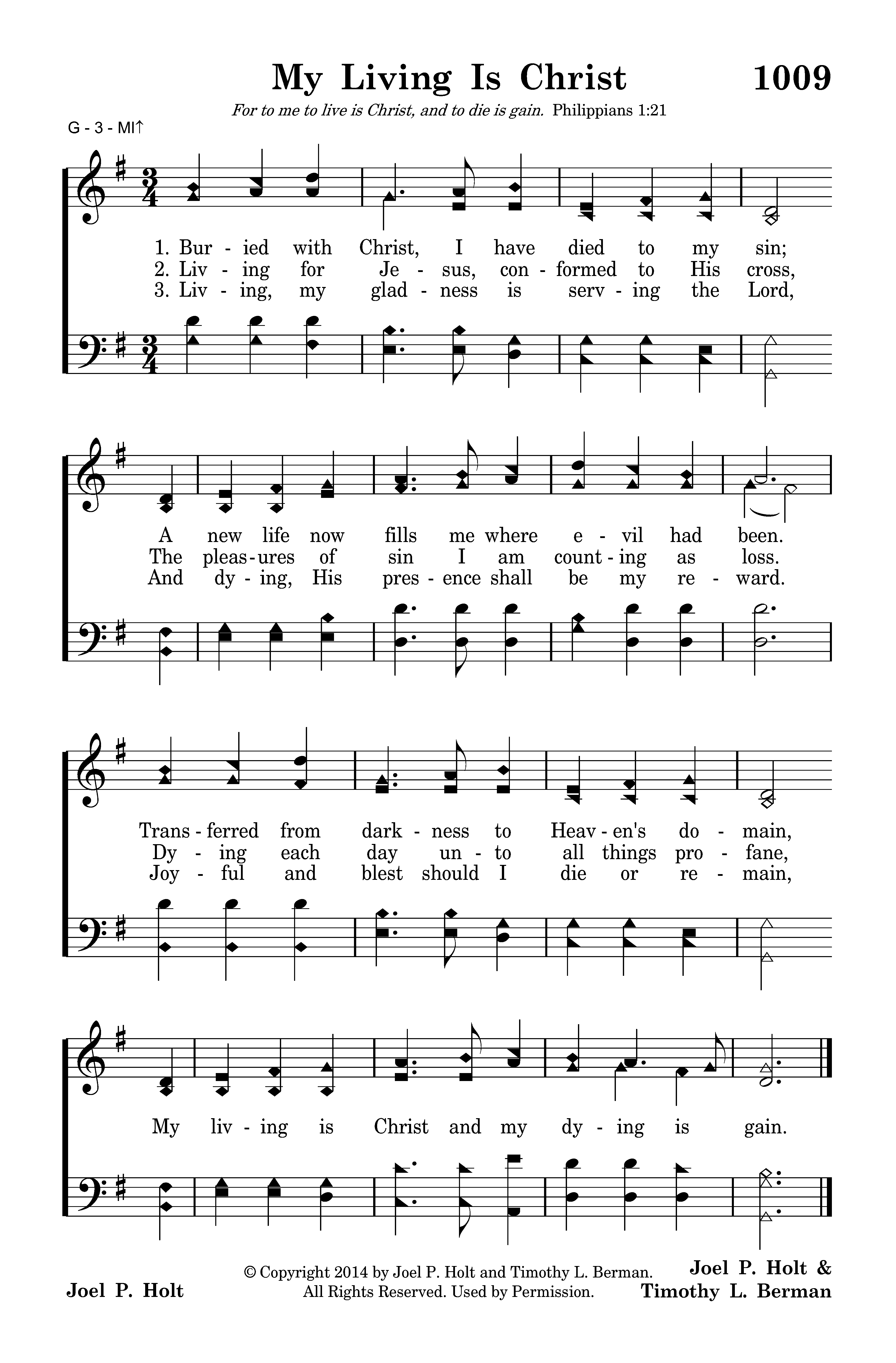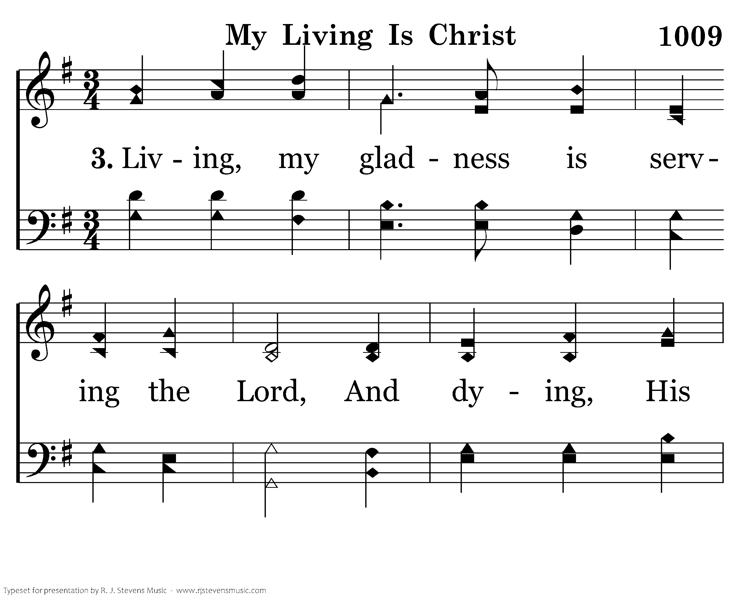 Living, my gladness is serving the Lord, And dying, His presence shall be my reward. Joyful and blest should I die or remain, My living is Christ and my dying is gain.