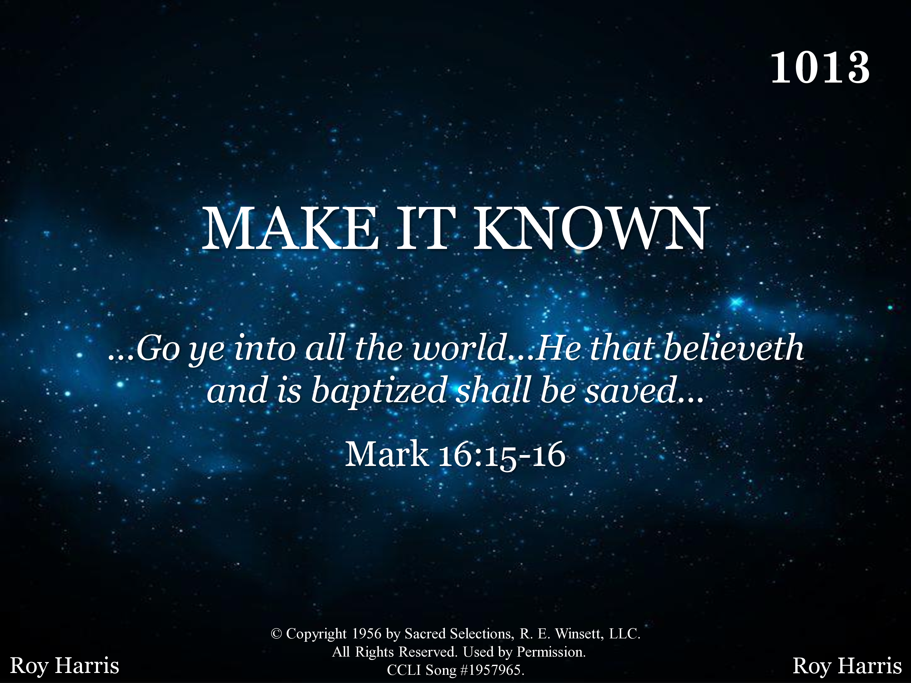 - Copyright © 1956 by Ellis Crum in Sacred Selection for the Church. (Admin. by R. E. Winsett Sacred Selections LLC.) All Rights Reserved. Used by Permission.