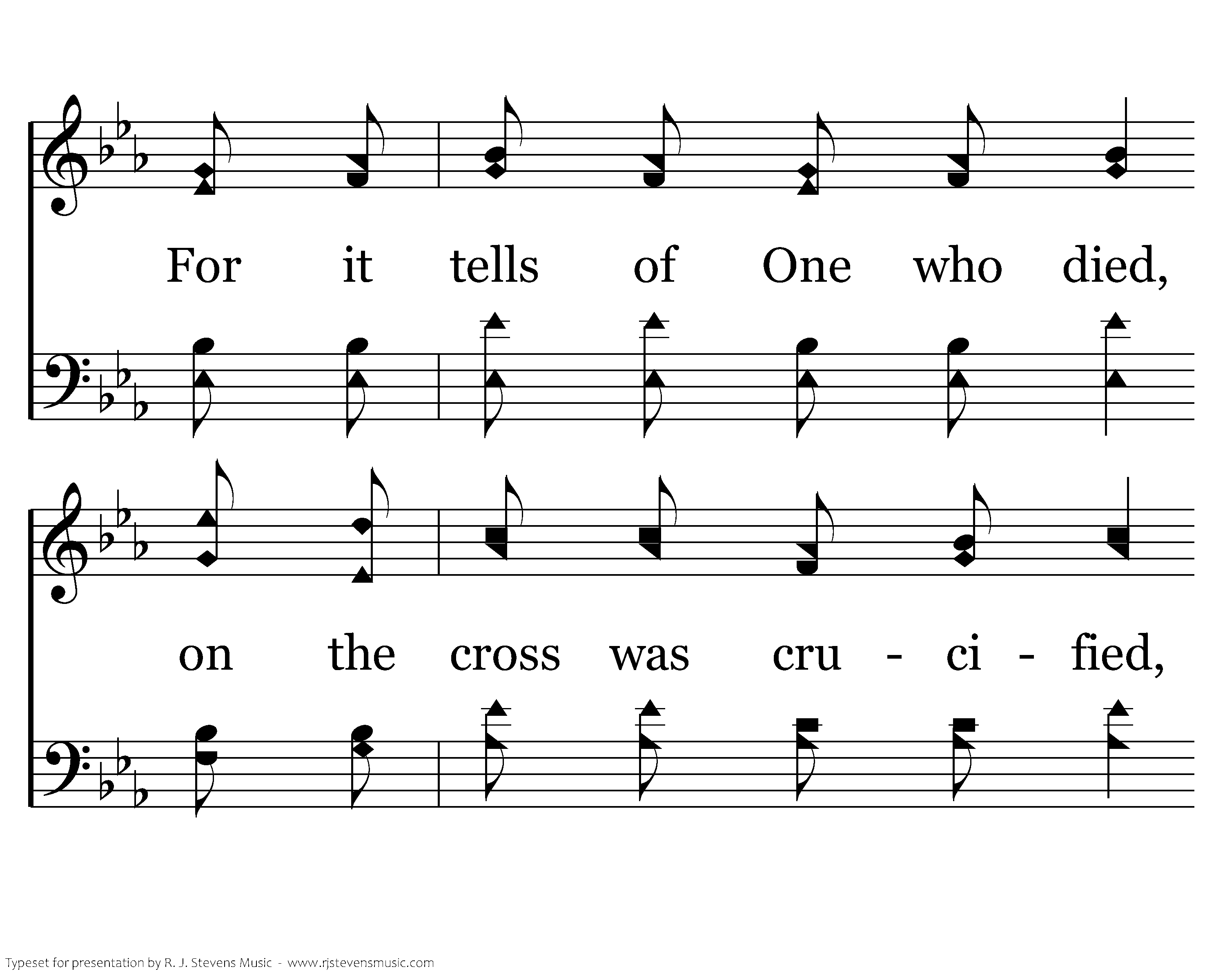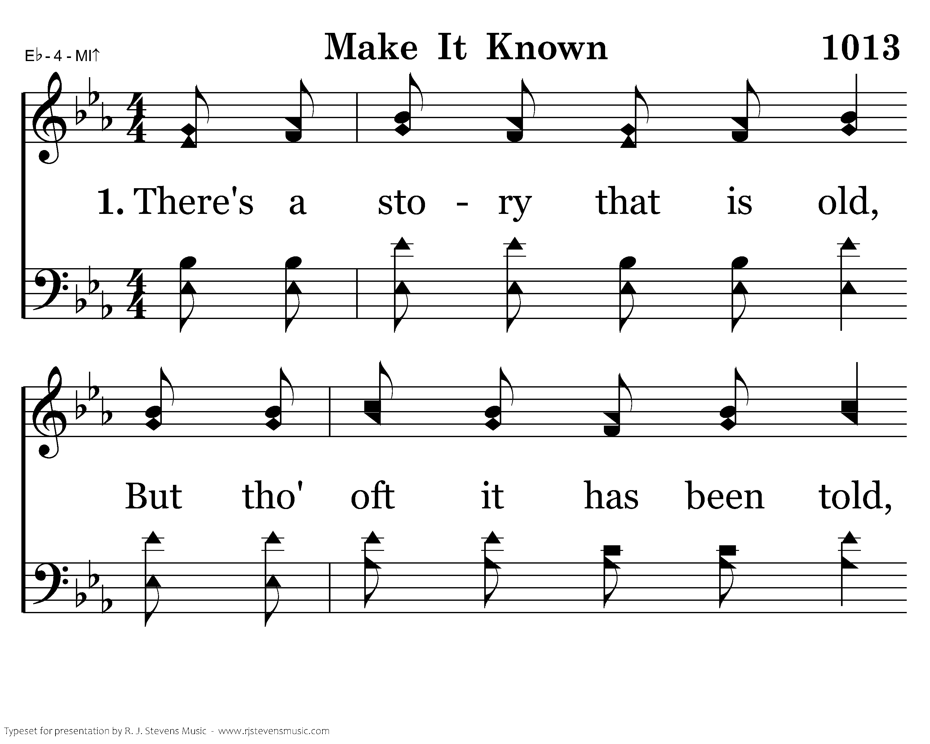 There's a story that is old, But tho' oft it has been told, It is one which makes the heart of man rejoice, For it tells of One who died, on the cross was crucified, Make it known that all may heed the Master's voice.