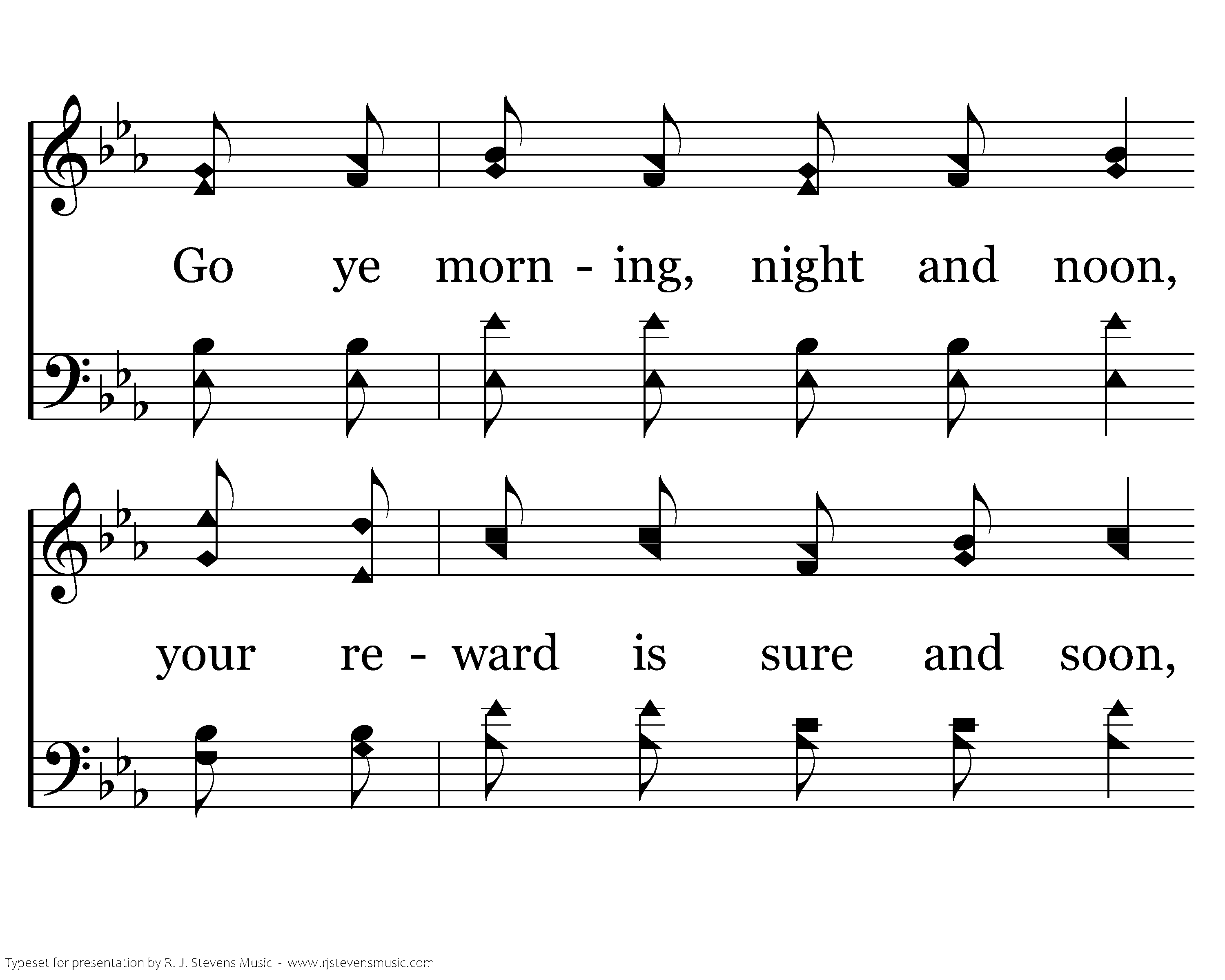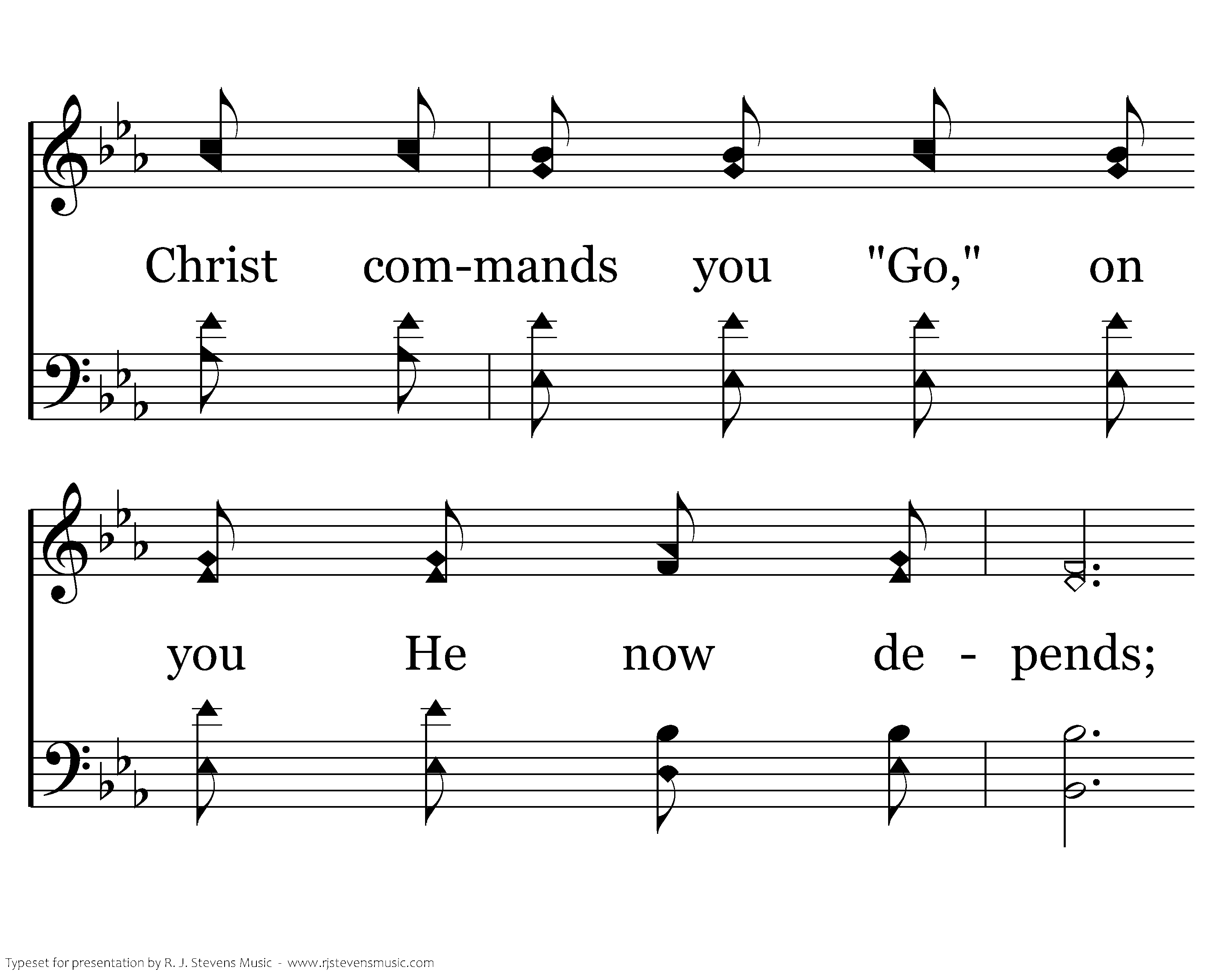 Do not linger, do not shirk, For the Master we must work, Christ commands you "Go," on you He now depends; Go ye morning, night and noon, your reward is sure and soon, Preach the Gospel of the Lord where'er He sends.
