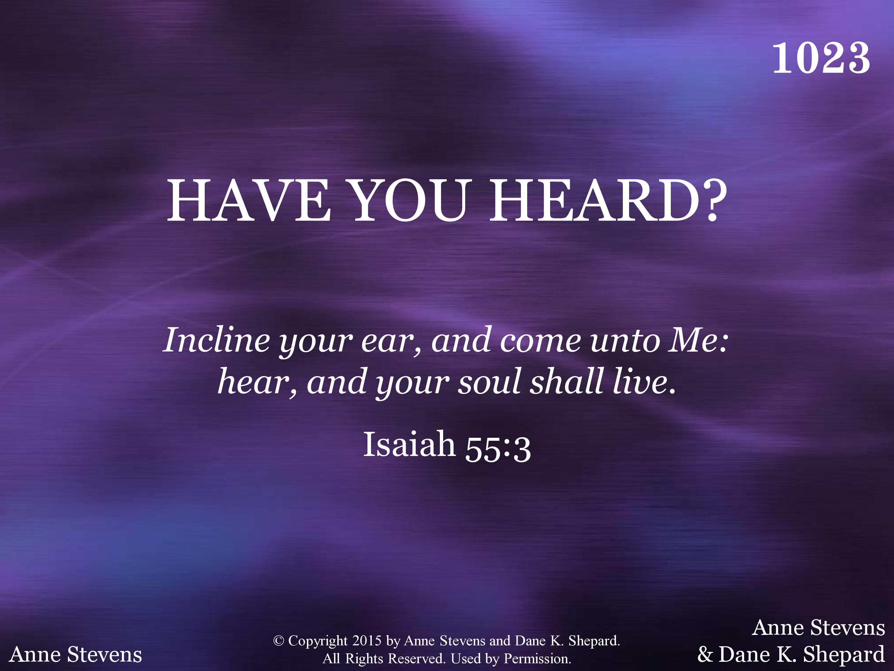 - Copyright © 2015 by Anne Stevens & Dane K. Shepard. All Rights Reserved. Used by Permission.
