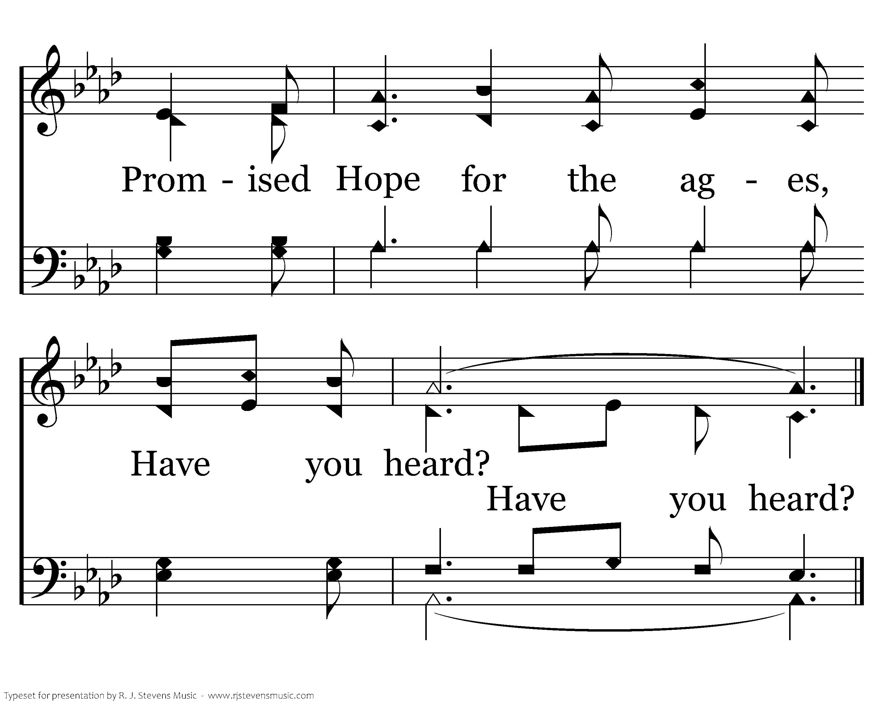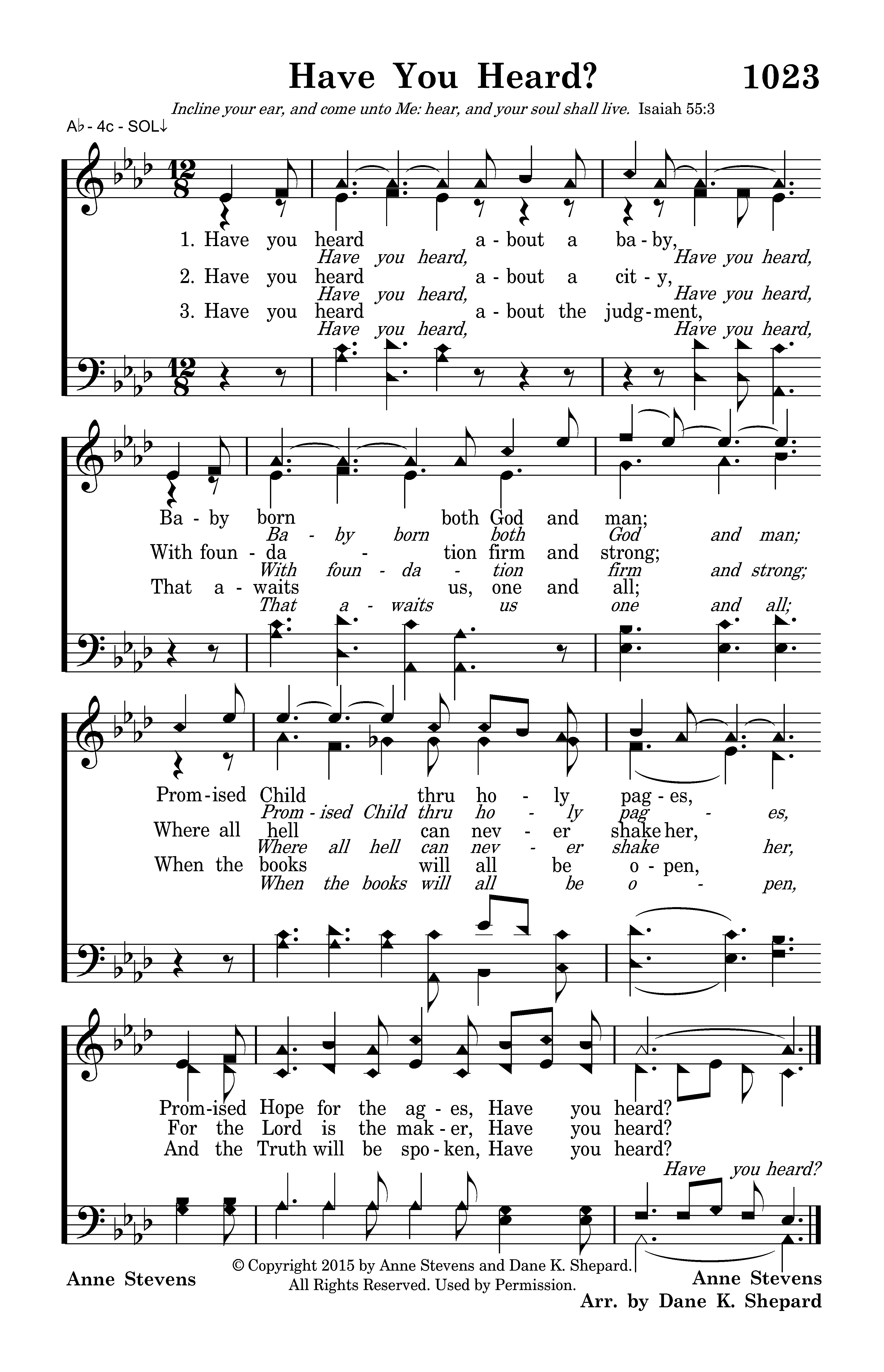 Have you heard about a baby, Baby born both God and man; Promised Child thru holy pages, Promised Hope for the ages, Have you heard?