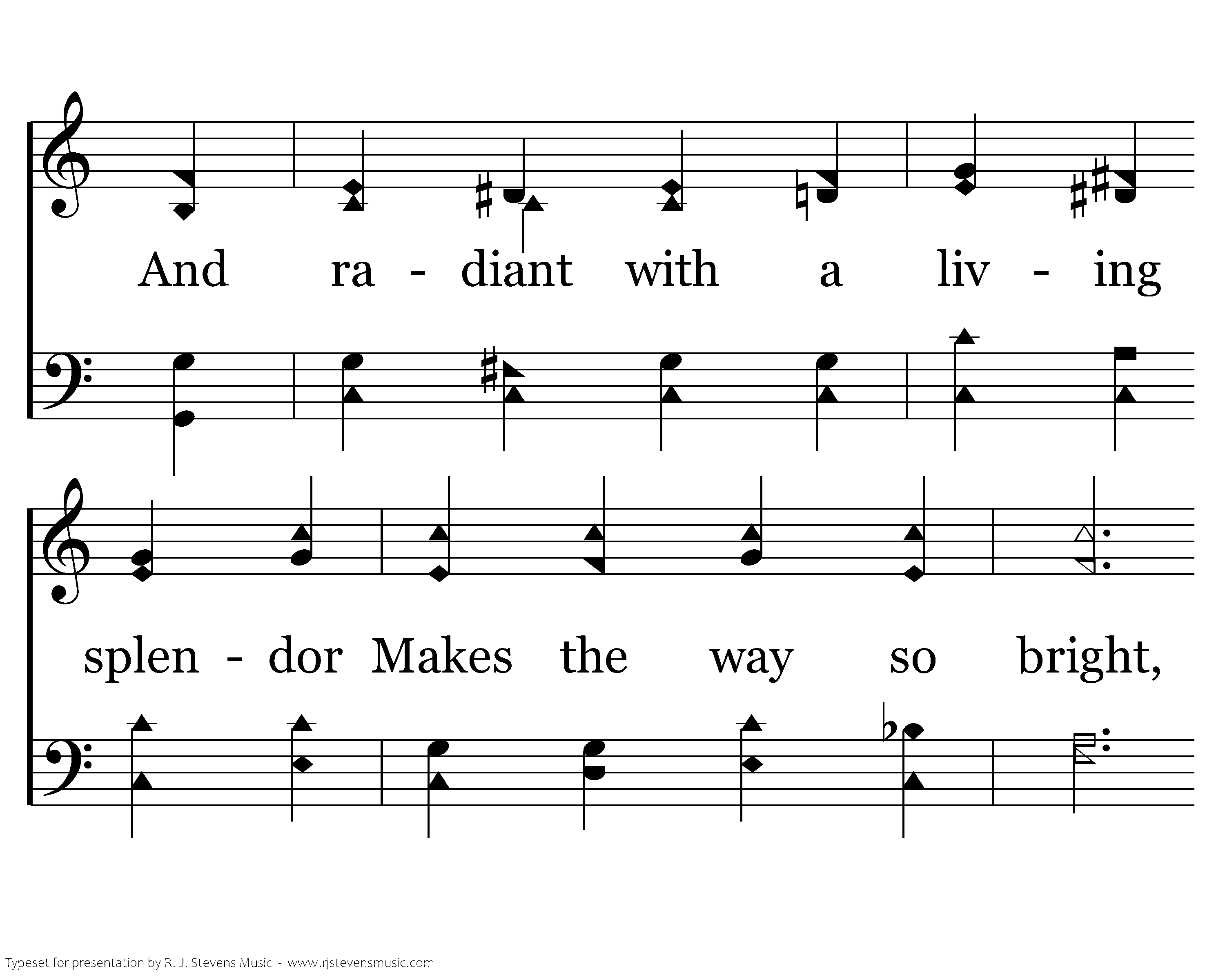 Like a lamp unto your feet, A light from heaven glows, From the land which needs no sun or moon Nor ever darkness knows, And radiant with a living splendor Makes the way so bright, You can walk, safely walk, On the upward path of right.