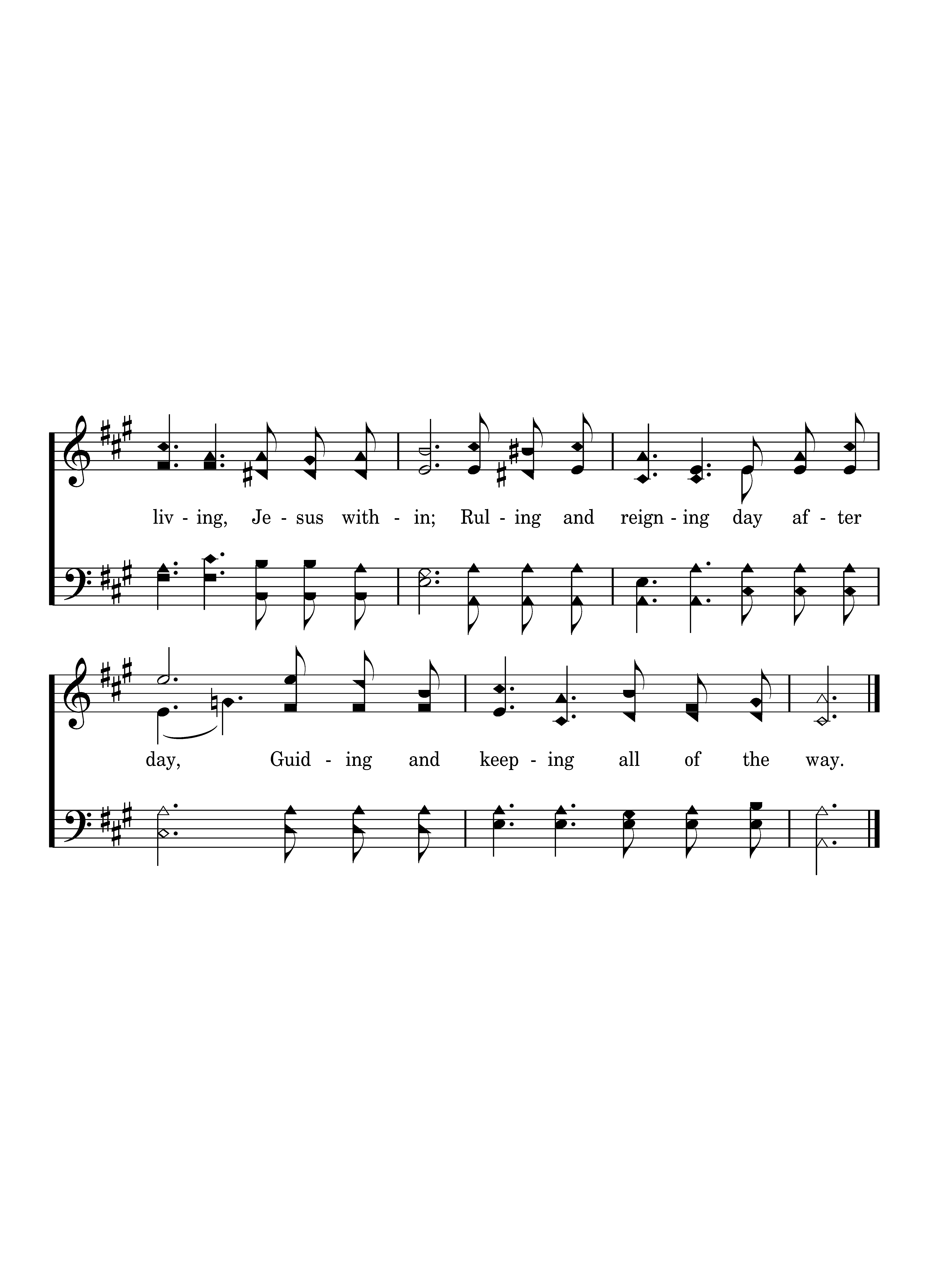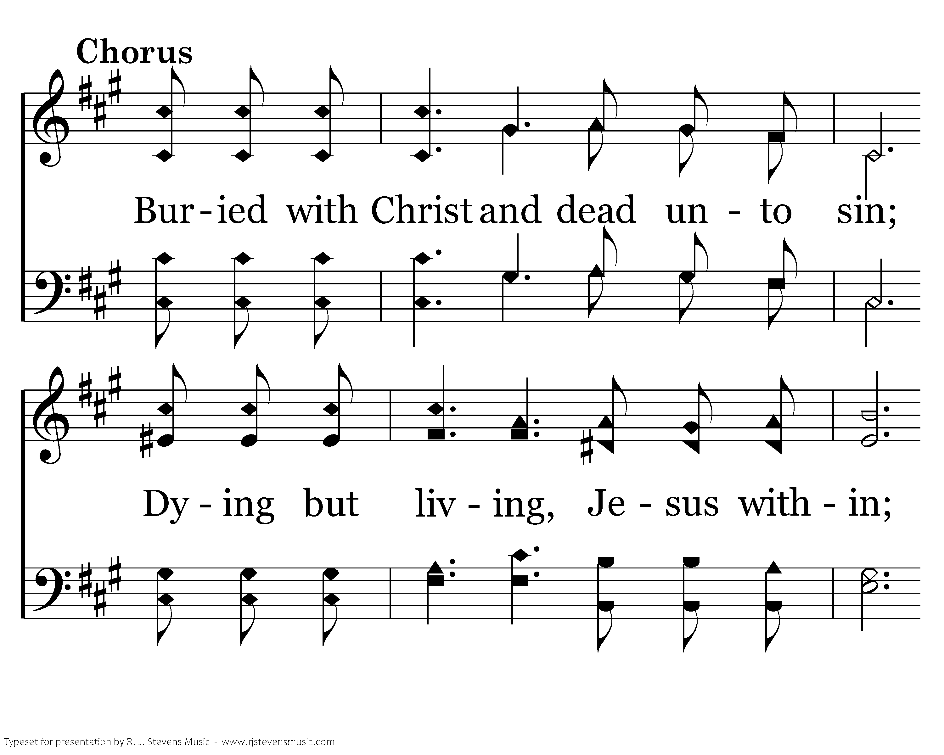 Buried with Christ and dead unto sin; Dying but living, Jesus within; ruling and reigning day after day, Guiding and keeping all of the way.