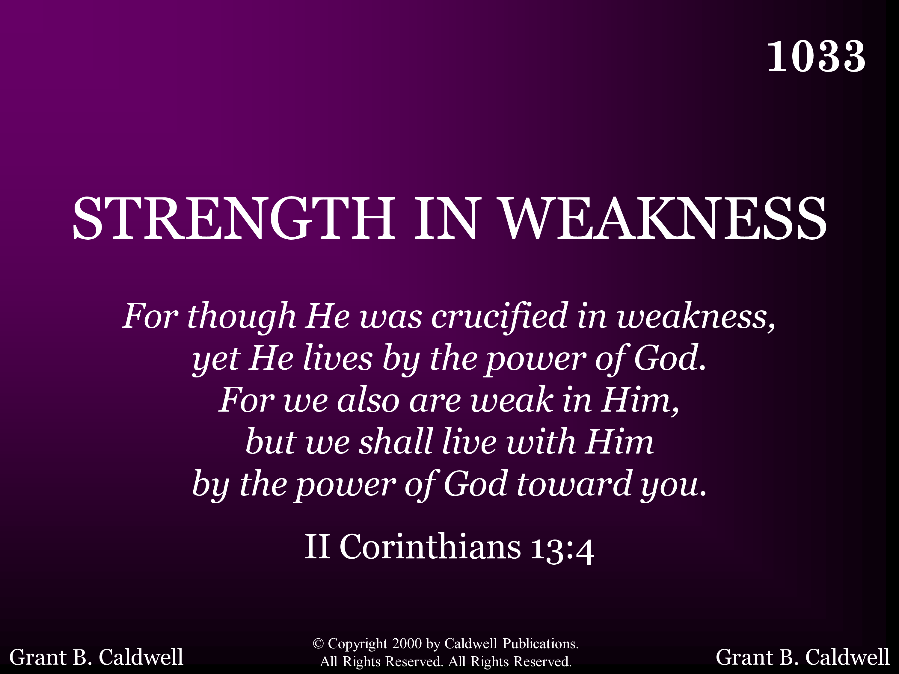 - Copyright © 2000 by Caldwell Publications. All Rights Reserved. Used by Permission.