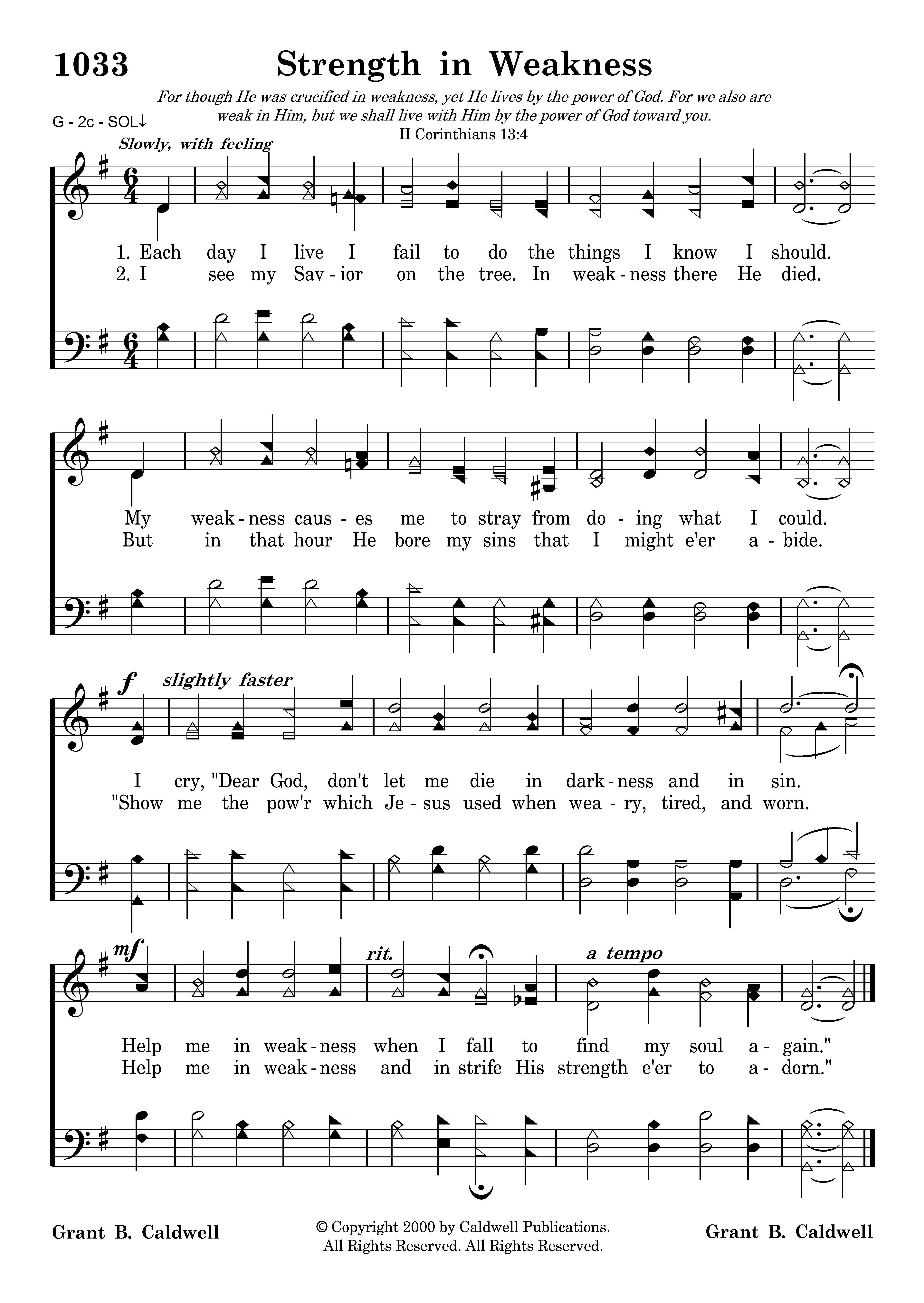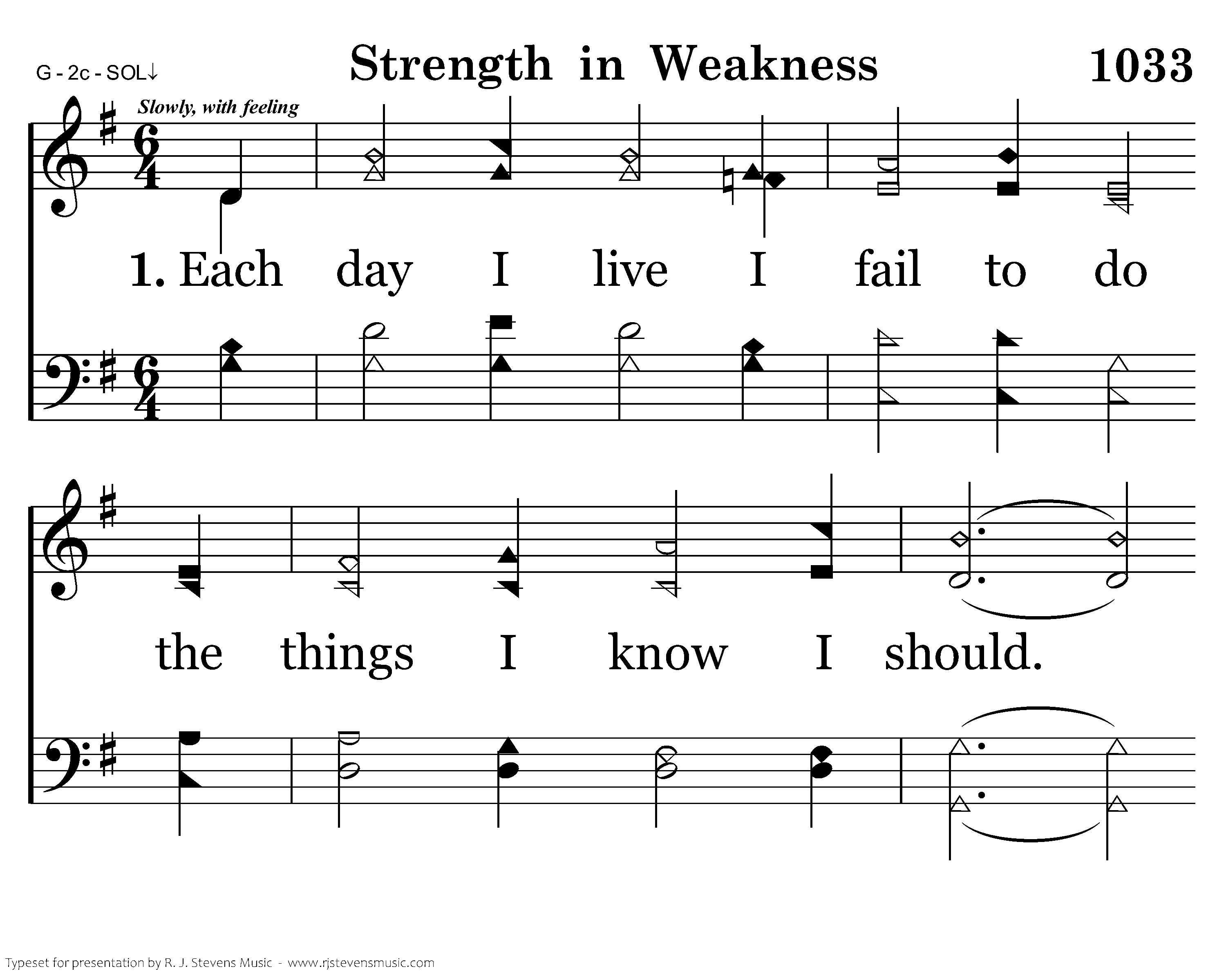 Each day I live I fail to do the things I know I should. My weakness causes me to stray from doing what I could. I cry, "Dear God, don't let me die in darkness and in sin. Help me in weakness when I fall to find my soul again."
