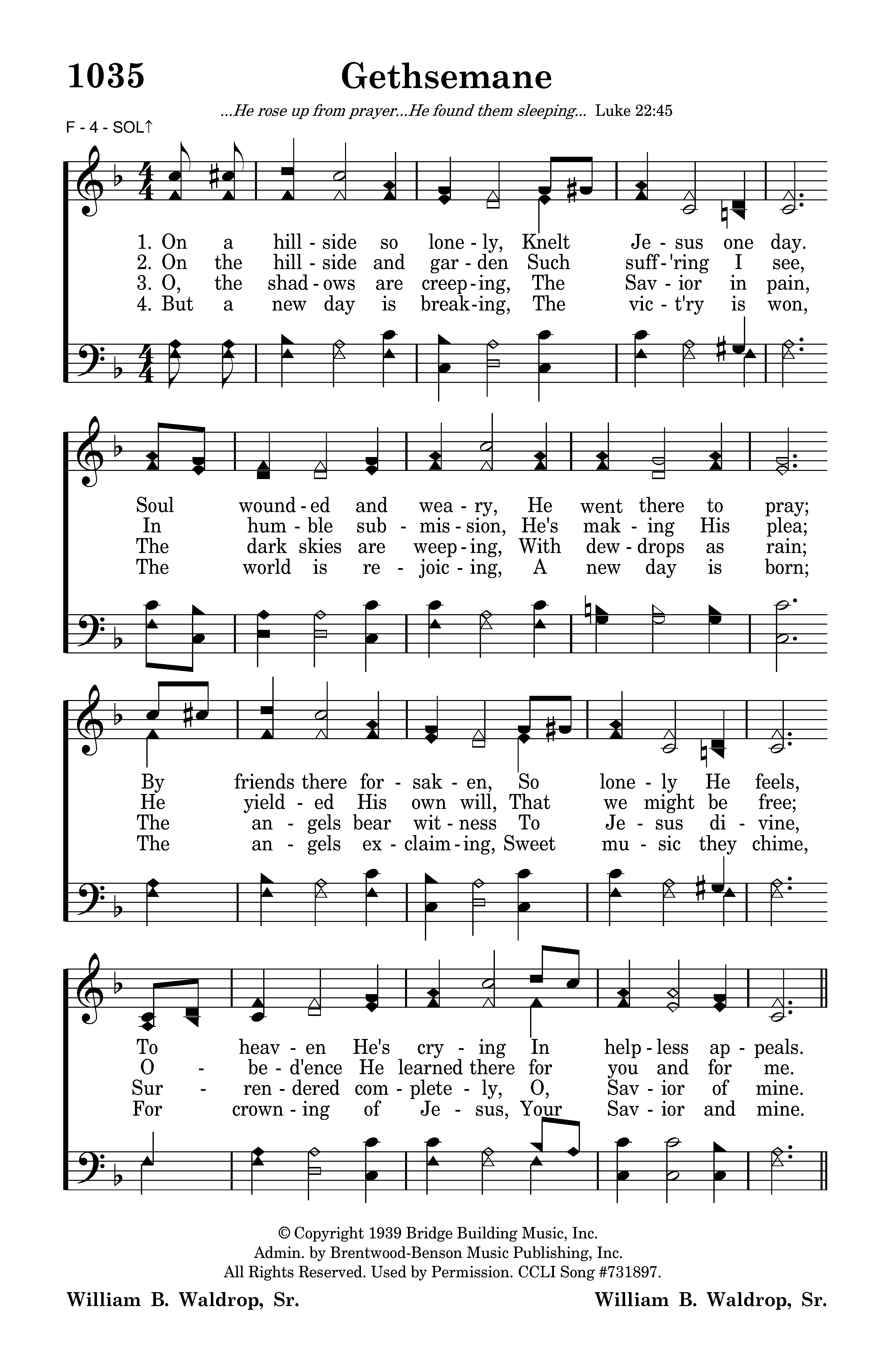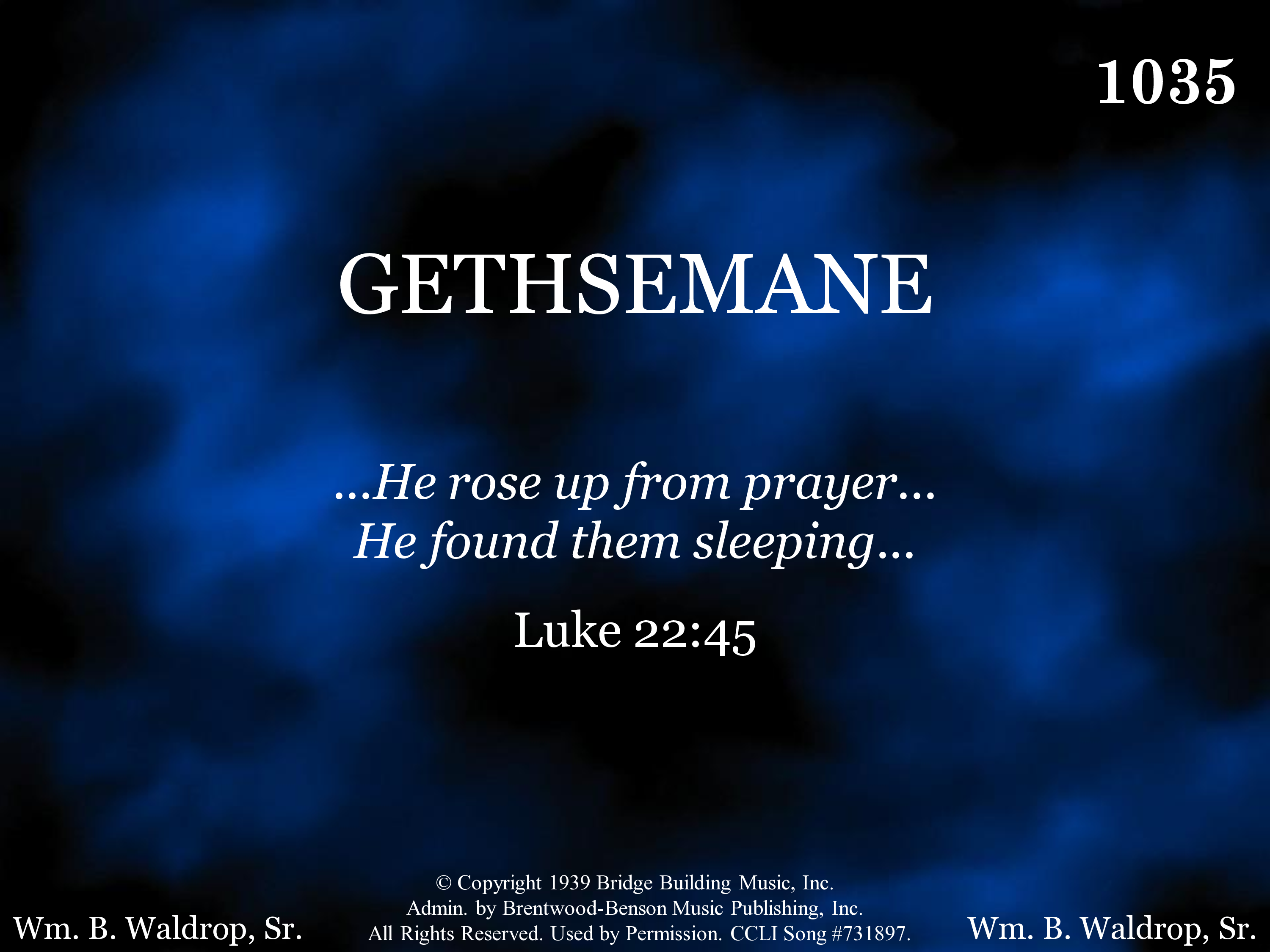 - Copyright © 1939 by Bridge Building Music. (Admin. by Brentwood-Benson Music Publishing Co., Inc.) All Rights Reserved. Used by Permission.