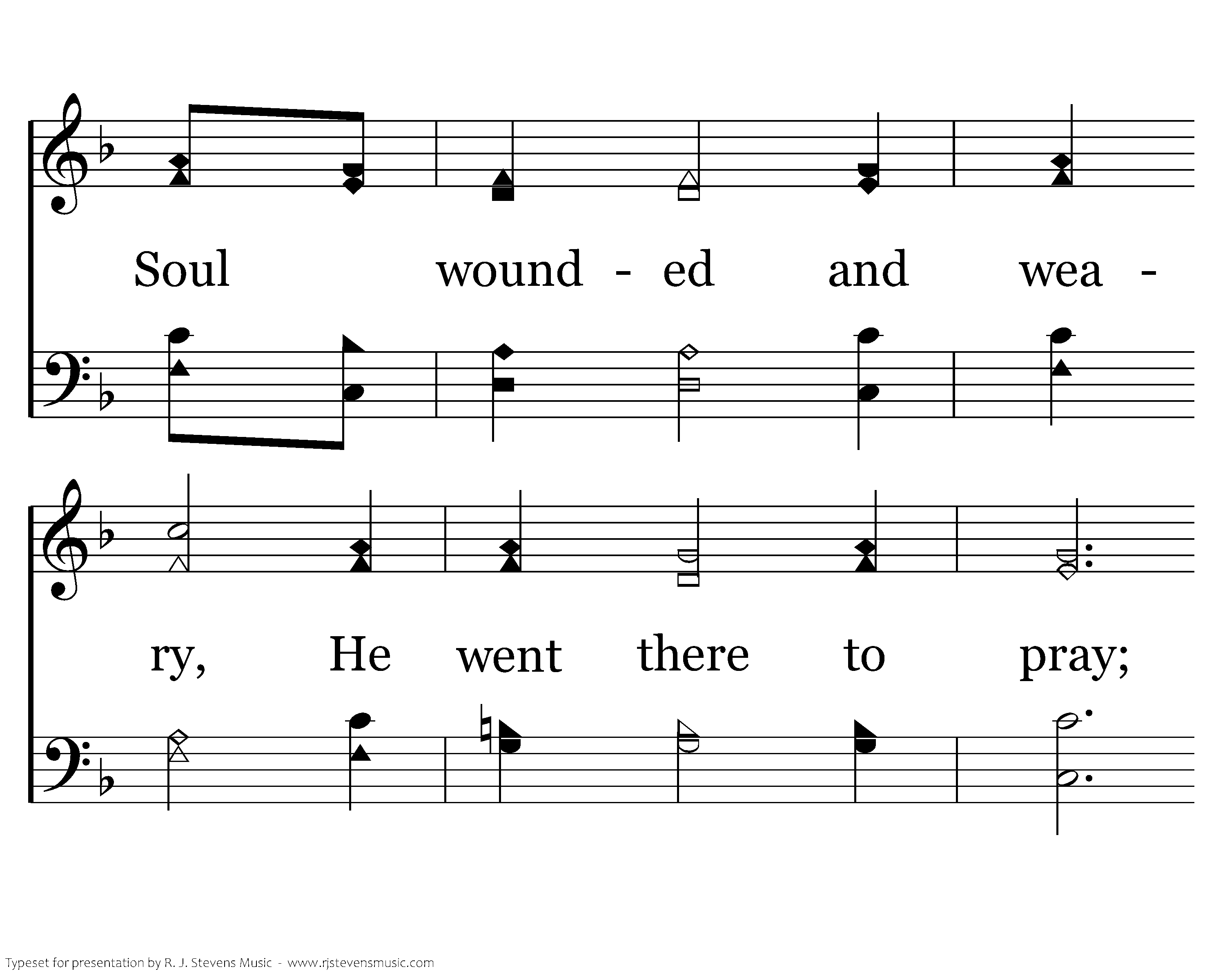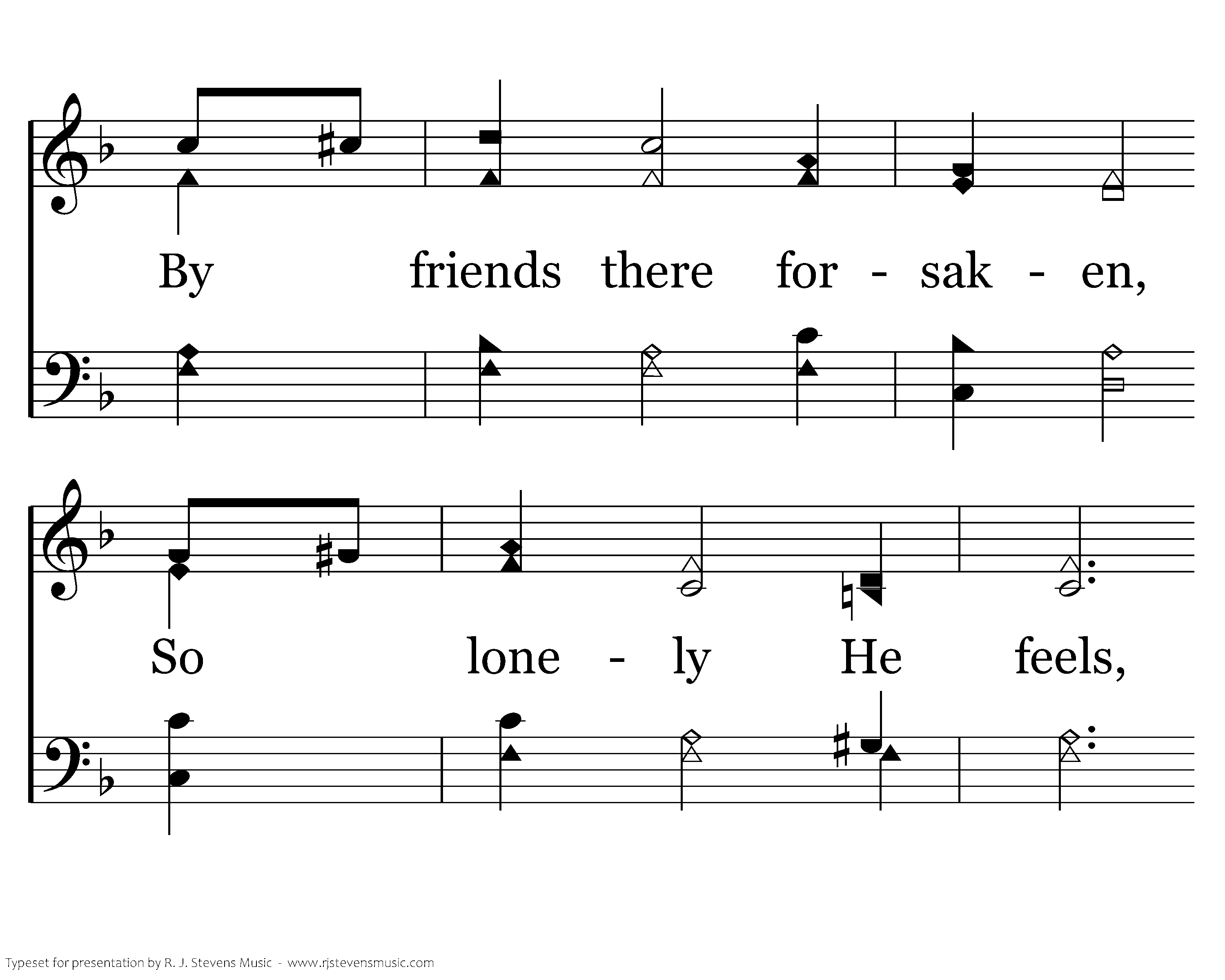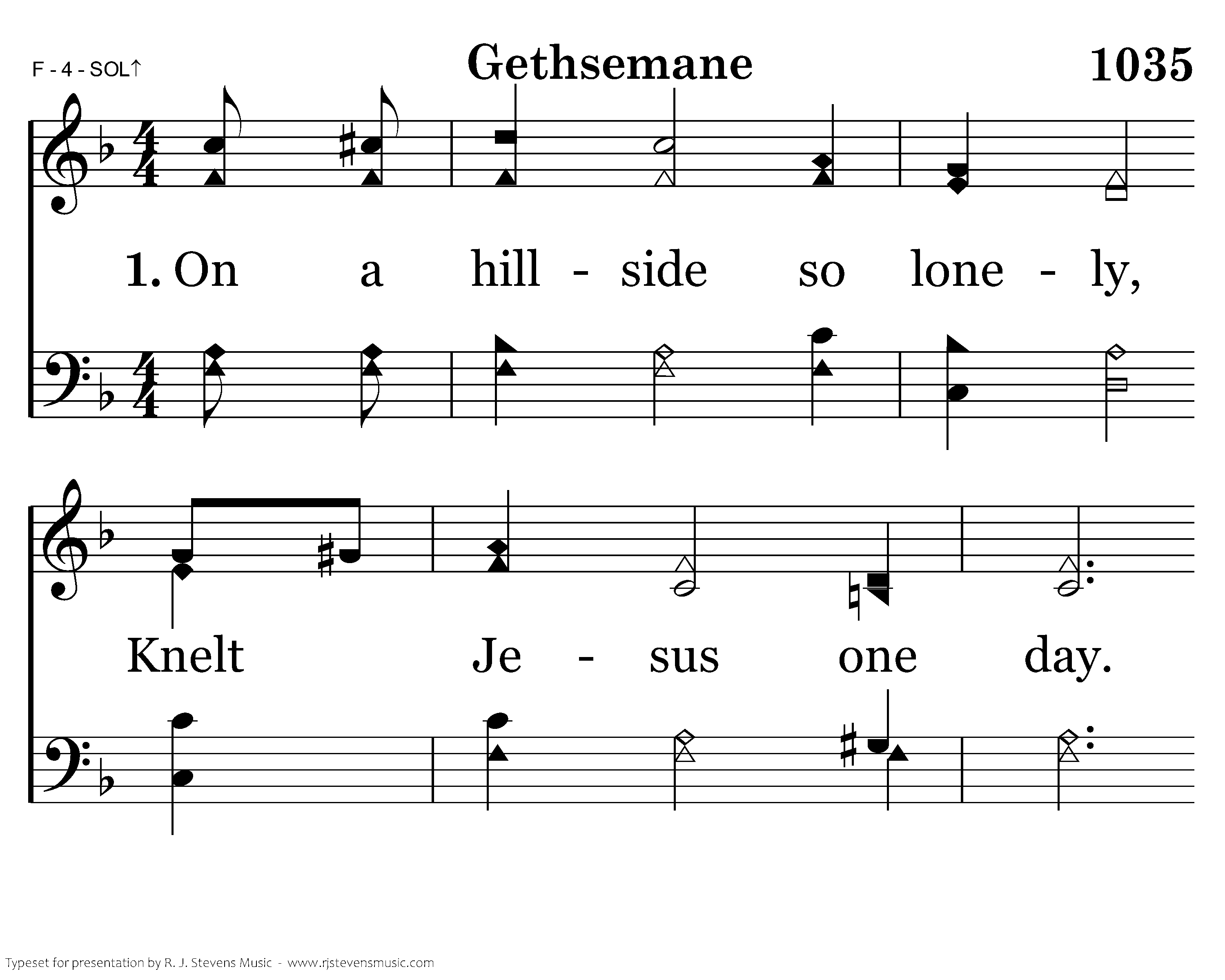 On a hillside so lonely, Knelt Jesus one day. Soul wounded and weary, He went there to pray; By friends there forsaken, So lonely He feels, To heaven He's crying In helpless appeals.
