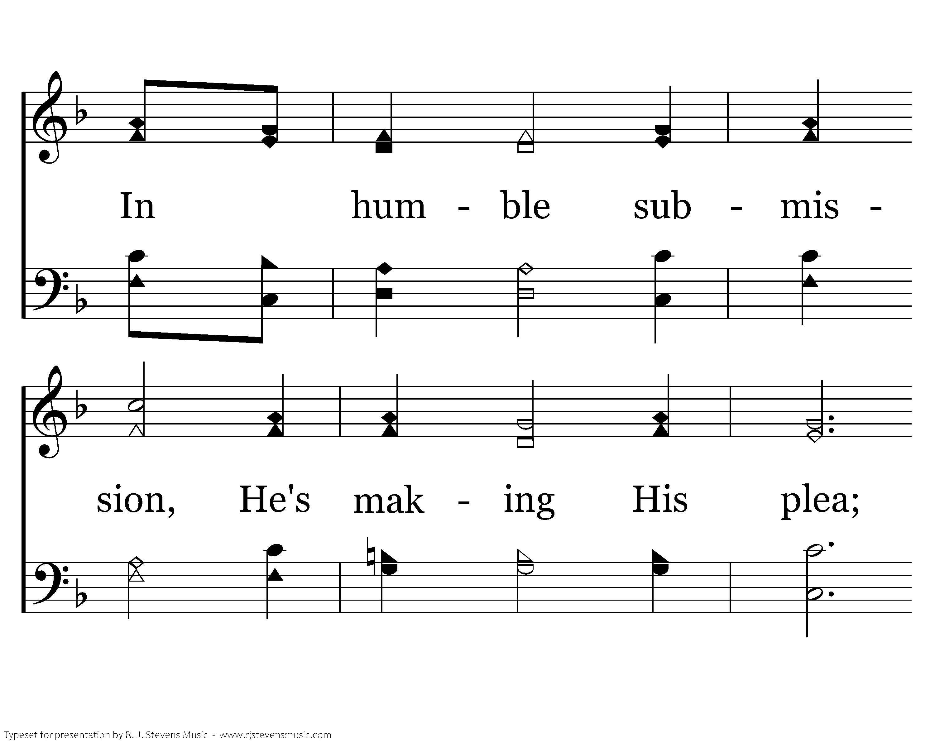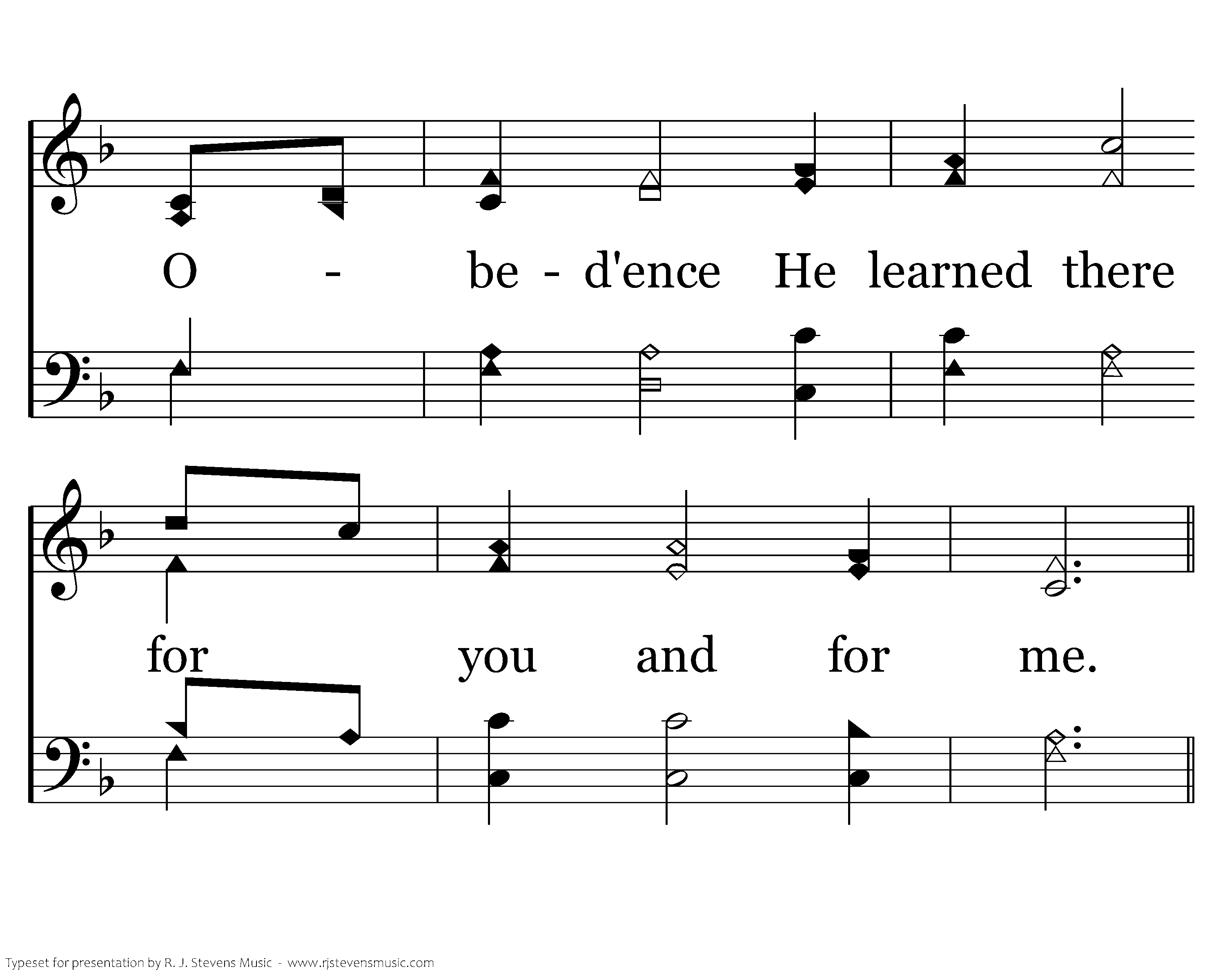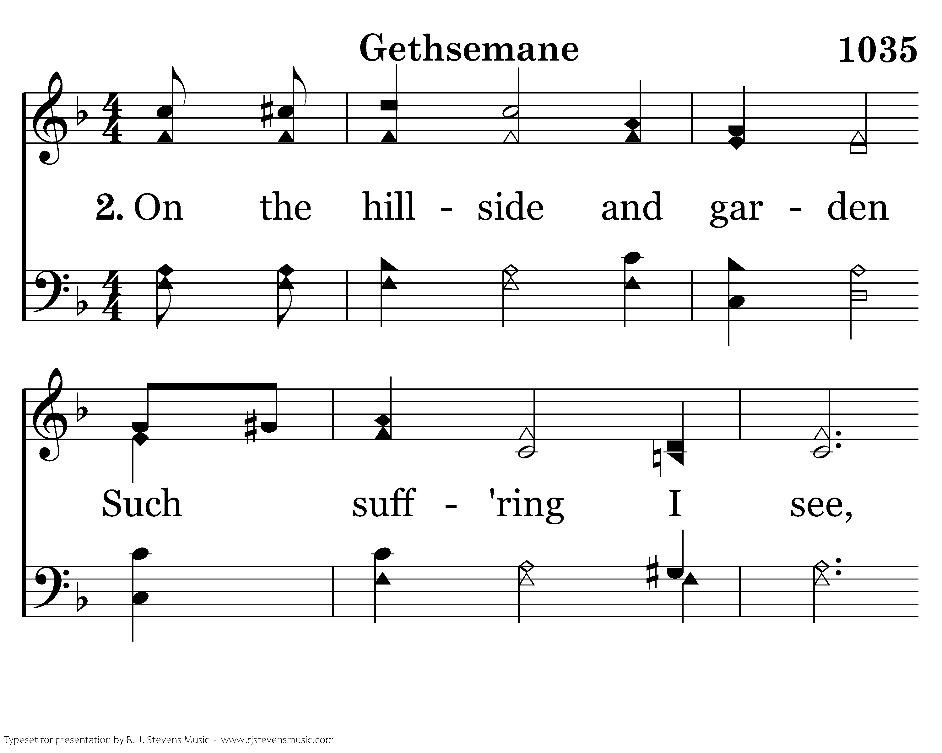 On the hillside and garden Such suff'ring I see, In humble submission, He's making His plea; He yielded His own will, That we might be free; Obed'ence He learned there for you and for me.