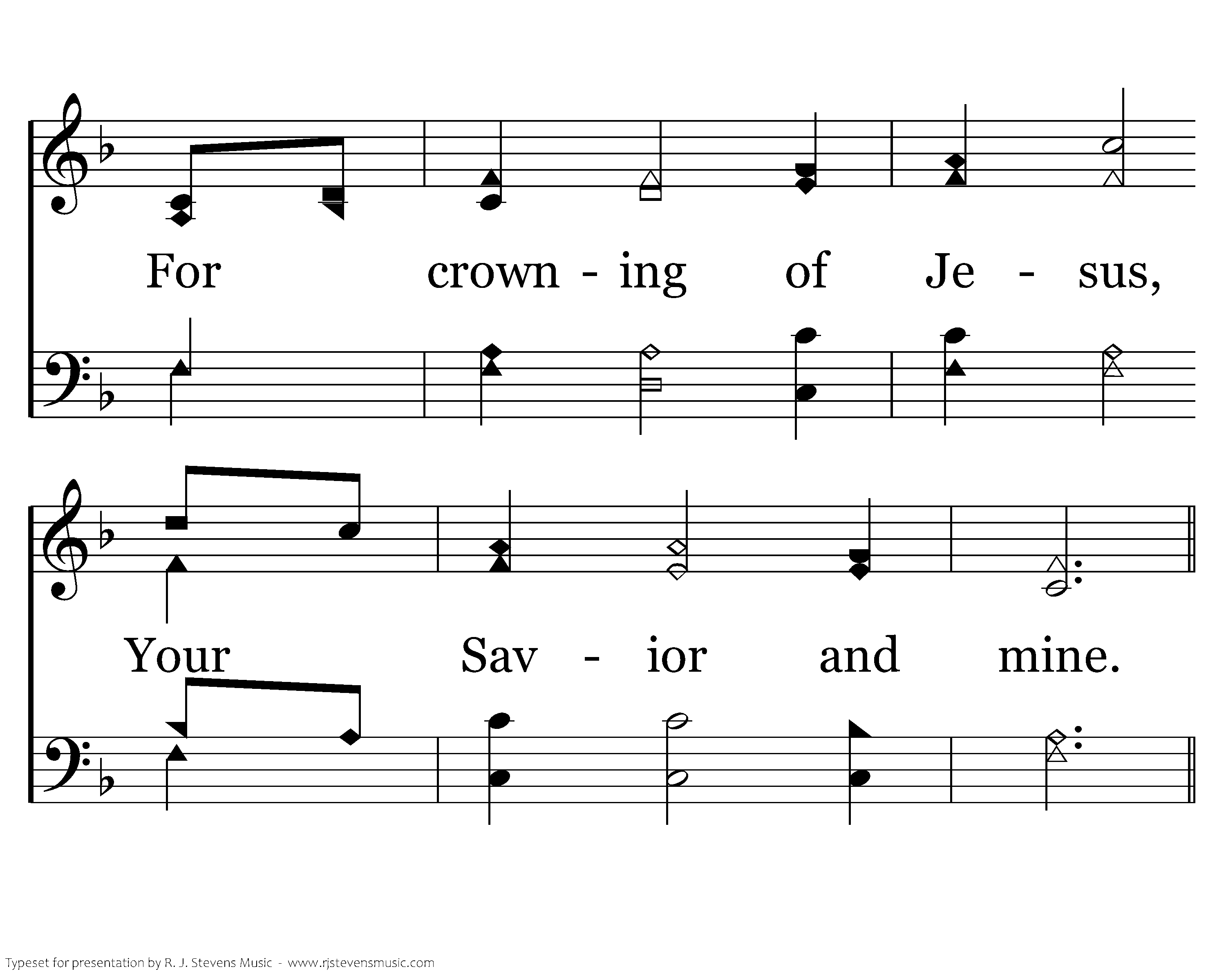 But a new day is breaking, The vict'ry is won, The world is rejoicing, A new day is born; The angels exclaiming, Sweet music they chime, For crowning of Jesus, Your Savior and mine.