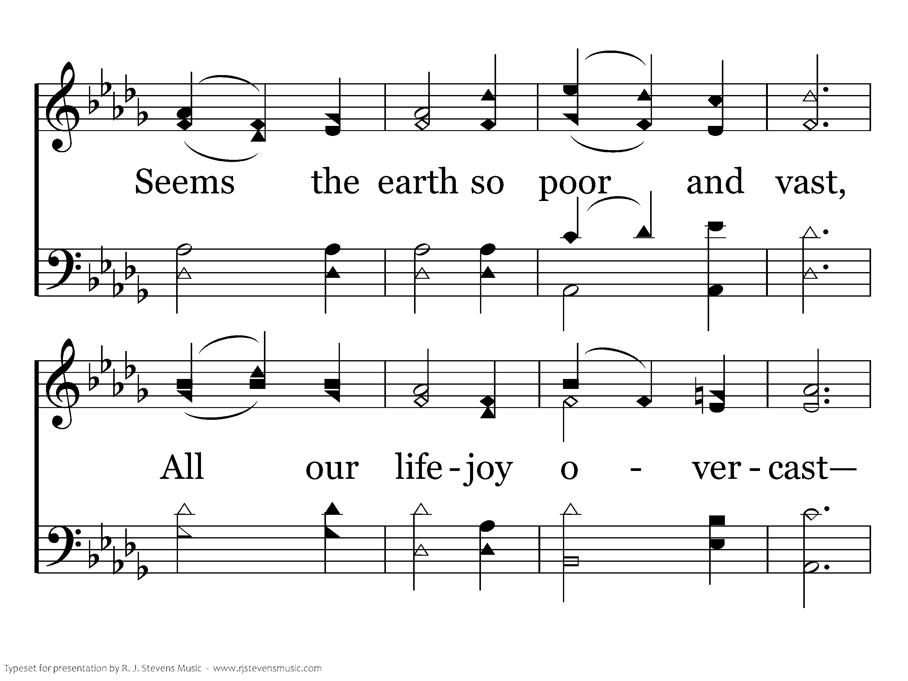 When the weary ones we love Enter on their rest above, Seems the earth so poor and vast, All our lifejoy overcast Hush! be ev'ry murmur dumb: It is only "Till He come."
