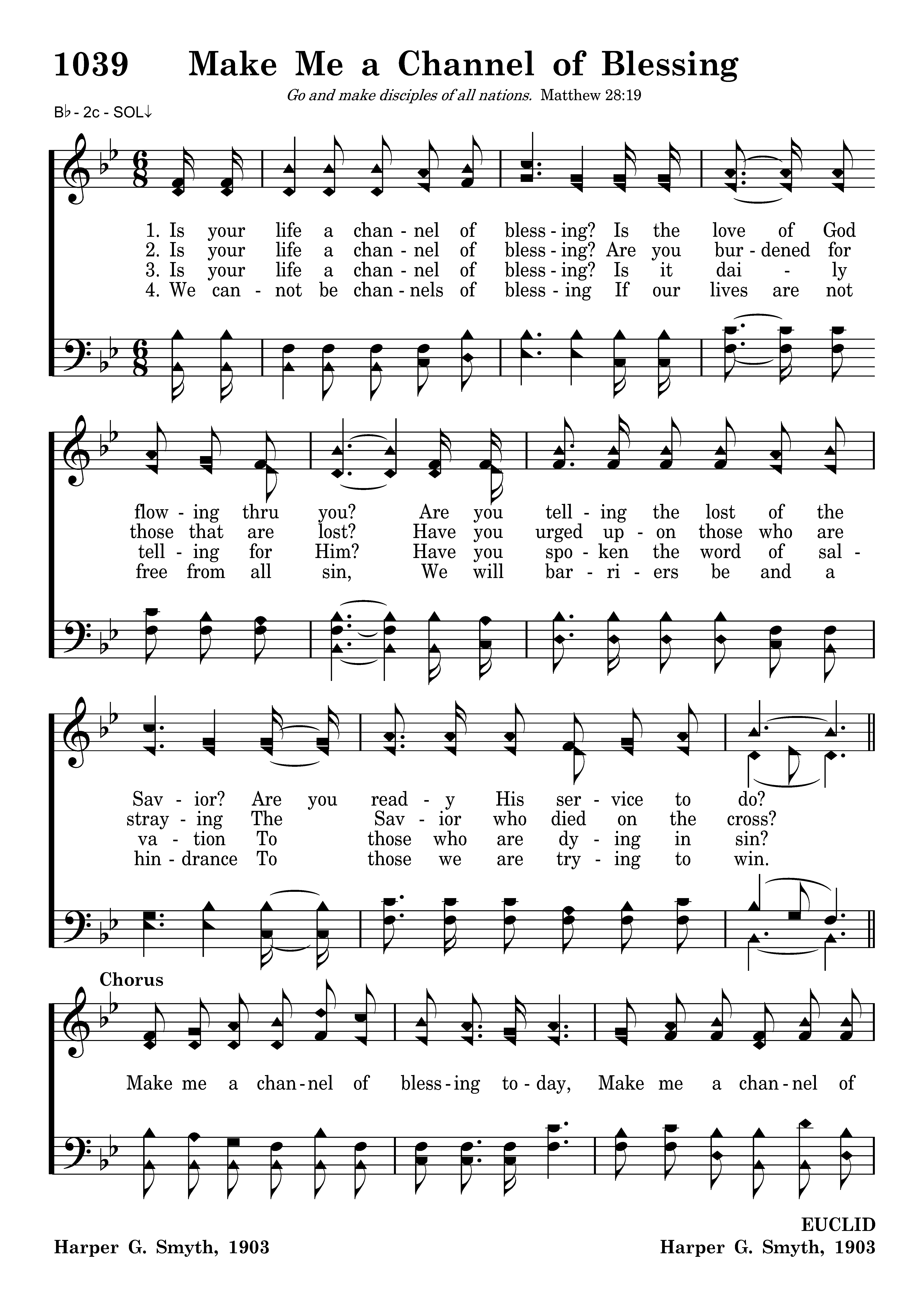 Is your life a channel of blessing? Is the love of God flowing thru you? Are you telling the lost of the Savior? Are you ready His service to do?