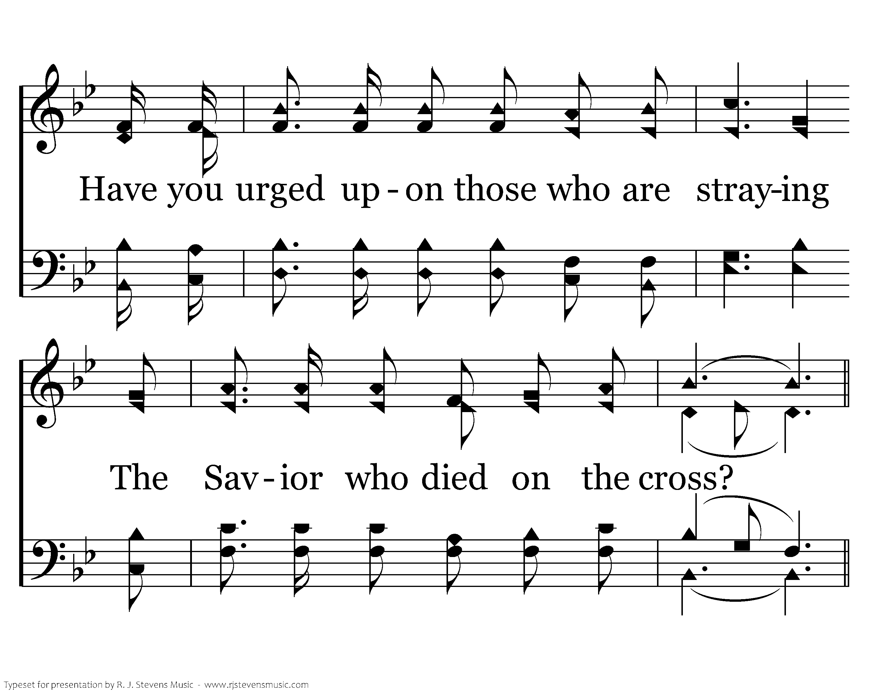 Is your life a channel of blessing? Are you burdened for those that are lost? Have you urged upon those who are straying The Savior who died on the cross?