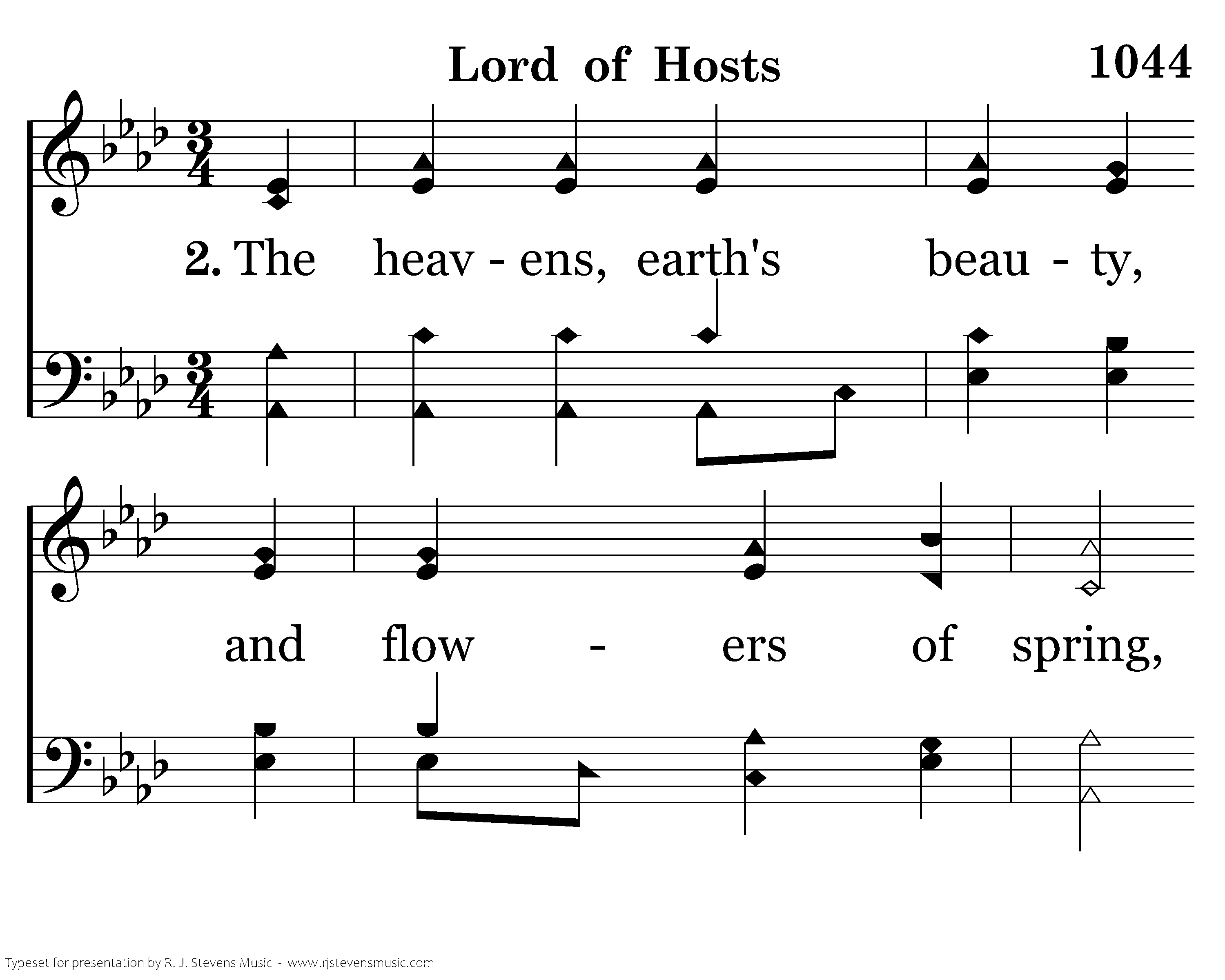 The heavens earth's beauty and flowers of spring, Proclaim Thy own glory and prove Thy great name. Thru all creation Thou showest true love, That ev'ry good gift comes down from above.